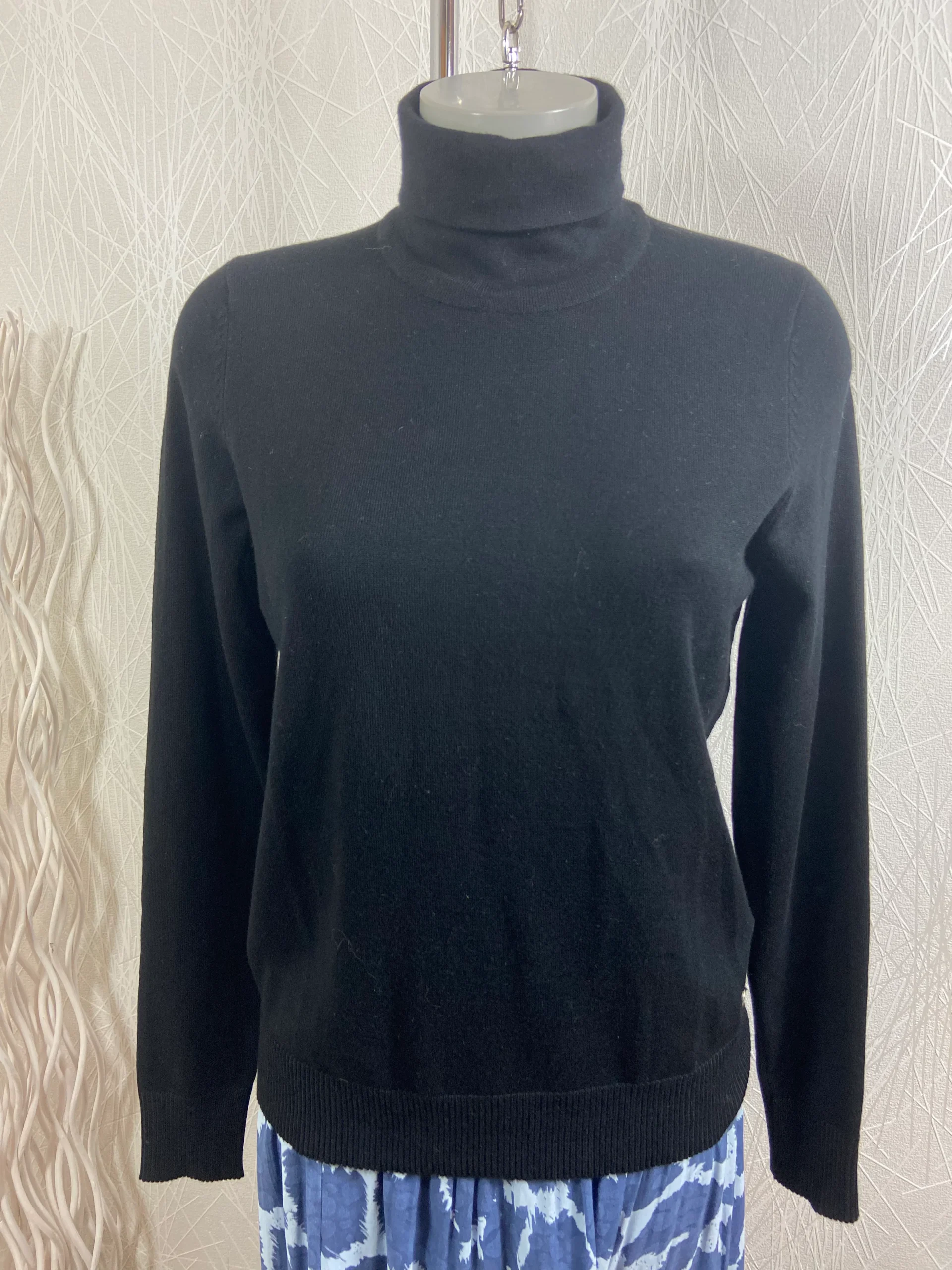 Pull noir mailles fines col roulé Deeluxe