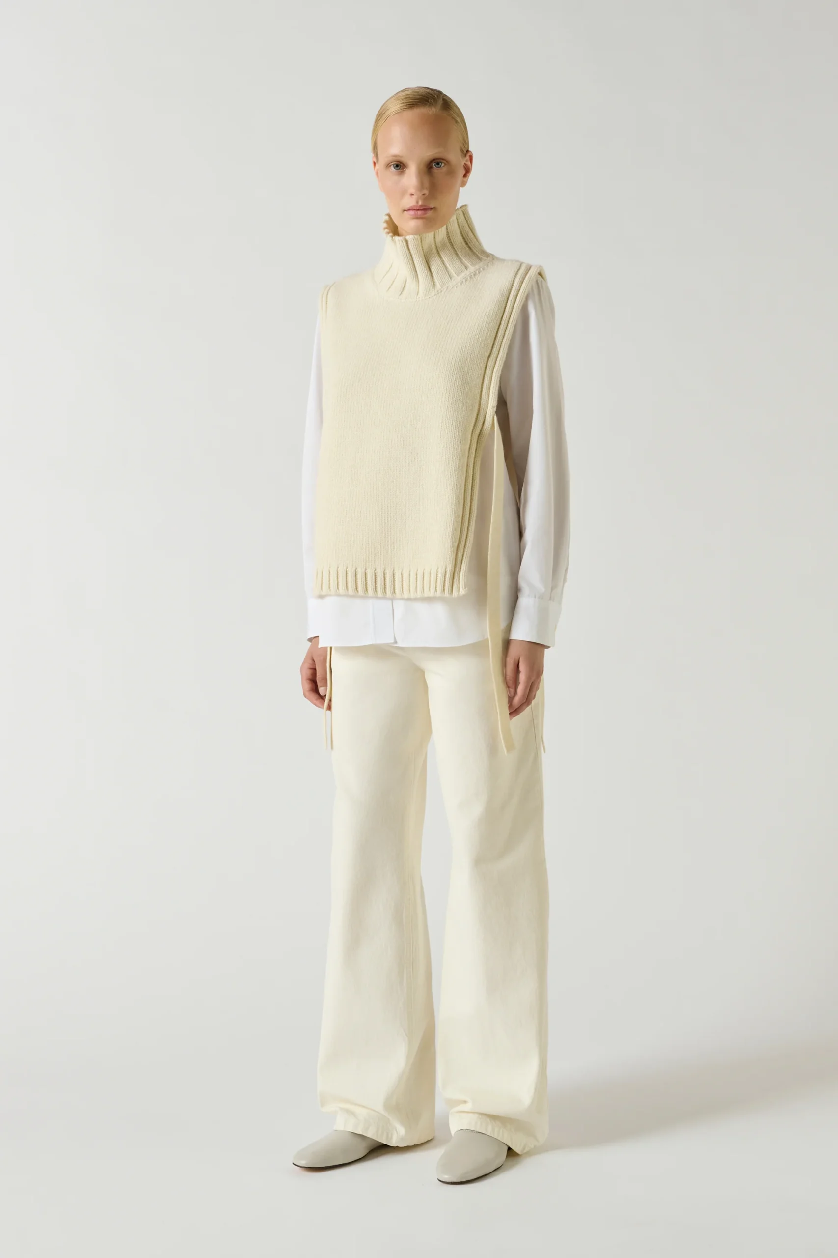 OR est notre plastron en laine signature. La maille, tricôtée de façon compacte et dense, offre une certaine tenue et un col montant bien droit qui allonge la silhouette. Pratique, il réchauffera toutes les tenues avec style, sans contraindre le mouvement des bras s’il est glissé sous une veste ou un manteau. – Coupe droite– […]