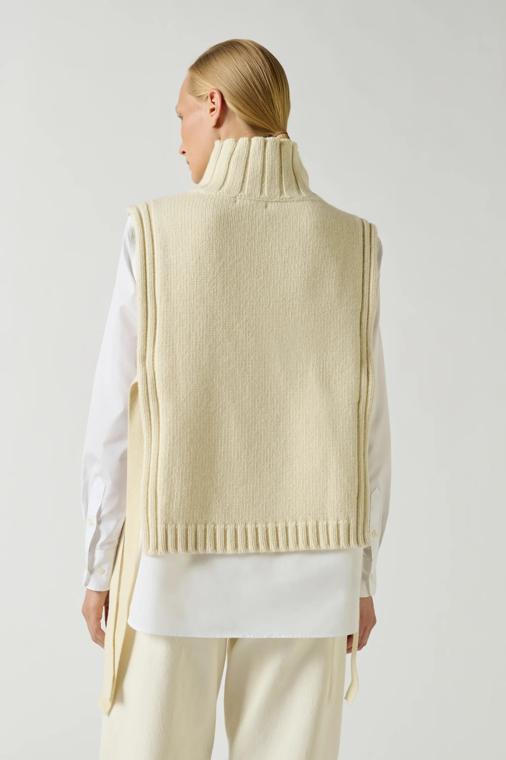 OR est notre plastron en laine signature. La maille, tricôtée de façon compacte et dense, offre une certaine tenue et un col montant bien droit qui allonge la silhouette. Pratique, il réchauffera toutes les tenues avec style, sans contraindre le mouvement des bras s’il est glissé sous une veste ou un manteau.