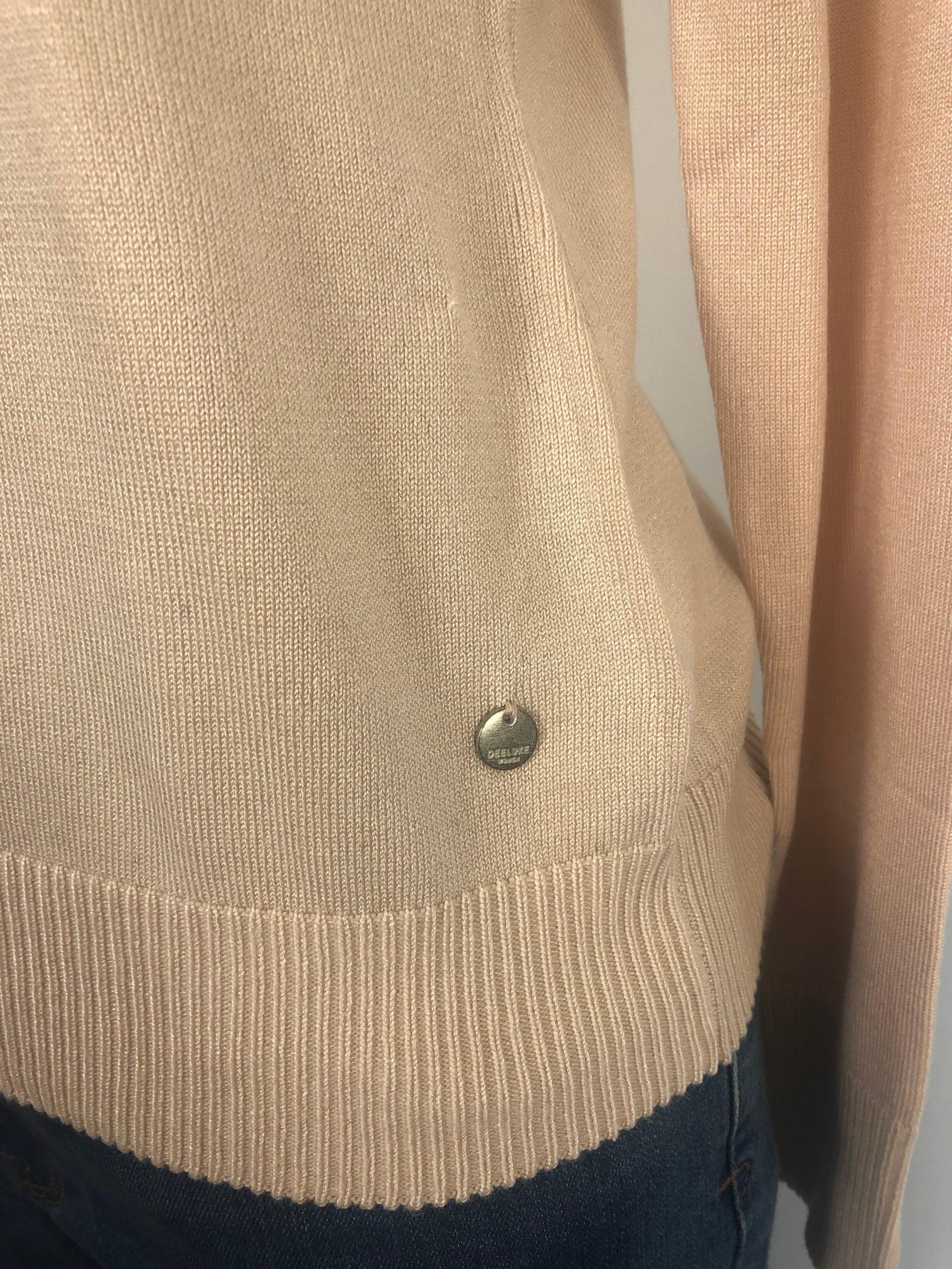 Joli pull rose pale avec col roulé à mailles fines côtes pour femme de la marque Deeluxe