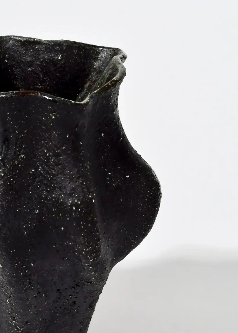 Entièrement façonnée à la main, cette pièce unique naît des gestes ancestraux des techniques de l’enroulement et de la sculpture. Un engobe d’oxyde habille sa surface d’une douceur satinée, tandis que l’intérieur vitrifié révèle un contraste subtil et raffiné, sublimant la beauté brute de l’ensemble.