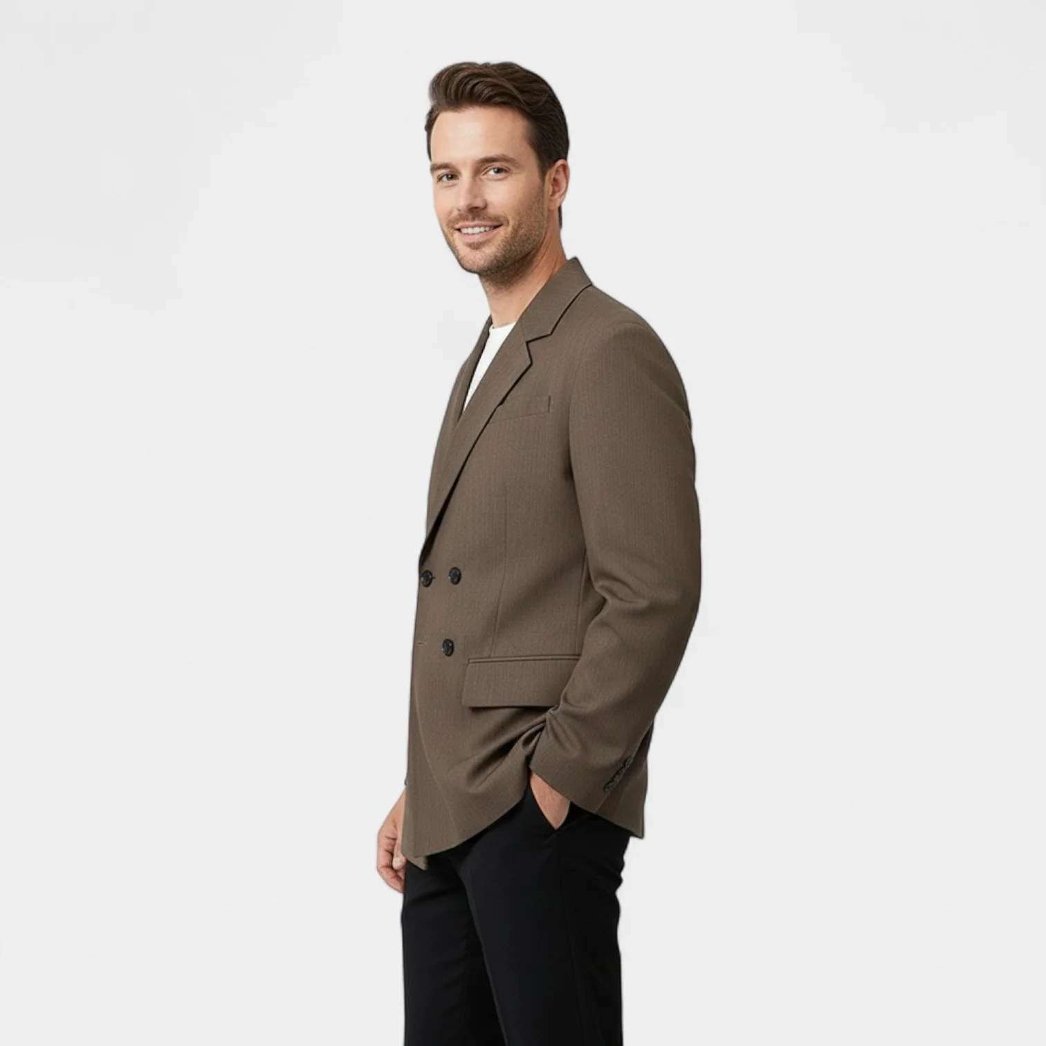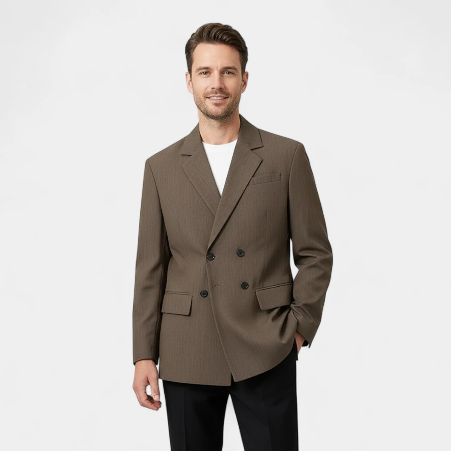 Un blazer qui parle par la retenue assez raffiné pour sublimer, assez décontracté pour accompagner. Riche Cote incarne la polyvalence moderne avec assurance.