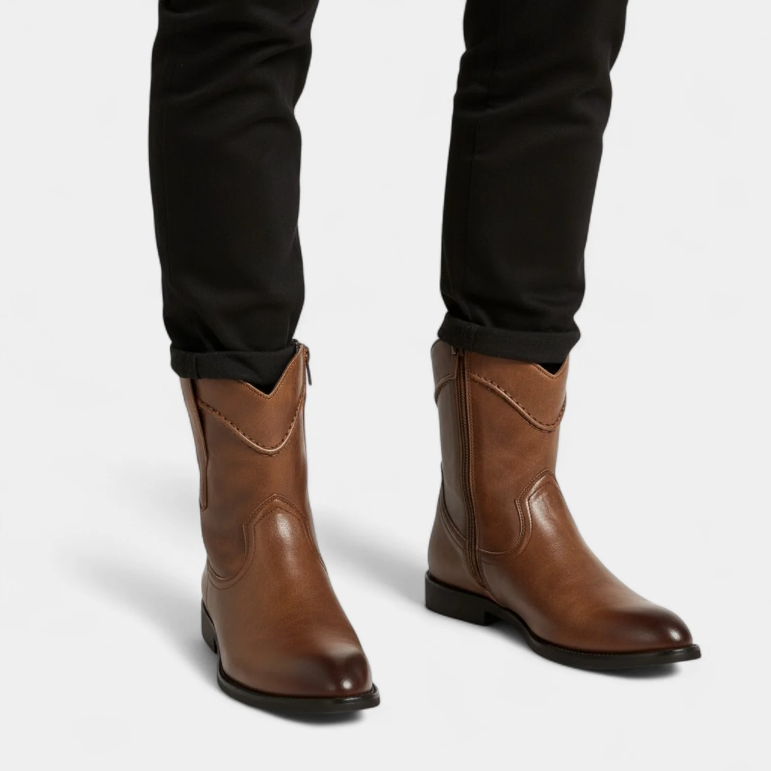Un design intemporel au service du caractère. Inspirées du style rétro, ces bottes Chelsea montantes apportent une touche de charme ancien à une élégance moderne. Confectionnées en cuir PU lisse à l’éclat subtil, elles affichent une silhouette structurée, dotée de panneaux latéraux élastiques et d’une hauteur de cheville équilibrée pour une allure masculine et raffinée. Confortables et affirmées, elles s’associent aussi bien avec un jean qu’un pantalon en laine du pavé citadin aux soirées élégantes, elles incarnent la confiance tranquille de l’homme contemporain.