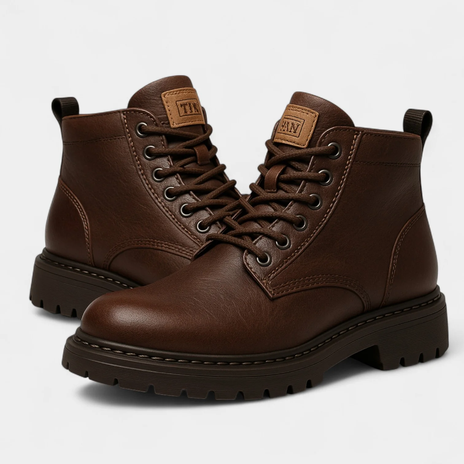 Riche | Bottes rétro homme cuir PU – Semelle épaisse mi-haute