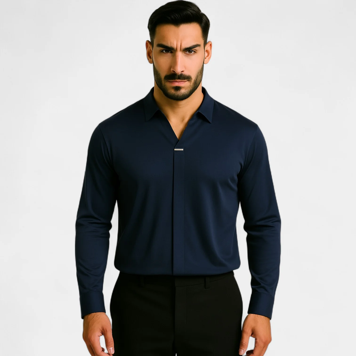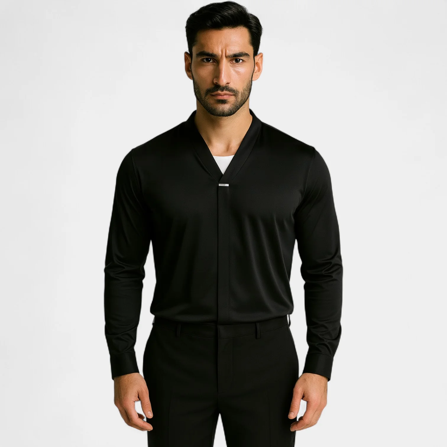 Riche | Chemise col V homme coton mélangé – coupe minimaliste infroissable