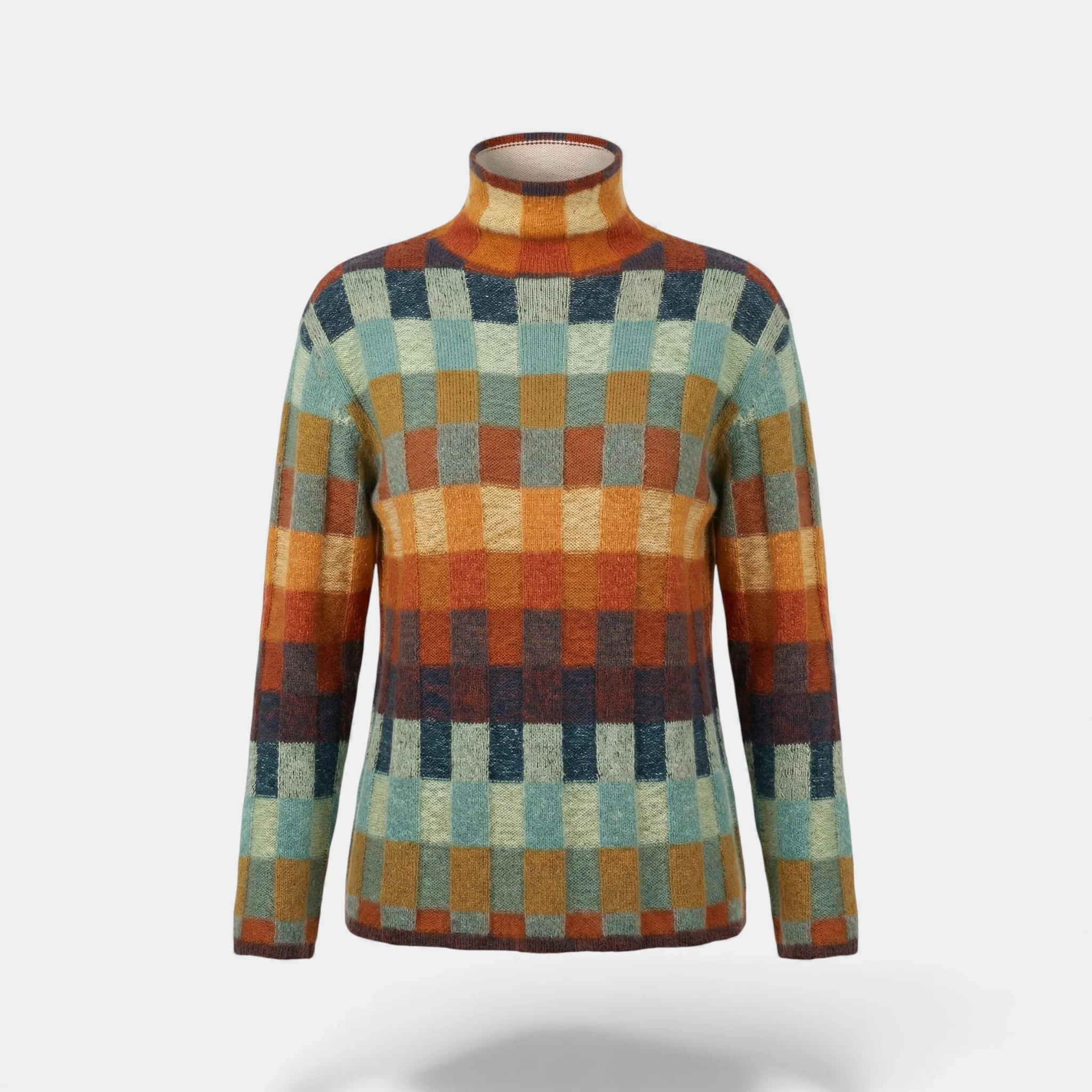 Ce pull en laine à col roulé apporte une élégance moderne et apaisée aux journées d’automne et d’hiver. Son motif damier crée un rythme graphique subtil, tandis que les manches longues et l’encolure haute dessinent une silhouette enveloppante et harmonieuse. La maille accompagne naturellement les mouvements, offrant un confort discret plutôt qu’ostentatoire. Porté seul ou sous un manteau, il diffuse une confiance calme qui reflète l’esthétique intemporelle de Riche Cote sereine, raffinée et délicatement maîtrisée.