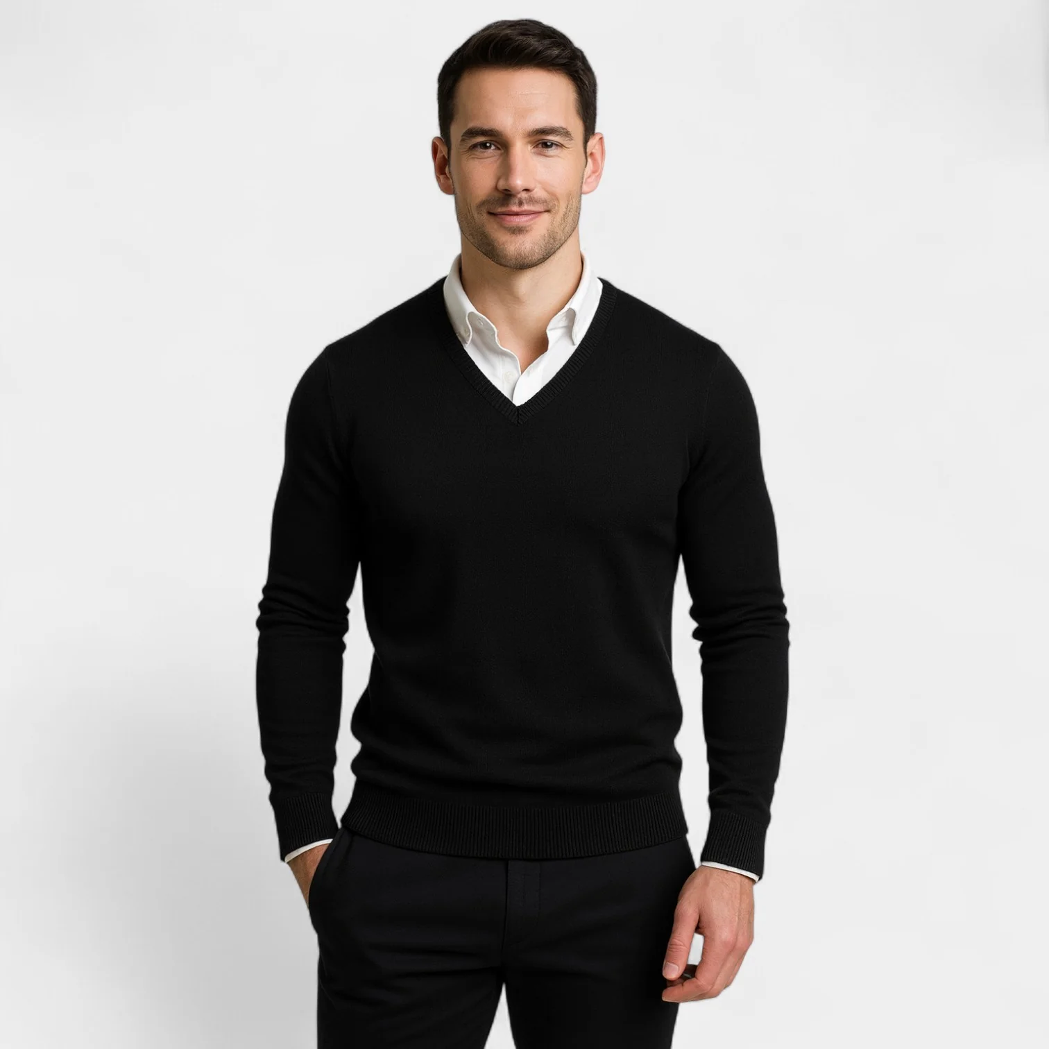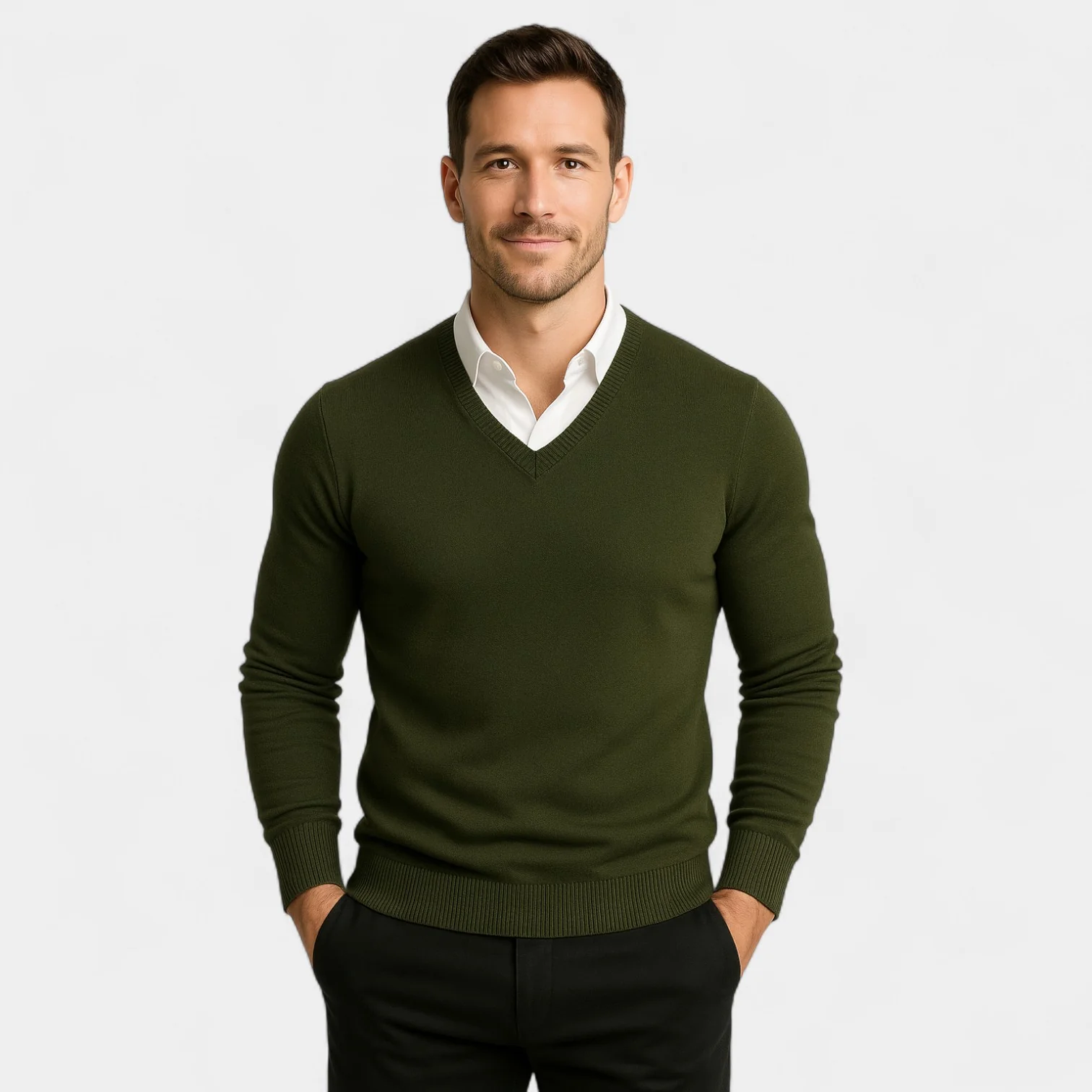 Conçu près du corps dans un mélange technique fin, ce pull col V apporte une touche moderne au tricot classique. Sa silhouette ajustée et sa légèreté l’accompagnent naturellement des après-midis en terrasse aux balades du soir, se glissant sous une veste sans perdre sa tenue.