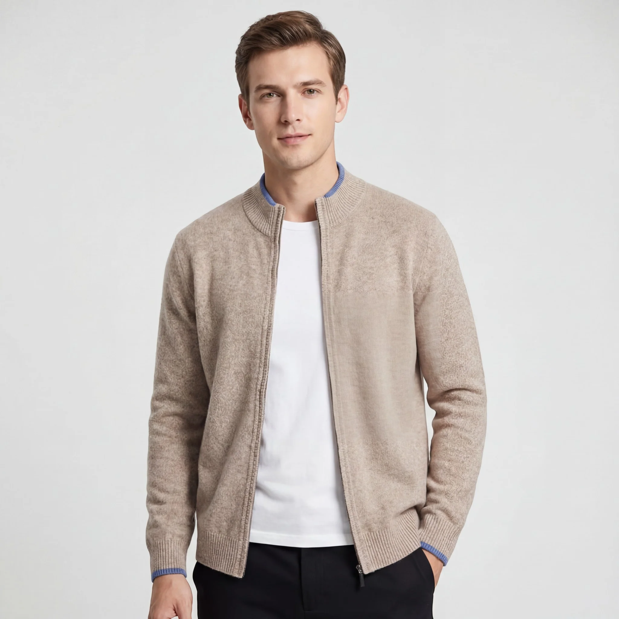 - Éléments de design : Col mi-montant ; détails contrastés ; fermeture zippée ; manches longues