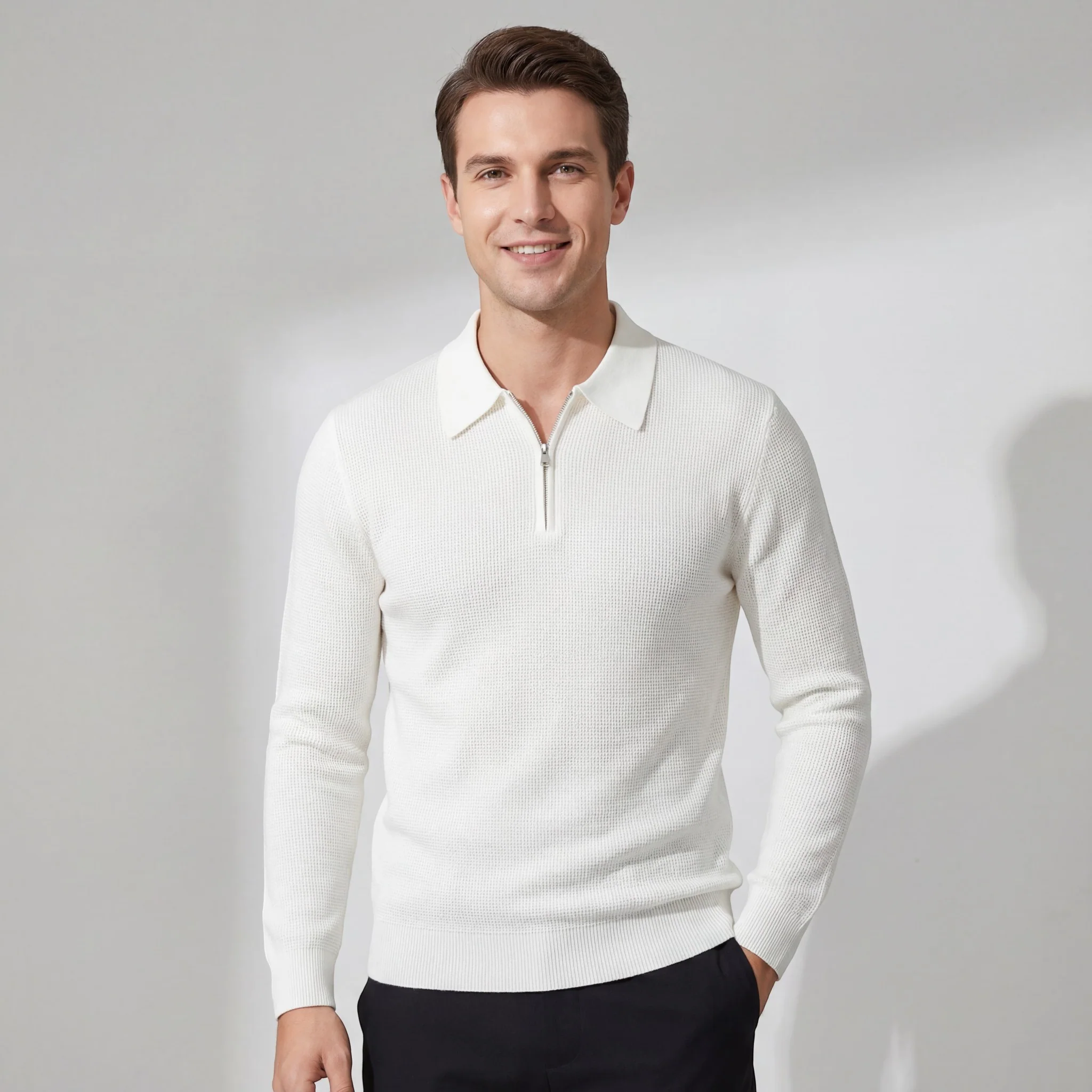 Ancré dans une sophistication discrète, ce pull en maille gaufrée à demi-zip apporte structure et chaleur aux saisons plus fraîches. Sa silhouette ajustée suit les lignes du corps avec une précision naturelle, offrant une allure à la fois maîtrisée et décontractée. La texture gaufrée crée un relief visuel subtil, tandis que le col zippé permet de moduler le style entre décontraction et superposition soignée. Pensé pour les journées urbaines, les environnements de travail détendus et les instants smart-casual, il accompagne avec aisance l’automne, l’hiver et les débuts du printemps. Fidèle à l’esprit Riche Cote, cette pièce incarne un confort contrôlé, une masculinité moderne et une confiance calme et assumée.
