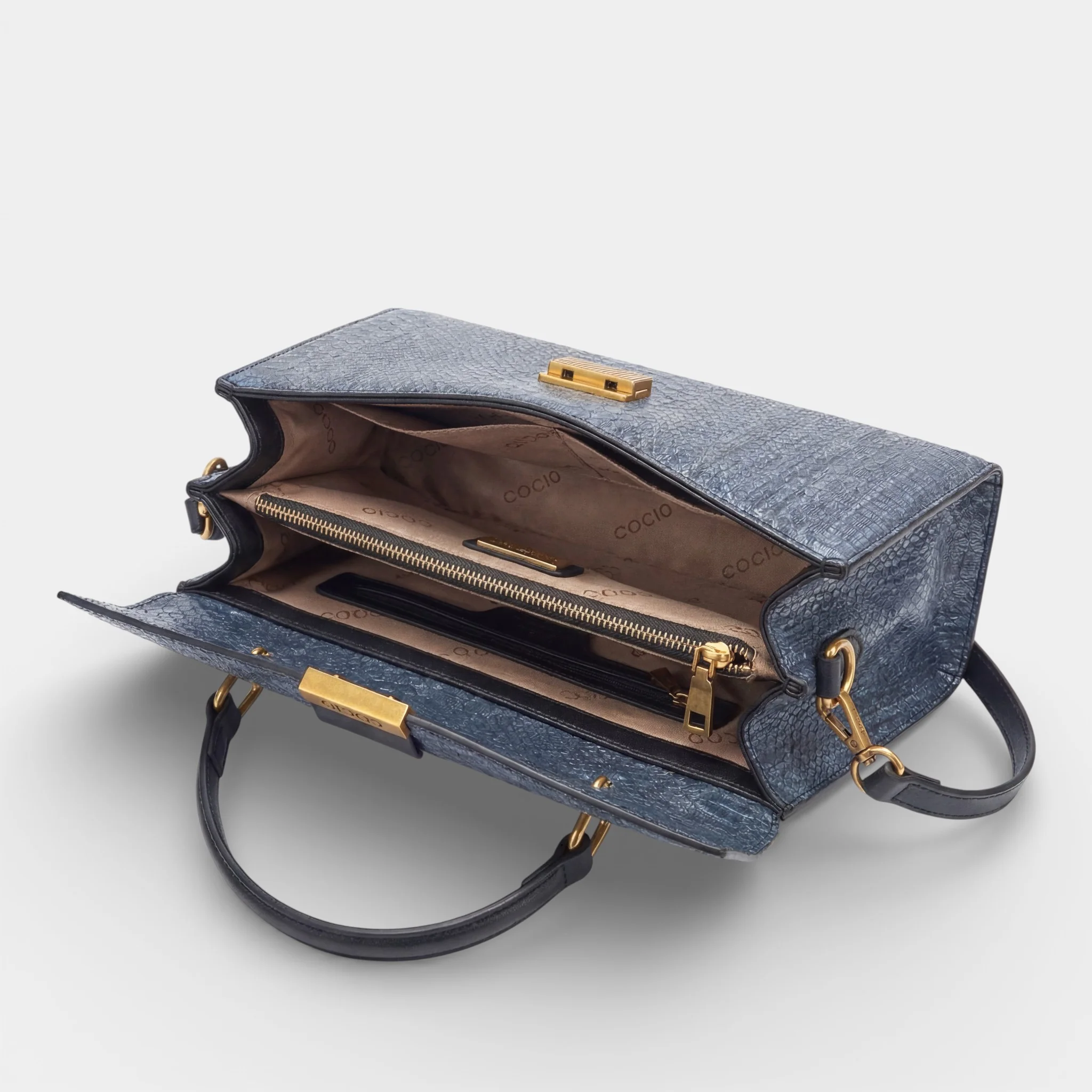 - Matière: Cuir lisse à texture serpent subtile