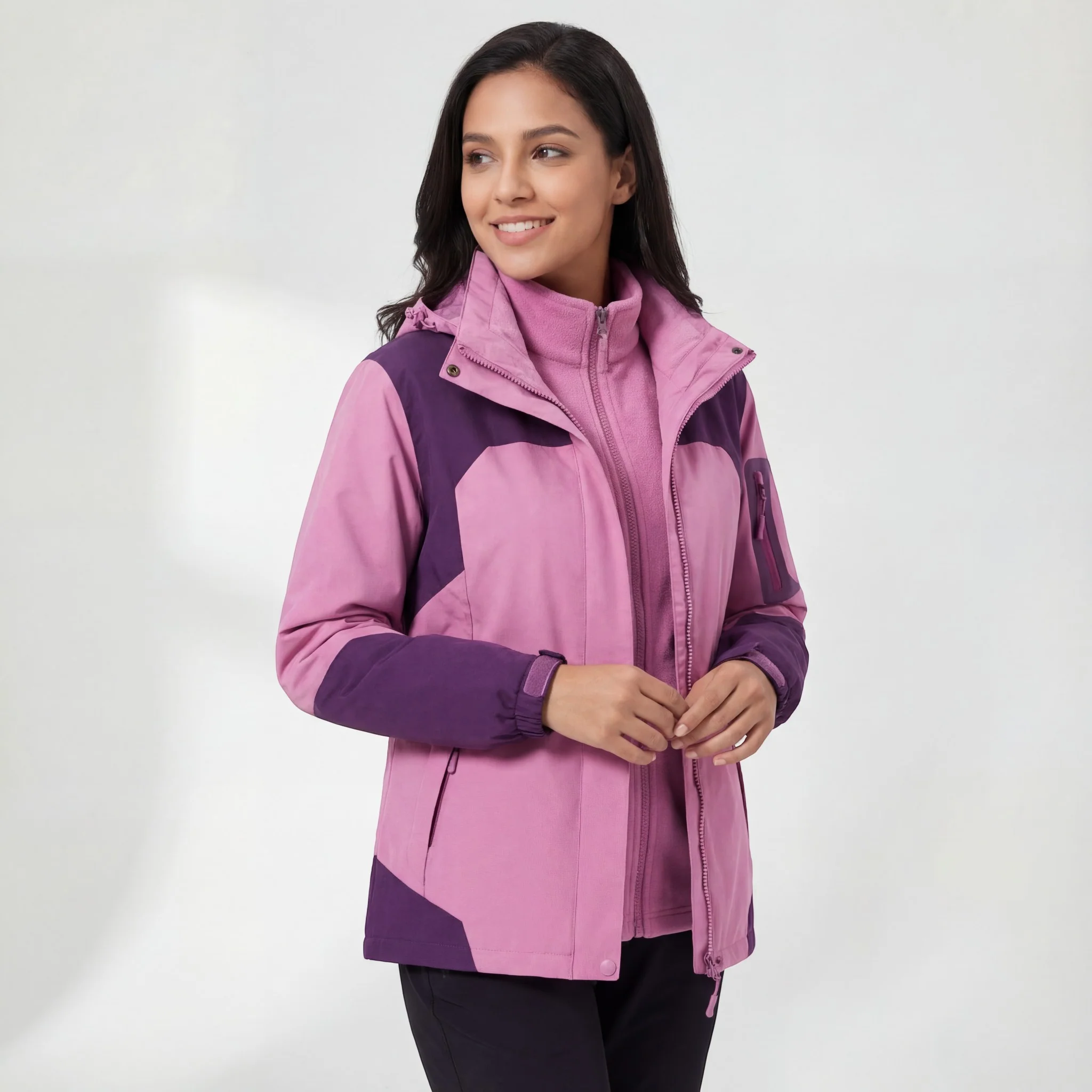 Riche | Veste à Capuche Imperméable et Coupe-Vent 3-en-1 Doublée Polaire pour Femme