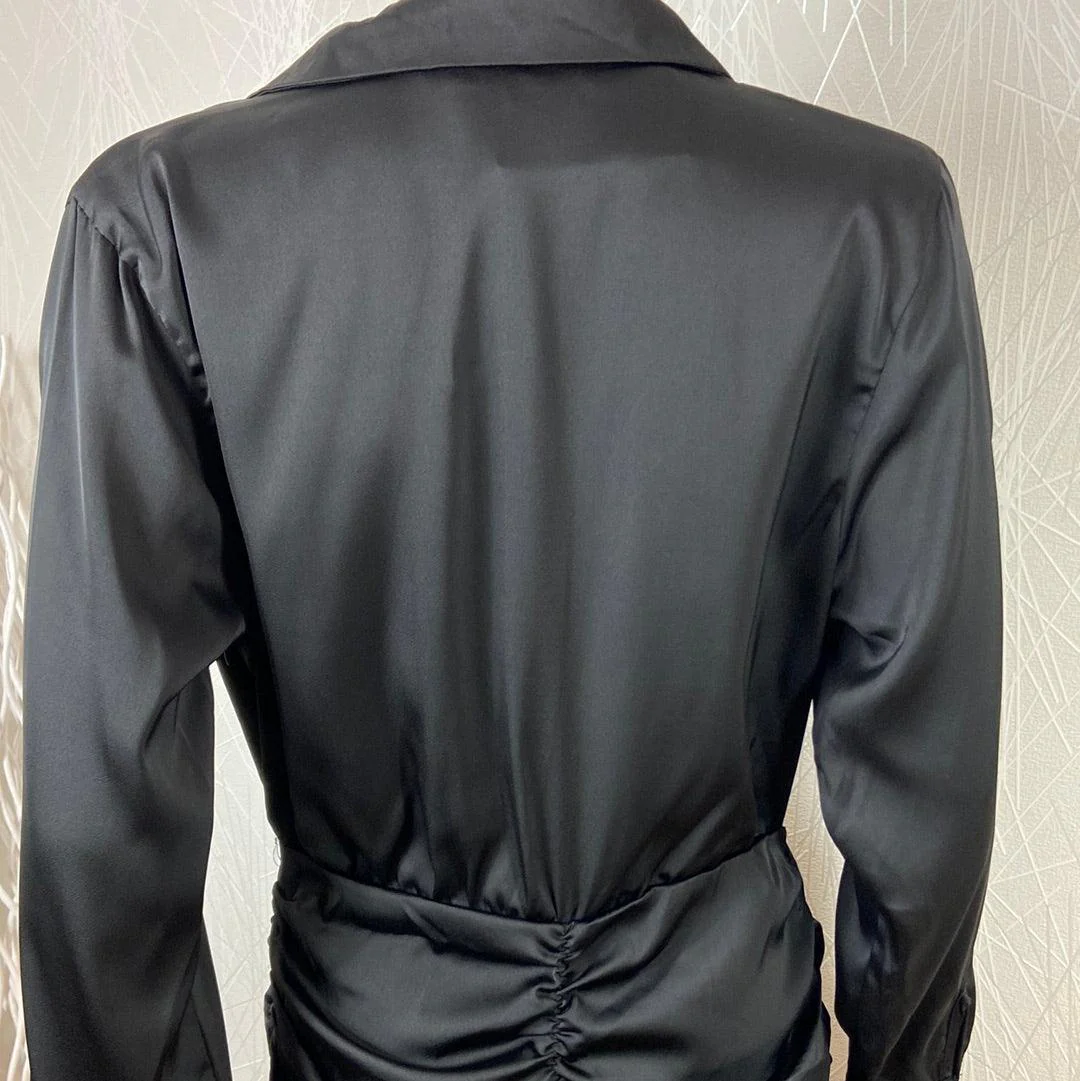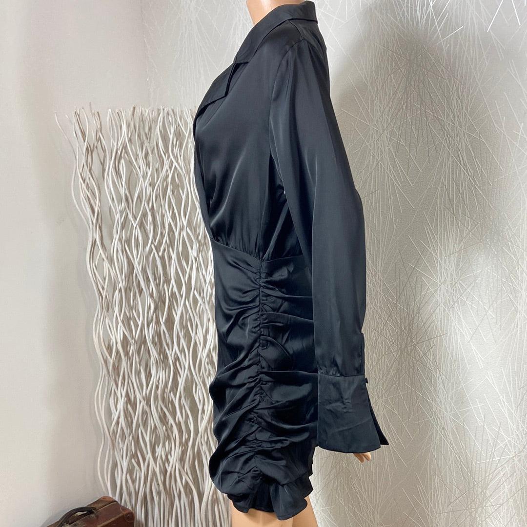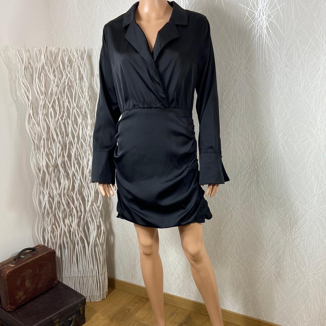 Robe courte noire satinée drapée de la marque Elenza.