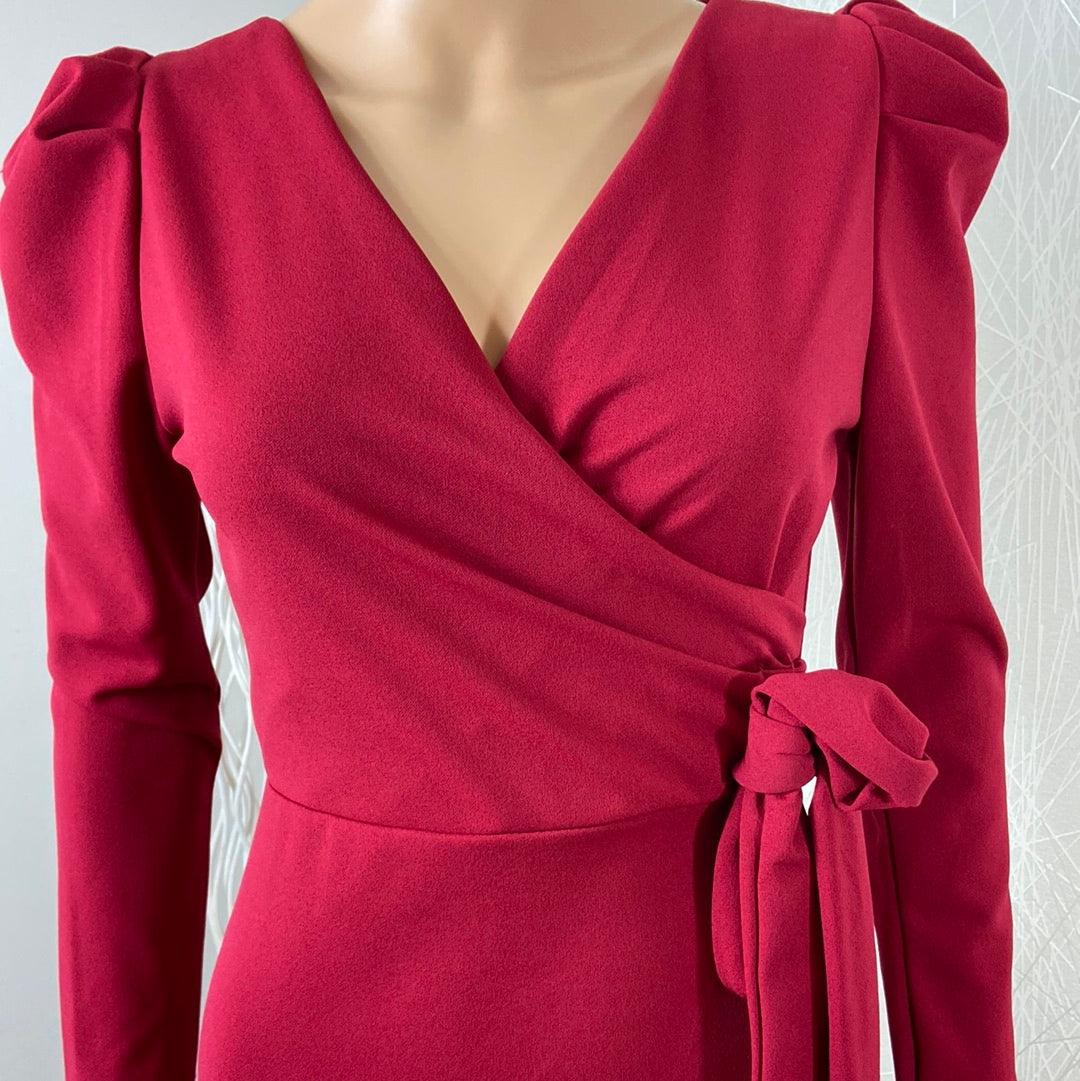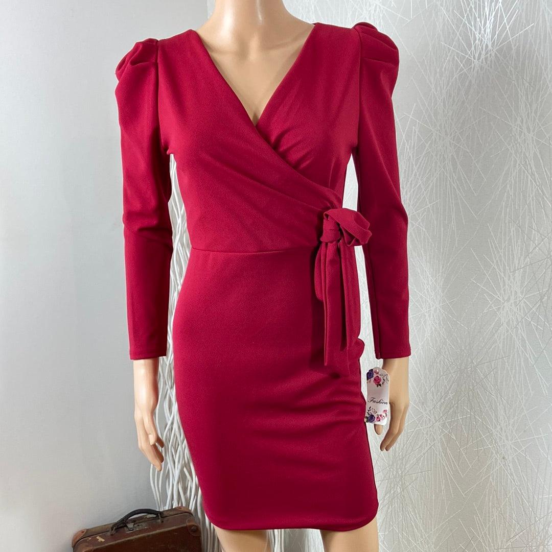 Robe courte rouge fuchsia cache coeur flot manches longues Fashion