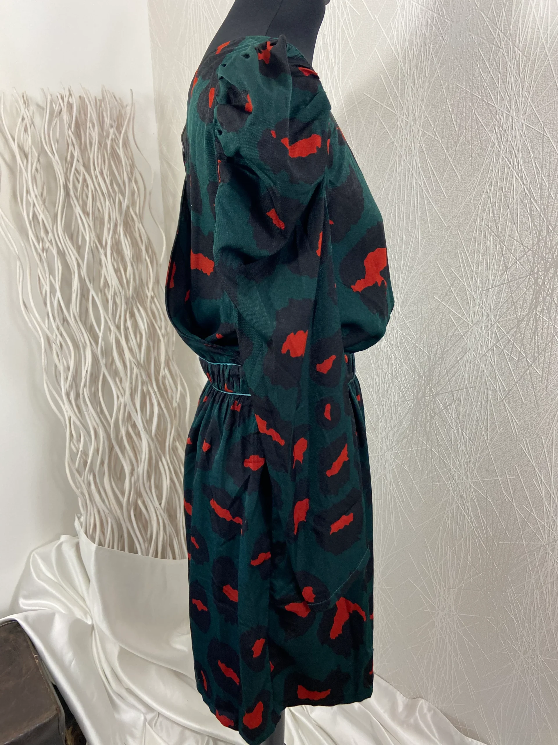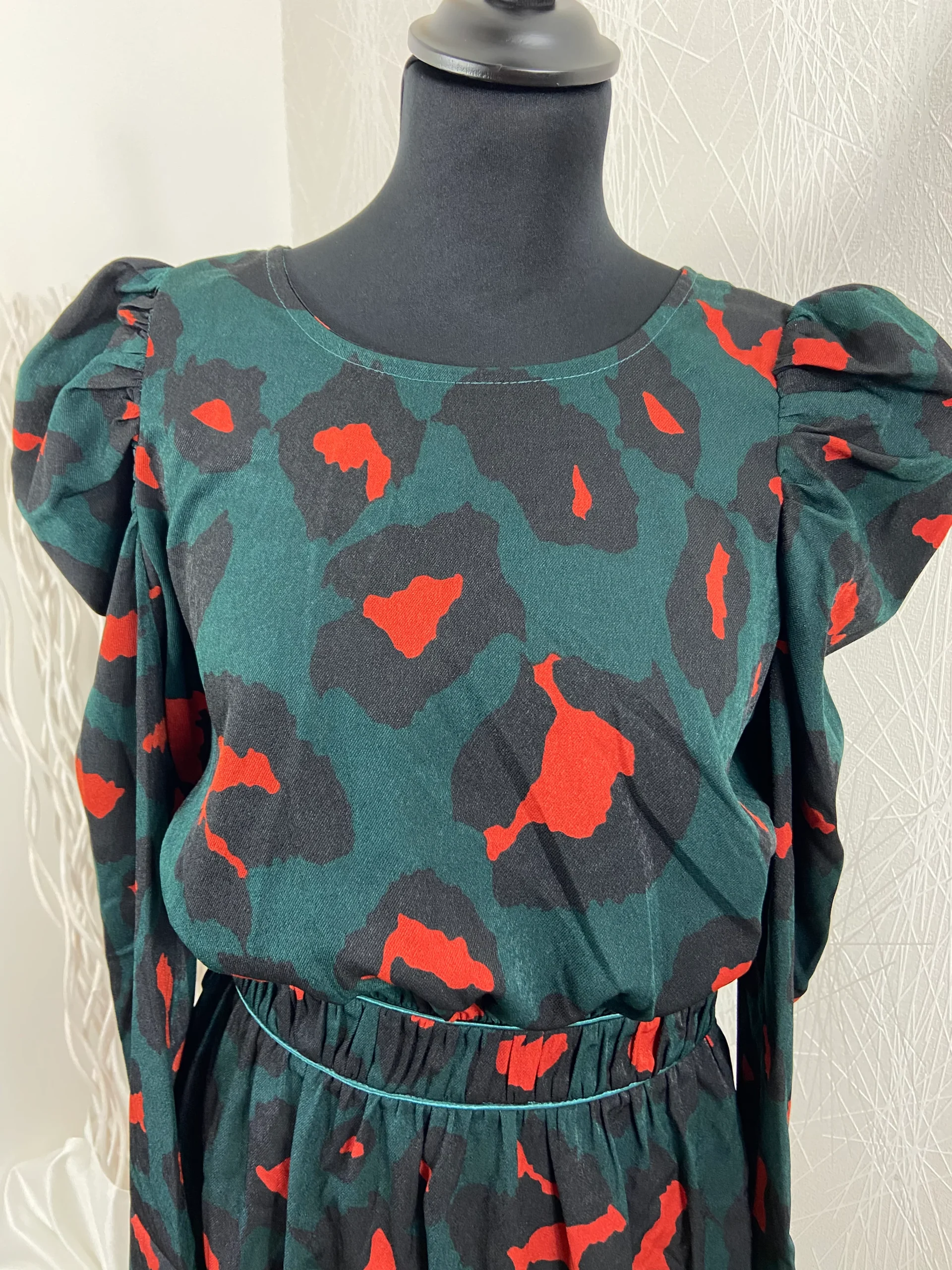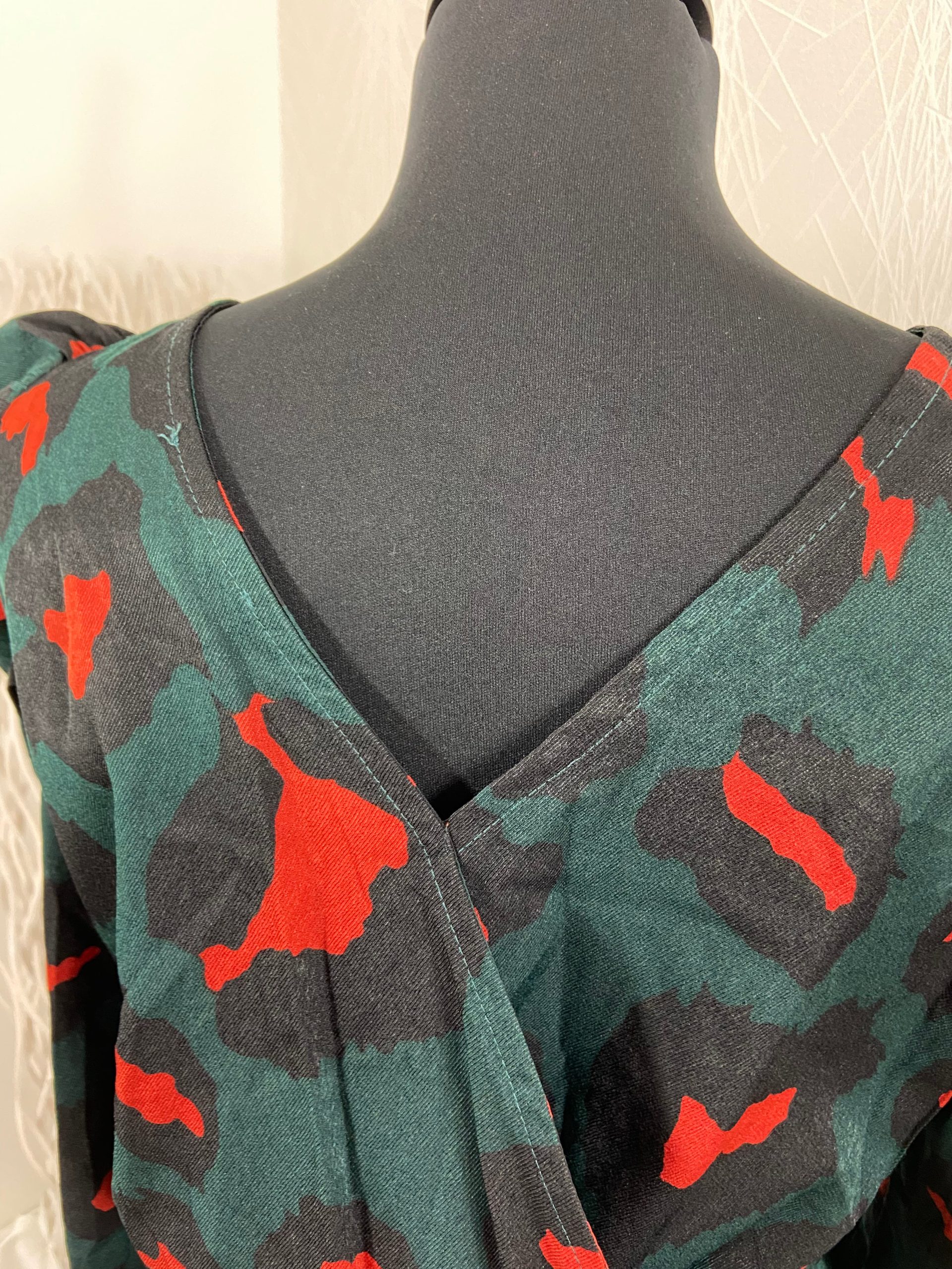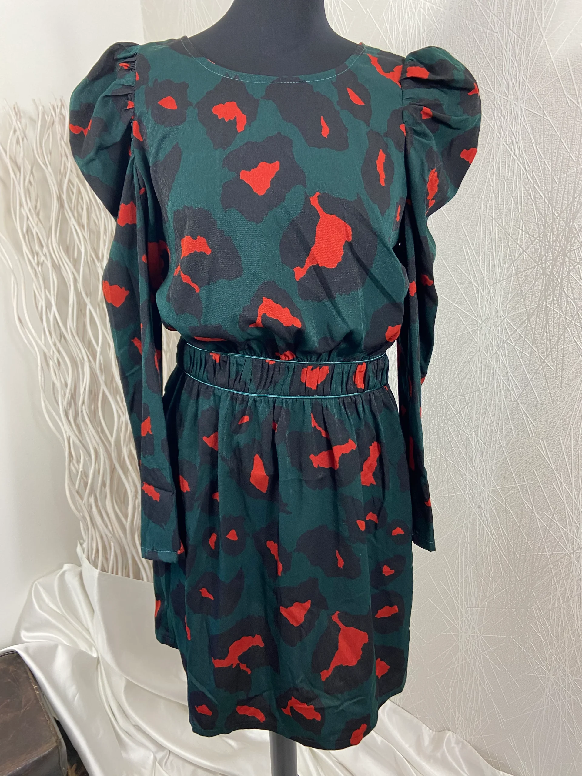 Jolie robe courte de couleur vert bouteille à motifs rouge de la marque Opullence Paris. Encolure ras du cou, manches longues, tissu croisé dans le dos et fermeture zip sur le côté. C’est une jolie robe de belle marque à prix sympa de déstockage Matière : 100% polyester. Couleur : Vert, rouge et noir. Marque […]