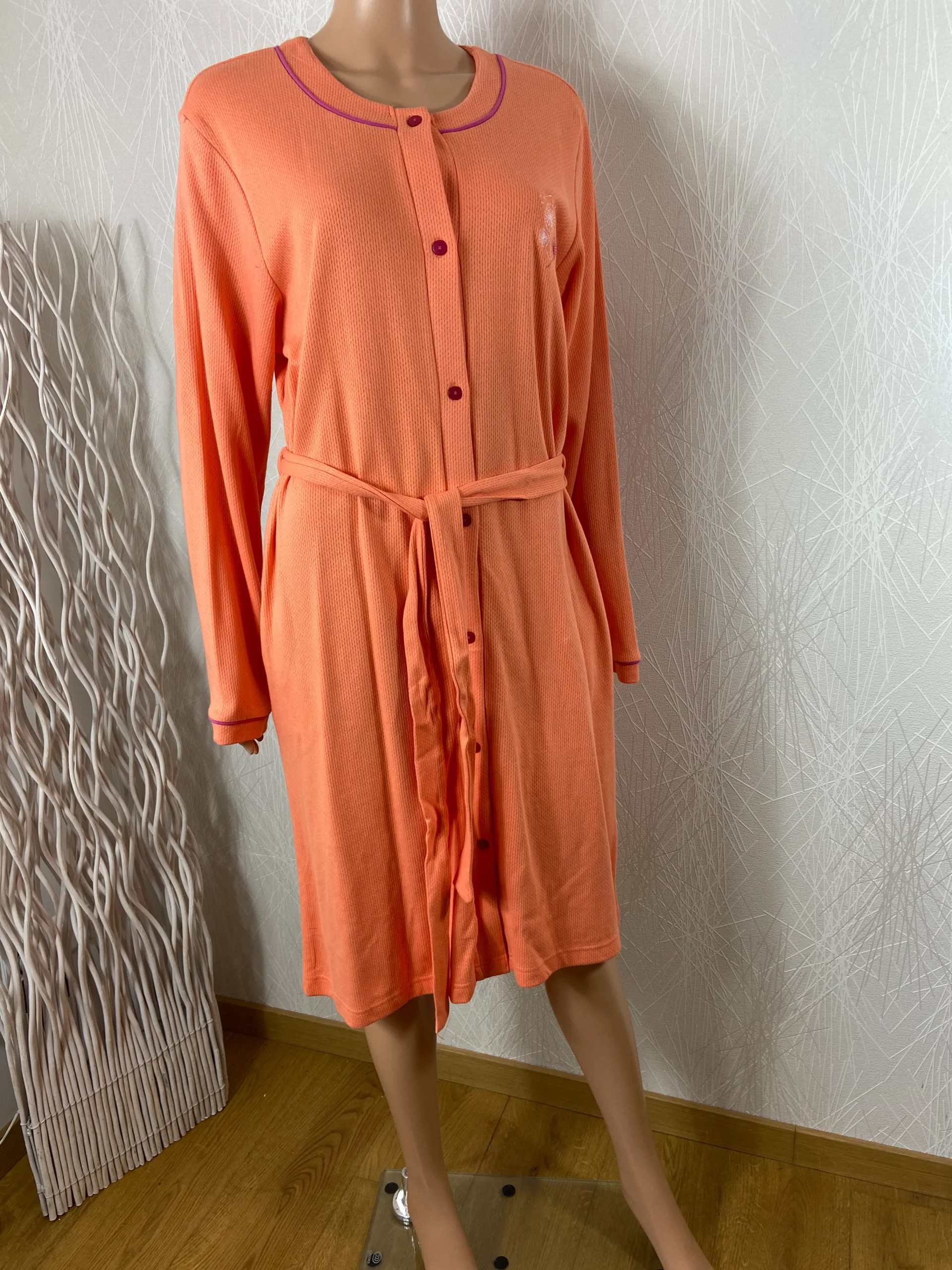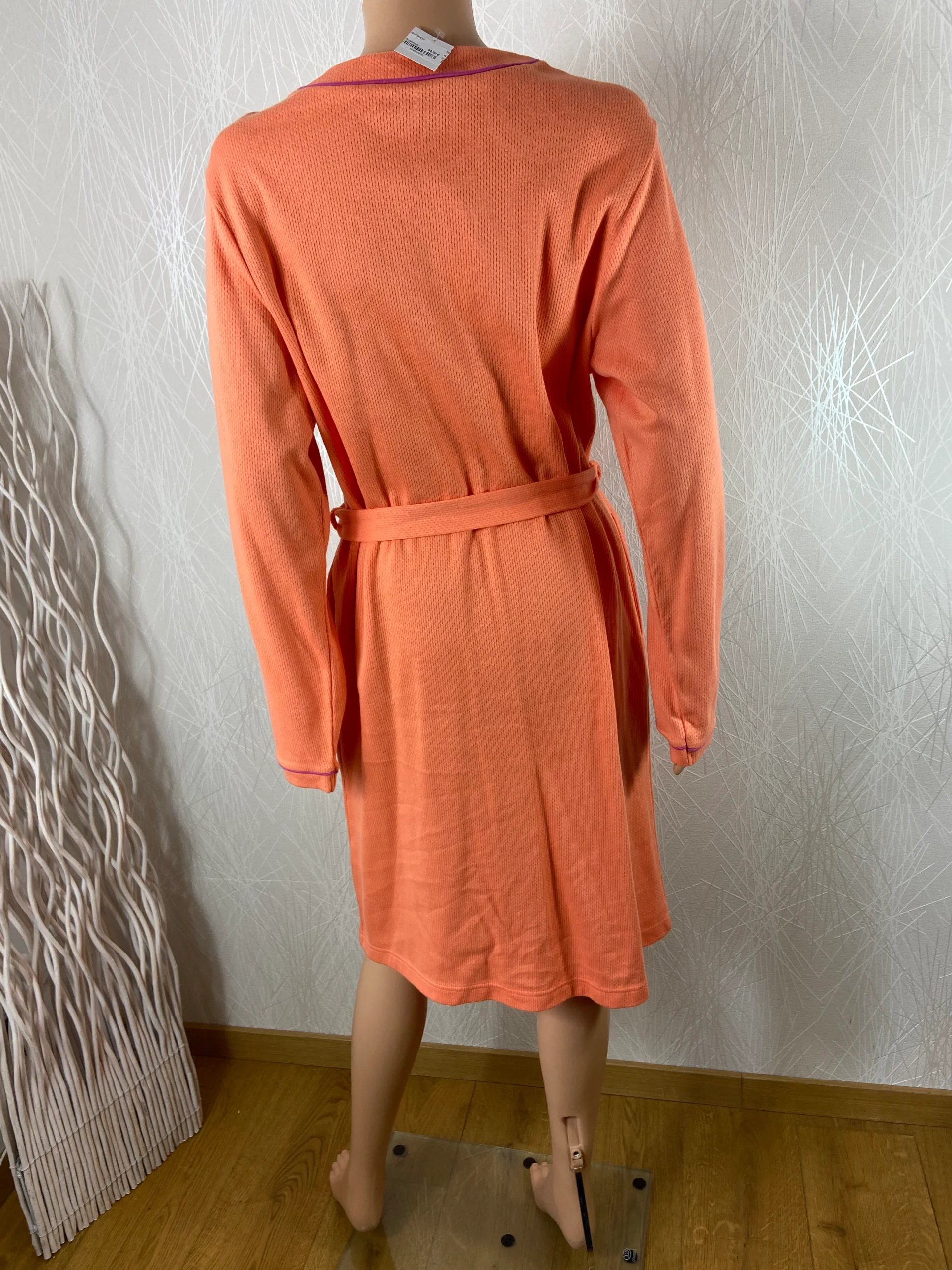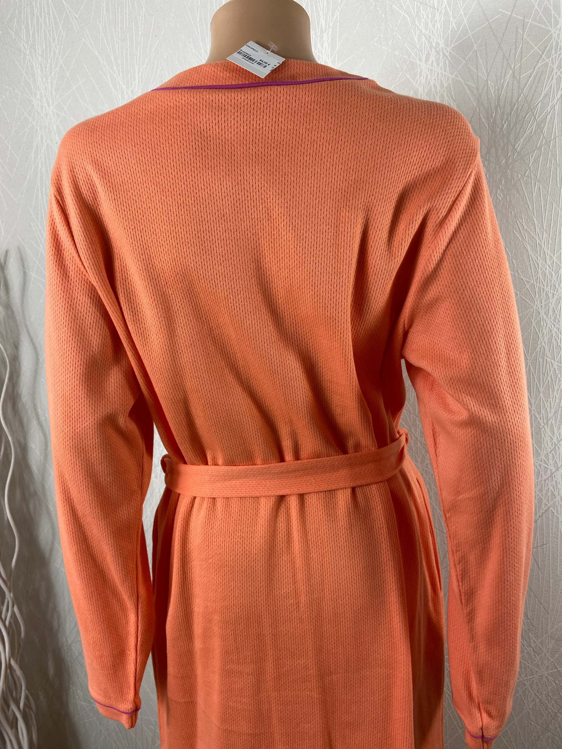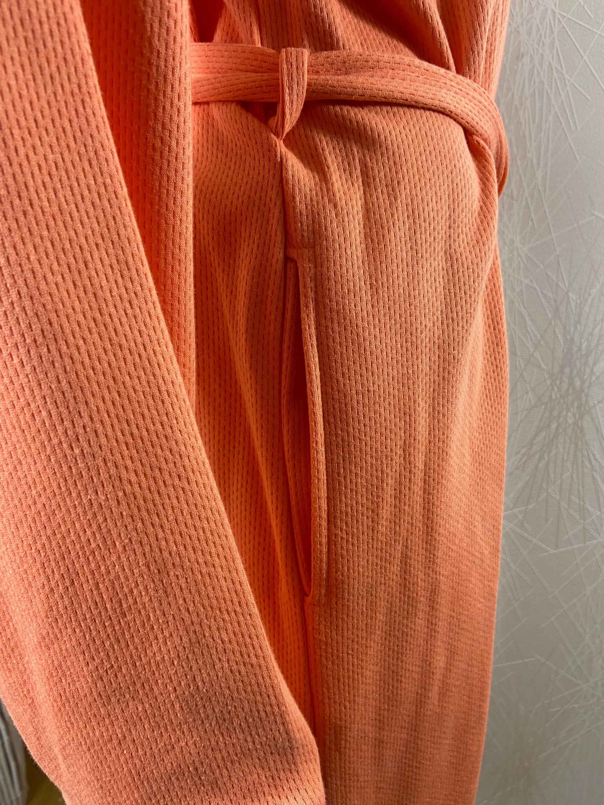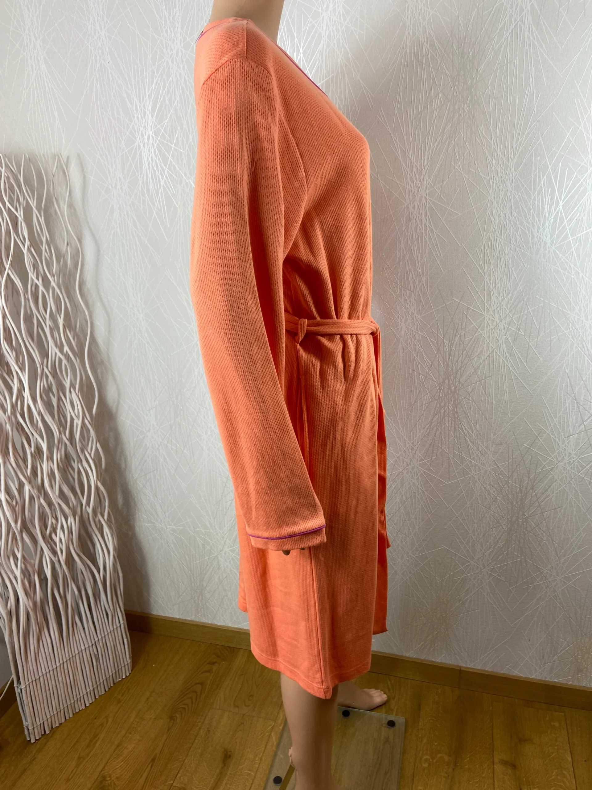 Robe de chambre pour femme, en coton dans les tons orangés, de la marque Jet.