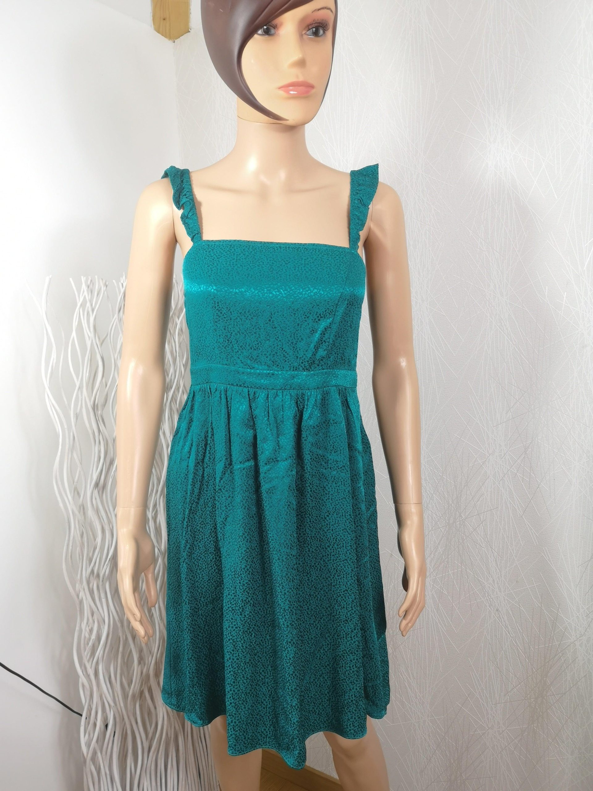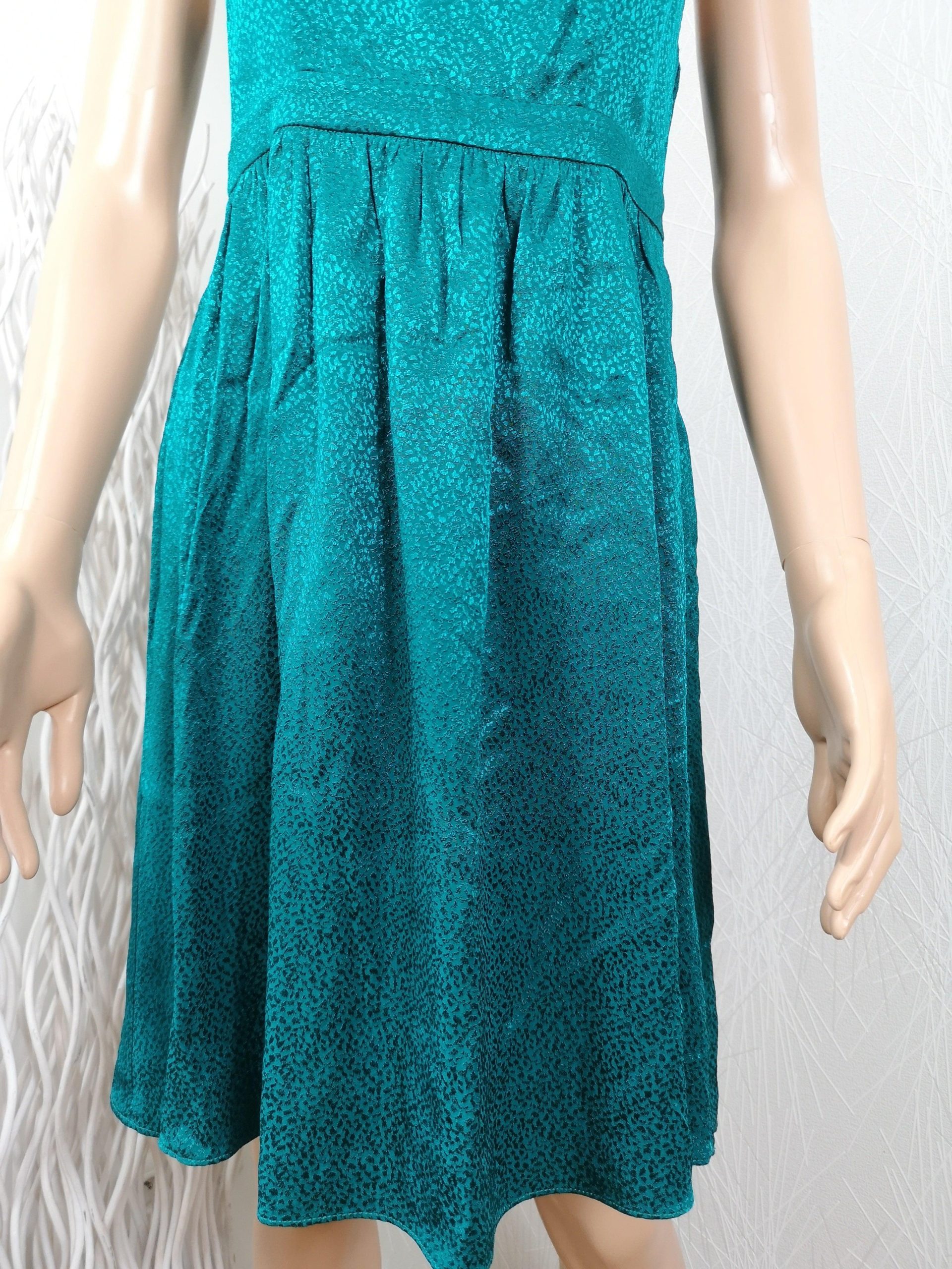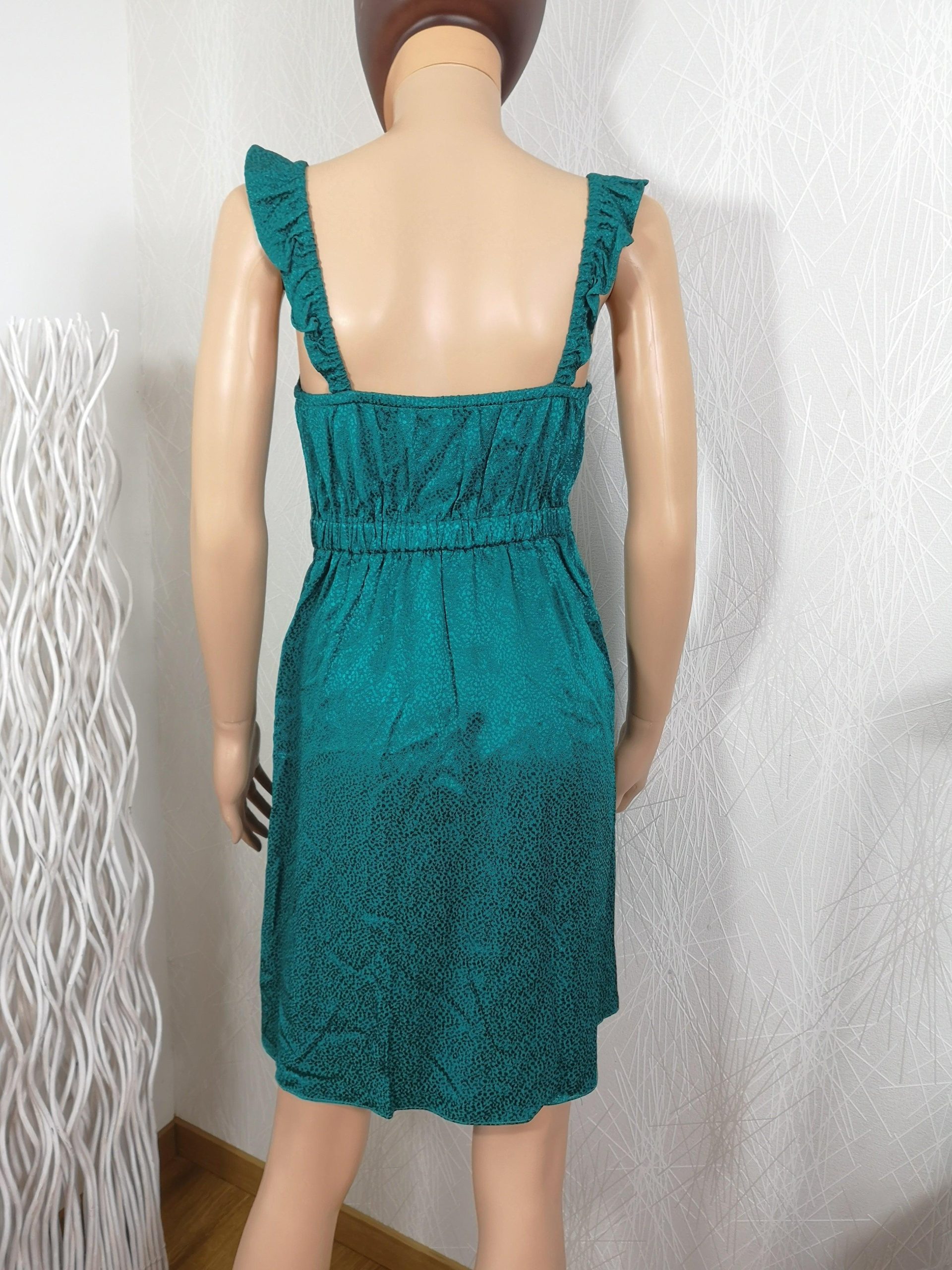 Très belle robe de soirée à bretelles de la marque Naf Naf. Très beau tissu structuré à effet vert / noir, bretelles avec petit volant, cintrée à la taille avec élastique dans le dos et légèrement plissée sur l’avant. C’est une très jolie robe de soirée Naf Naf, classe et stylée. Matière : 100% viscose. […]
