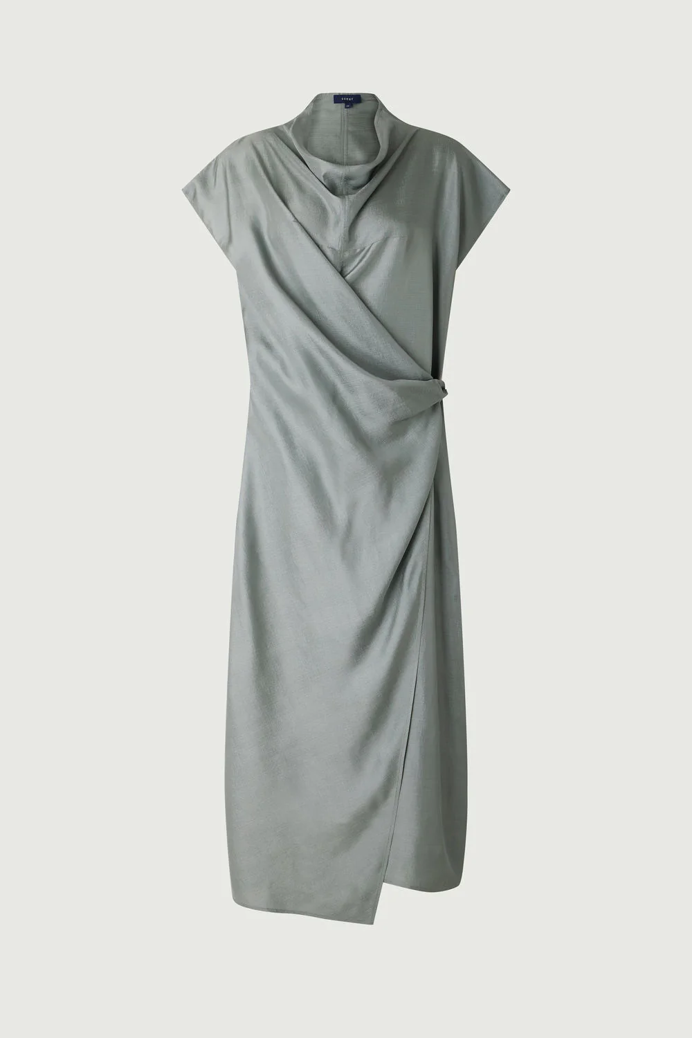 FOGGIA est une robe en soie à la coupe portefeuille, longueur cheville et col montant. Son boutonnage latéral et sa soie texturée apportent une touche sophistiquée. La taille modulable souligne la silhouette, parfaite pour une occasion habillée. Sa couleur vibrante et son esprit couture captivent.