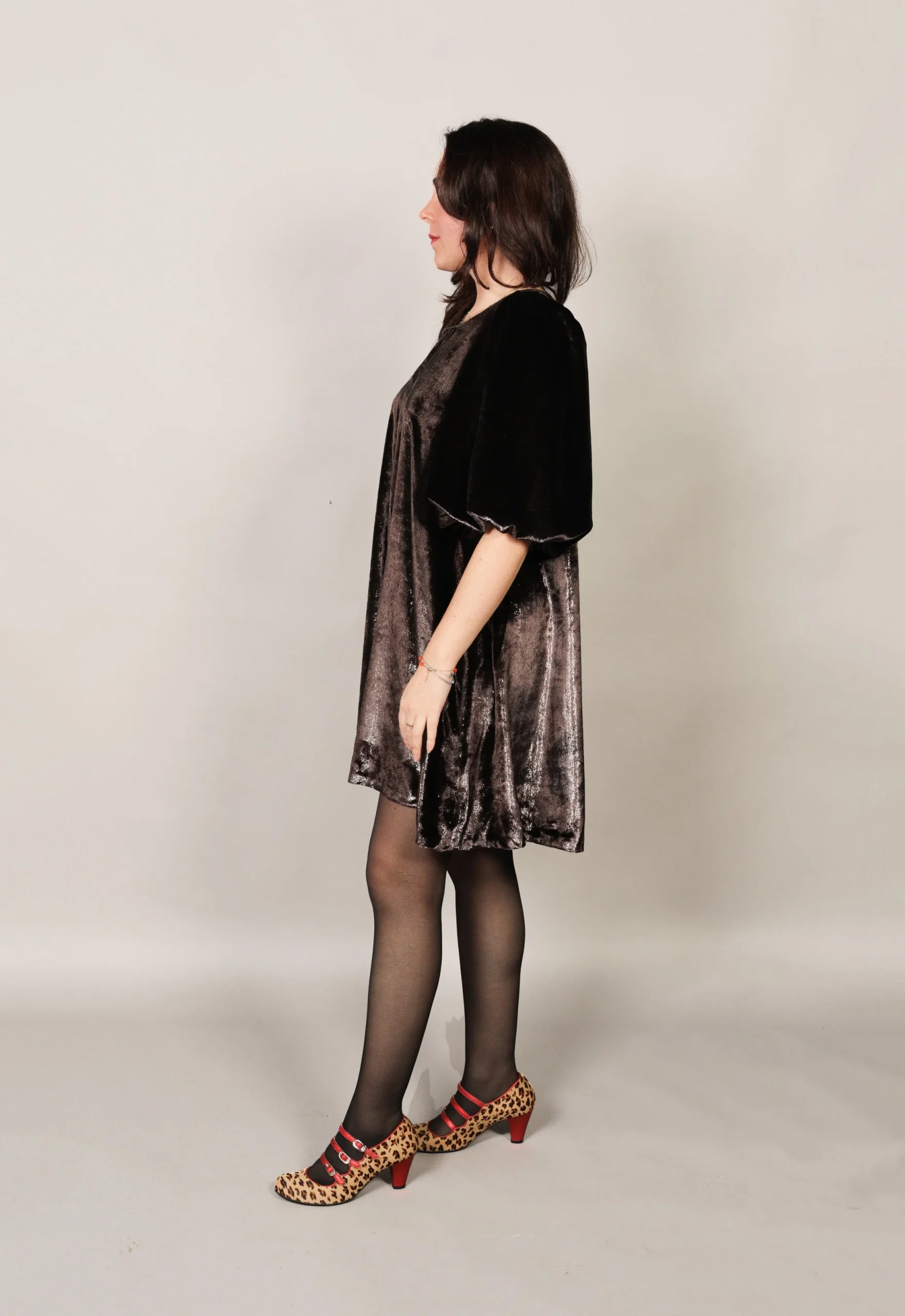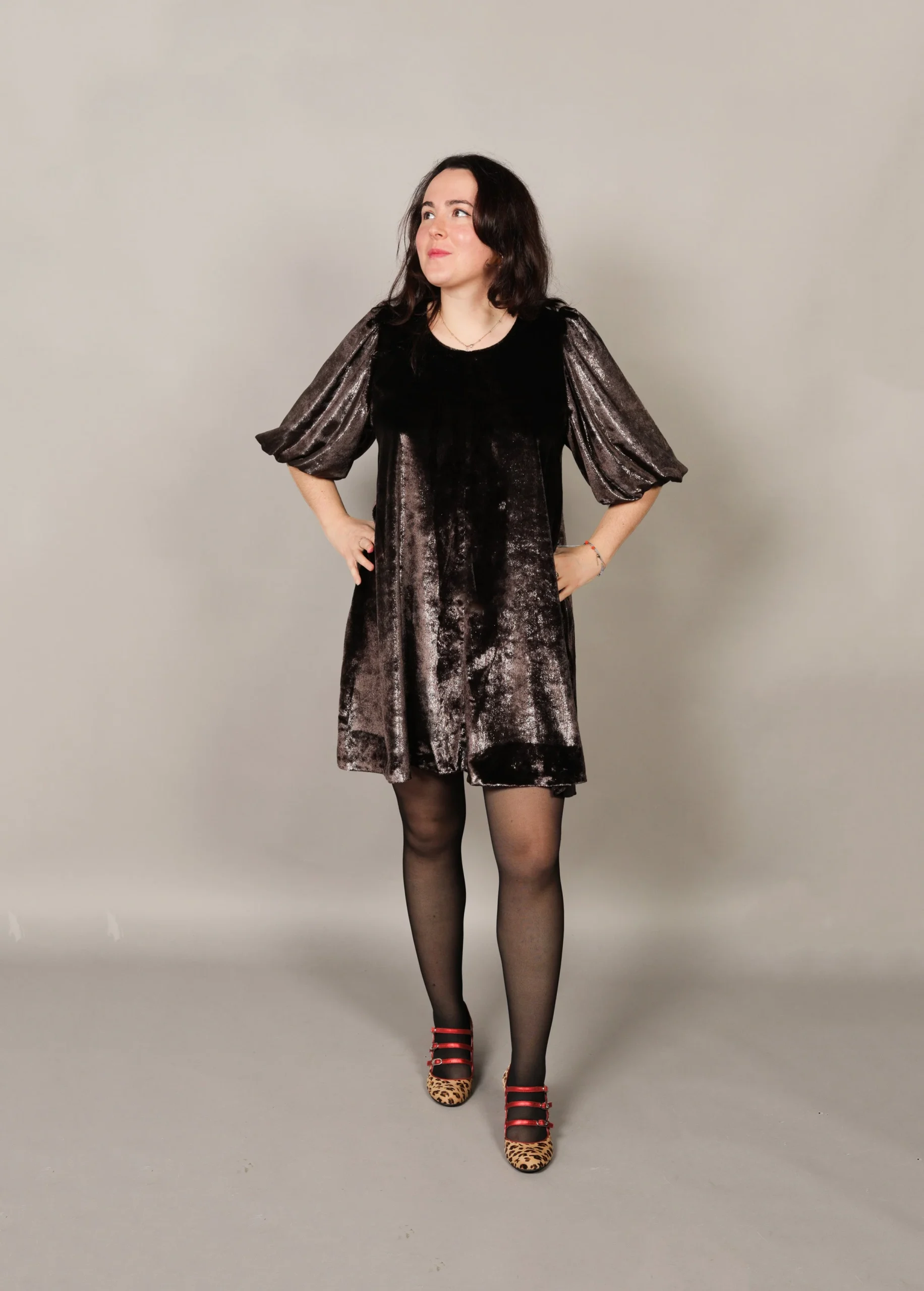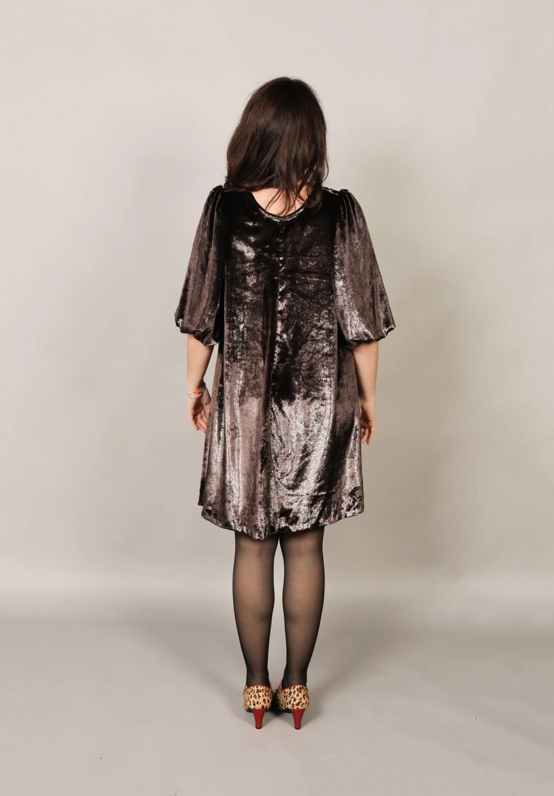 Robe baby doll aux tons châtaigne givrée. Manches ballon, coupe oversize. Une pièce artisanale confectionnée en France qui capture l’esprit de l’automne. Style : Baby doll oversizeManches : BallonConfection : France