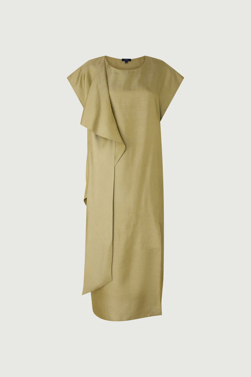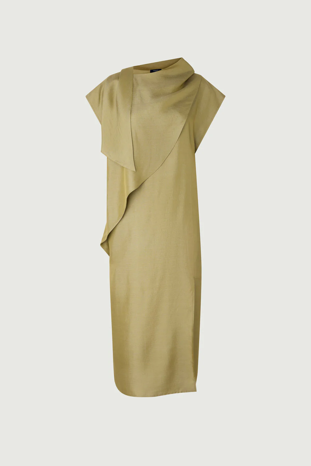 – Coupe ample – Tombé long – Col montant – Fente côté – Foulard à nouer dans la robe