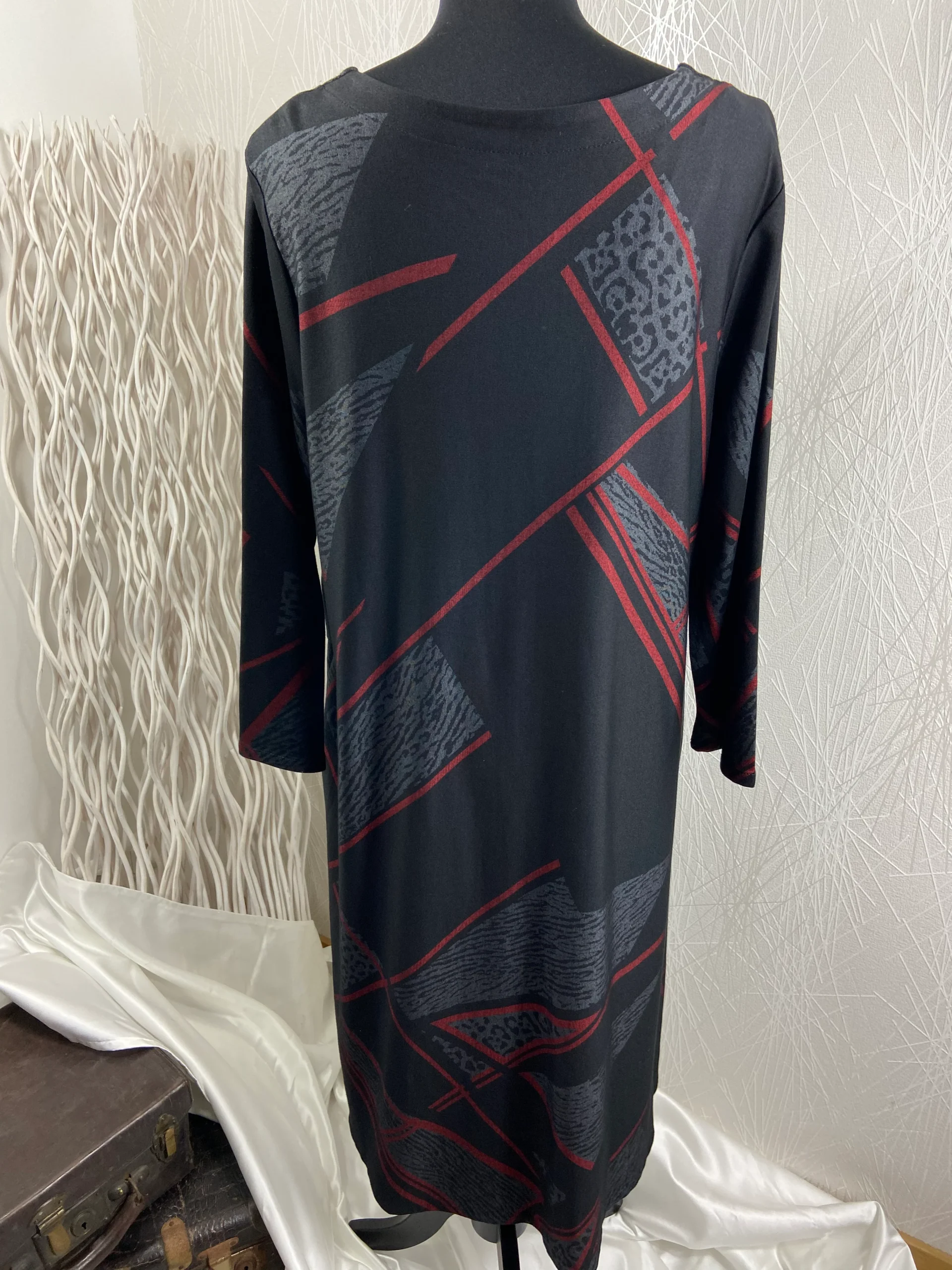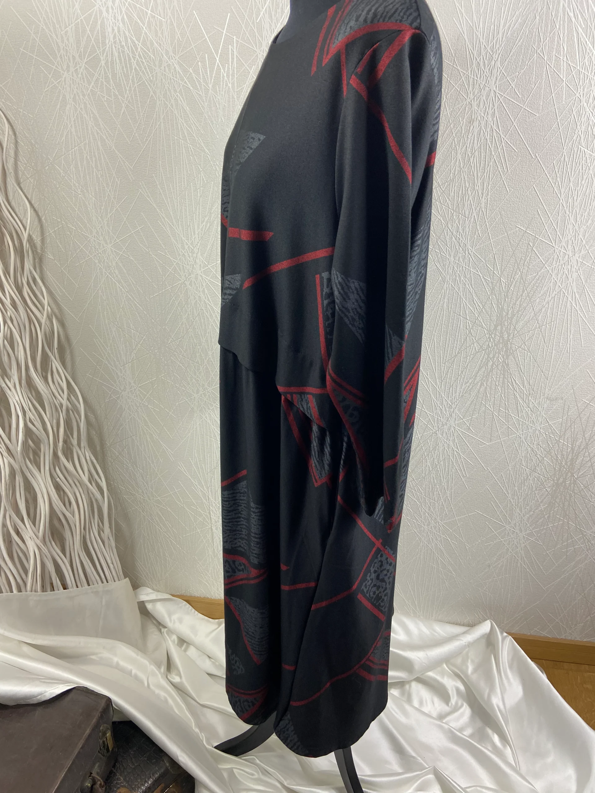 Robe longue noire rouge coupe droite motifs géométriques grande taille Neslay