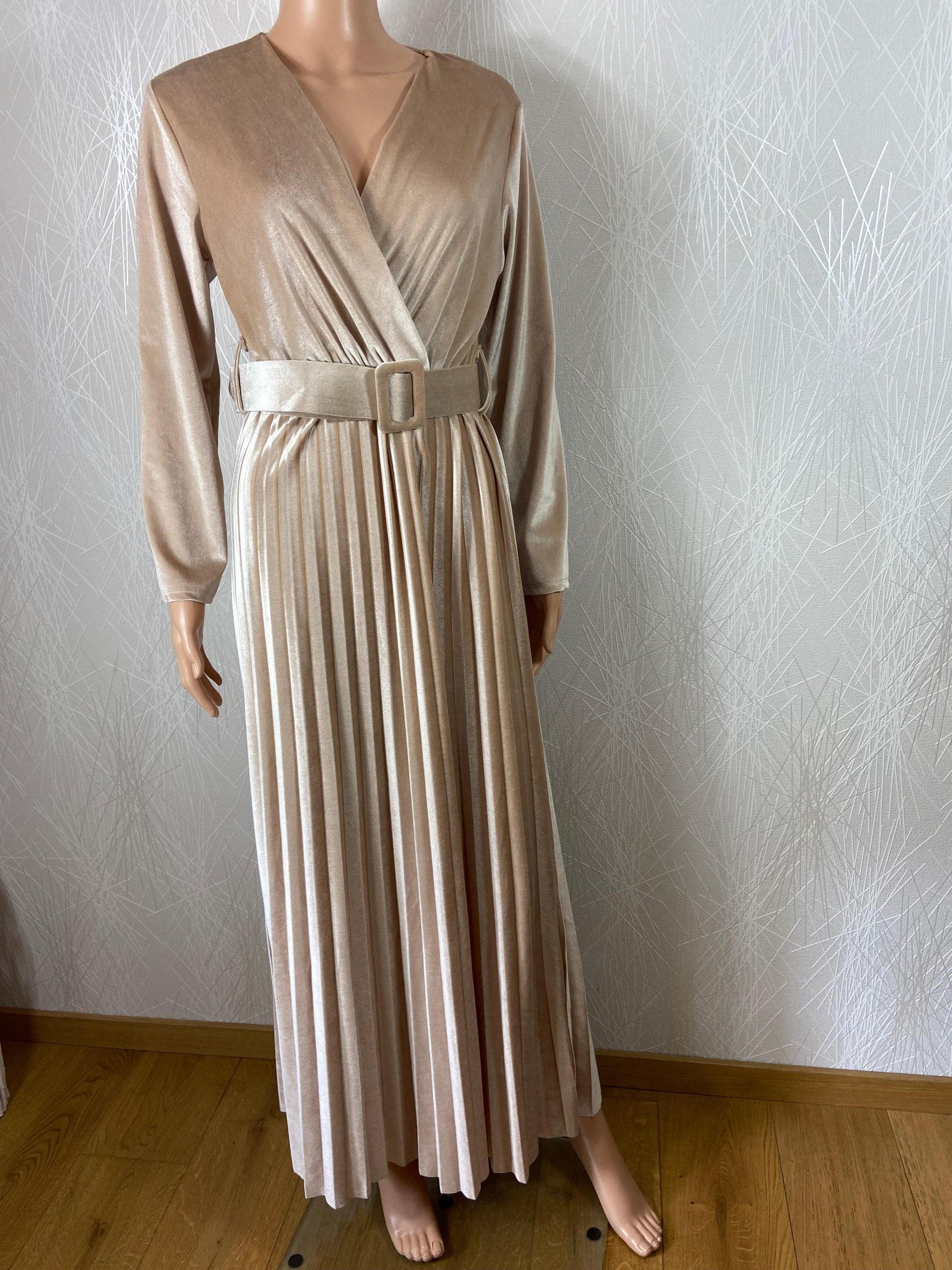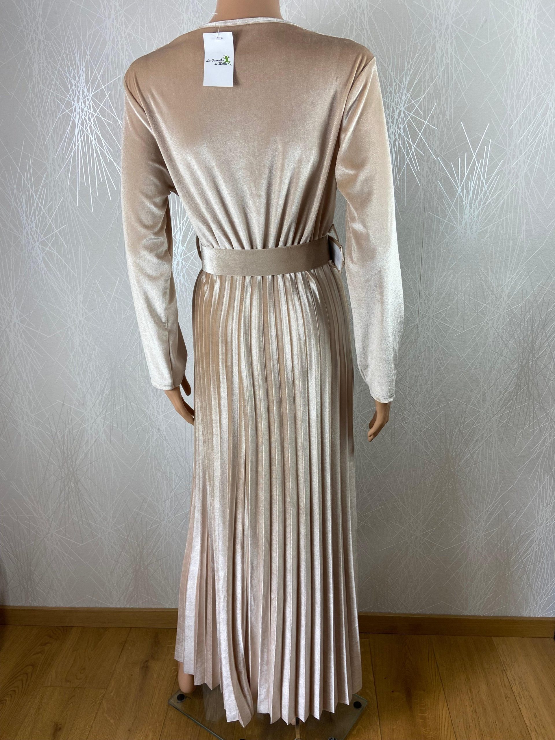 Robe longue plissée velours lisse style cache coeur Made In Italy