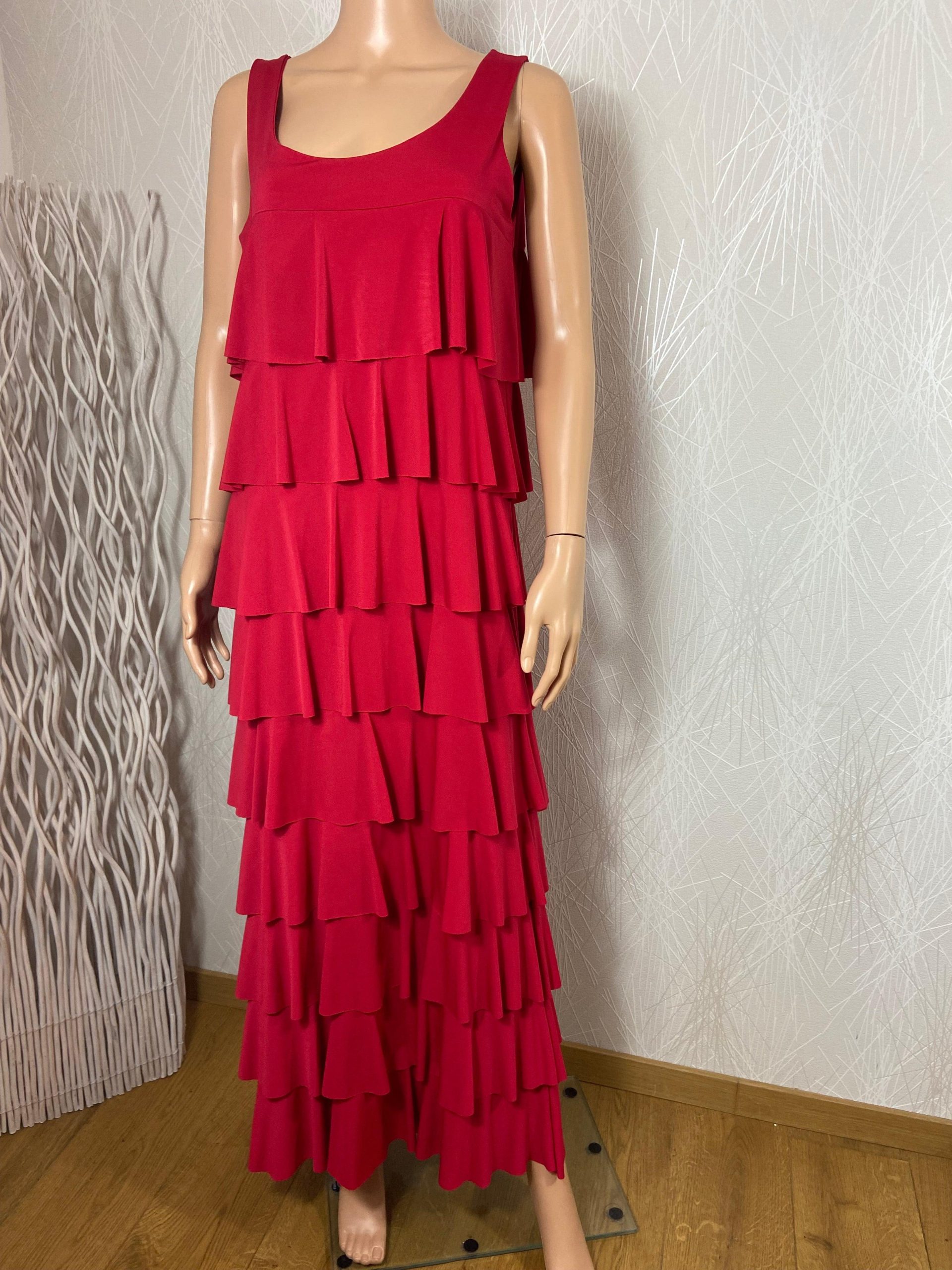 Robe longue rouge à volants, de la marque Edmond Boublil.