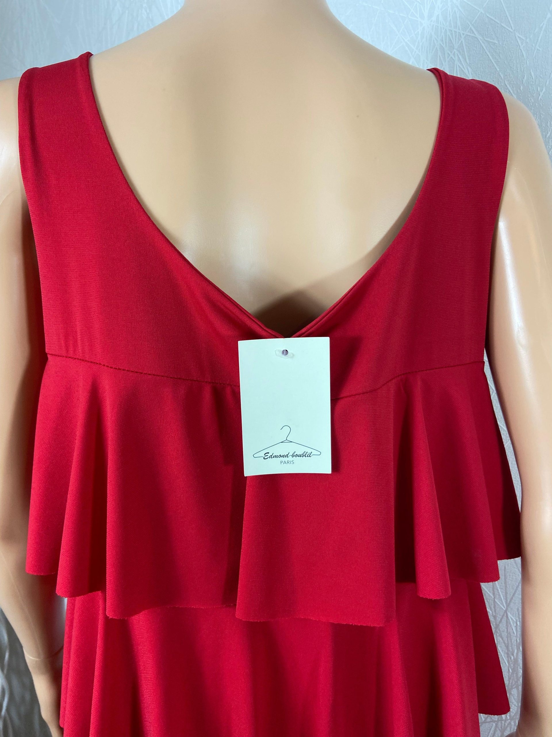 Robe longue rouge bretelles volants Edmond Boublil