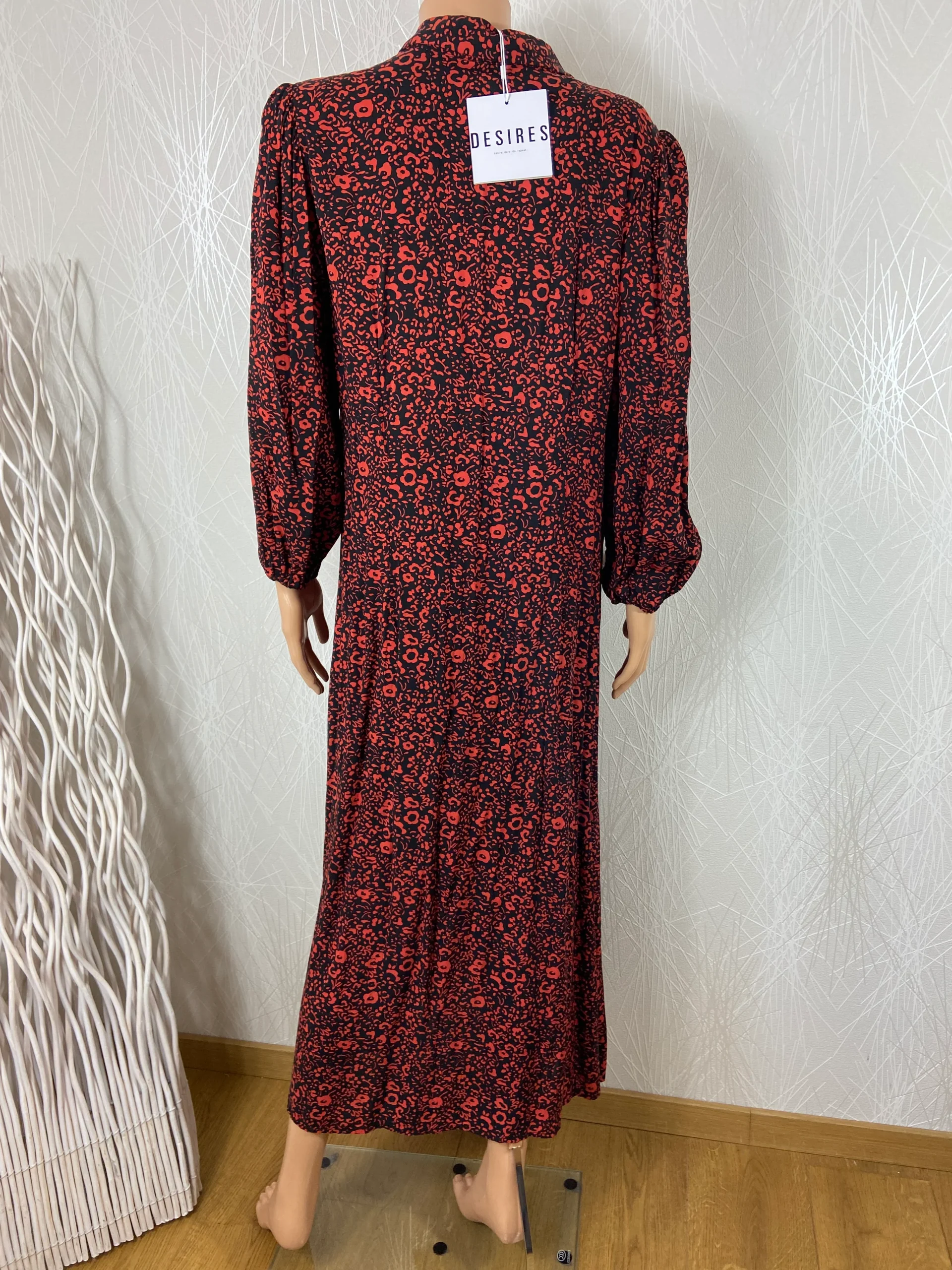 Robe longue rouge et noir à manches 3/4 de la marque Desires.