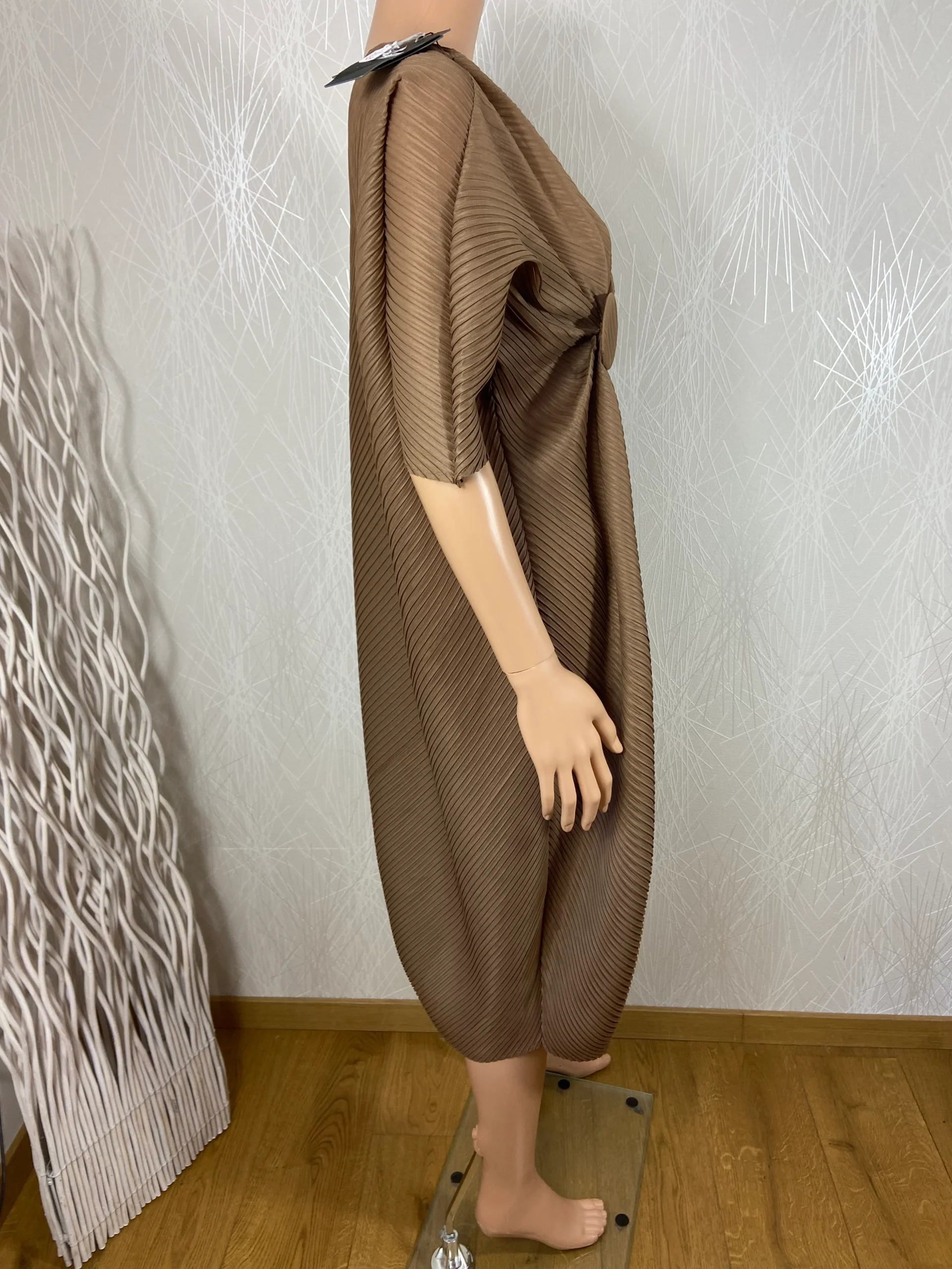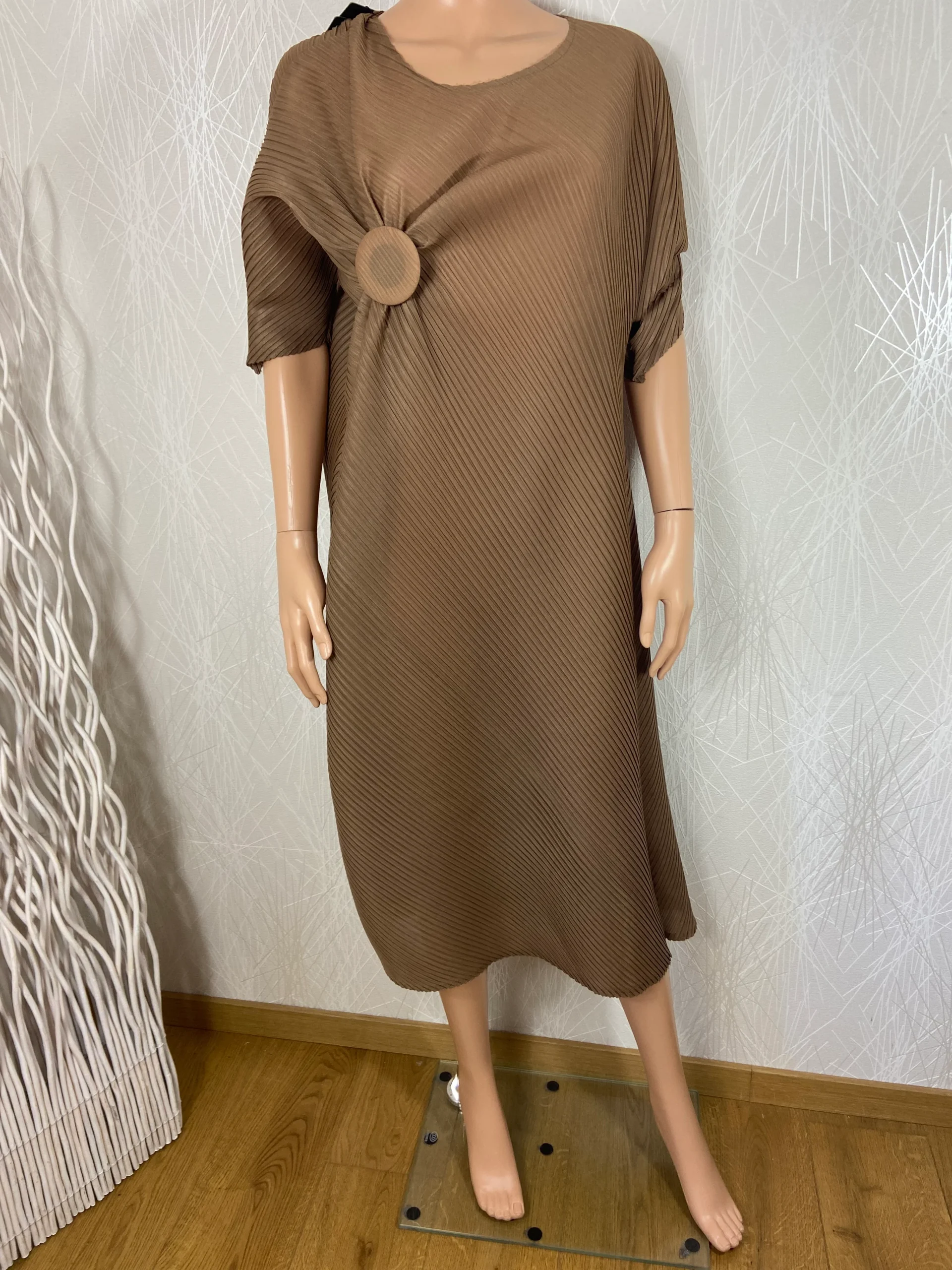 Robe longue à manches courtes de la marque Venus Jeans. Encolure ronde, bas de la robe asymétrique, entièrement extensible, elle convient de la taille 34 à la taille 48. Elle s’adapte parfaitement à toute les morphologies. Matière : 100 % polyester Couleur : Brun. Dimension : Longueur au milieu : 117 cm Marque : Venus […]