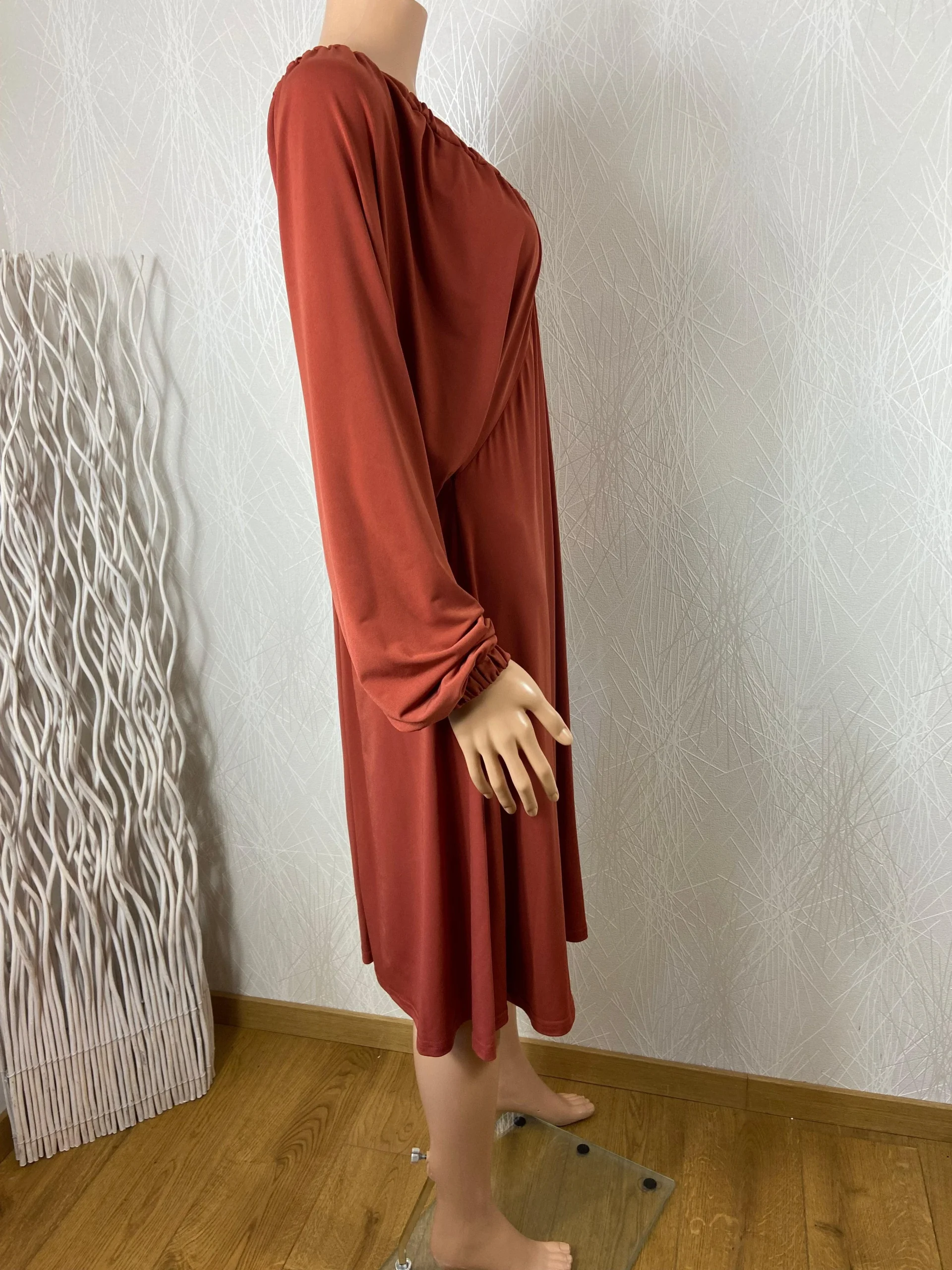 Robe marron jeu de plis manches longues chauve-souris Edmond Boublil