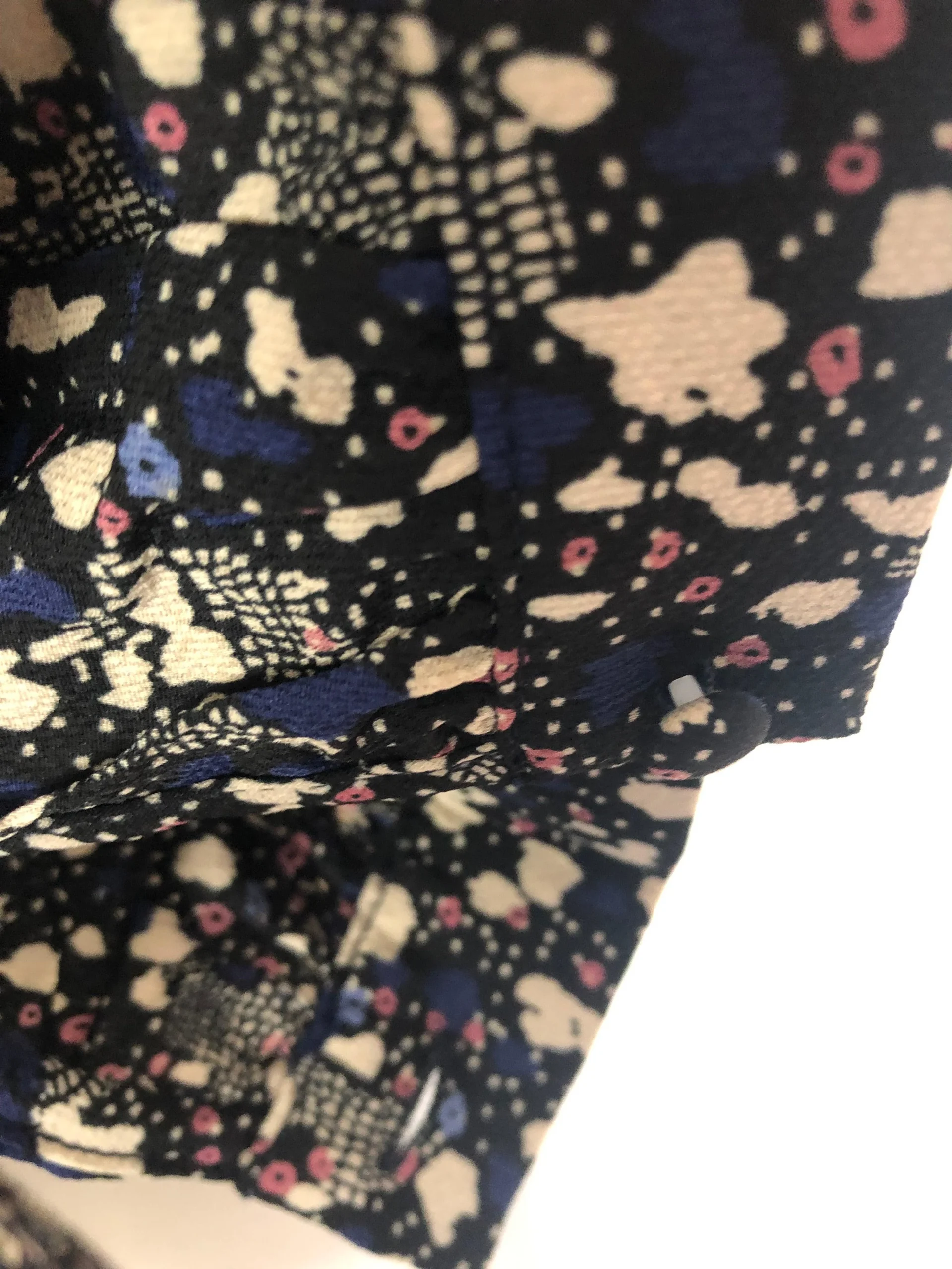 Boutonnage jusqu’à la taille, bas plissé et taille élastique.