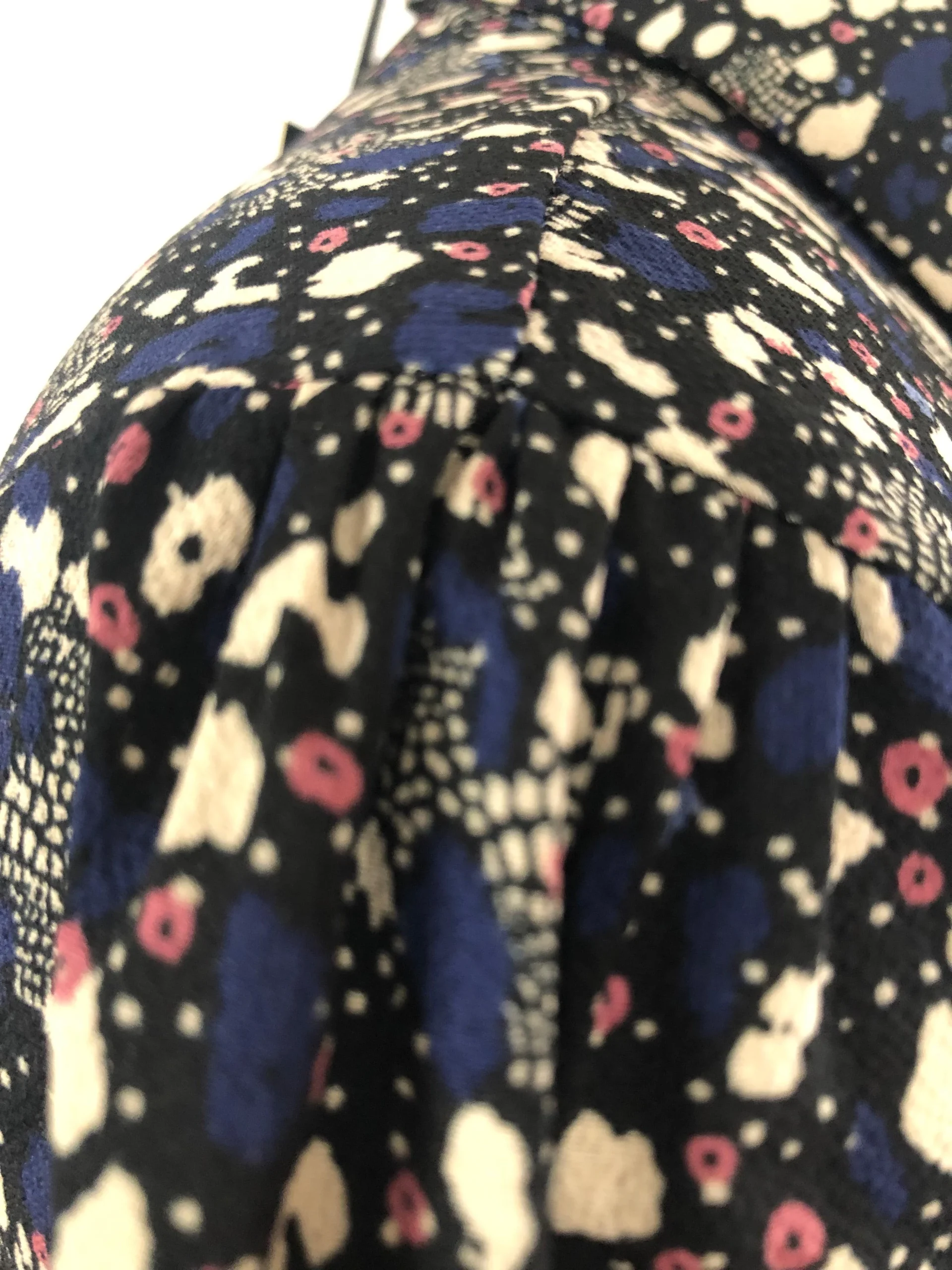 Blouse bleue fleurie manches longues col V Cosmoda
