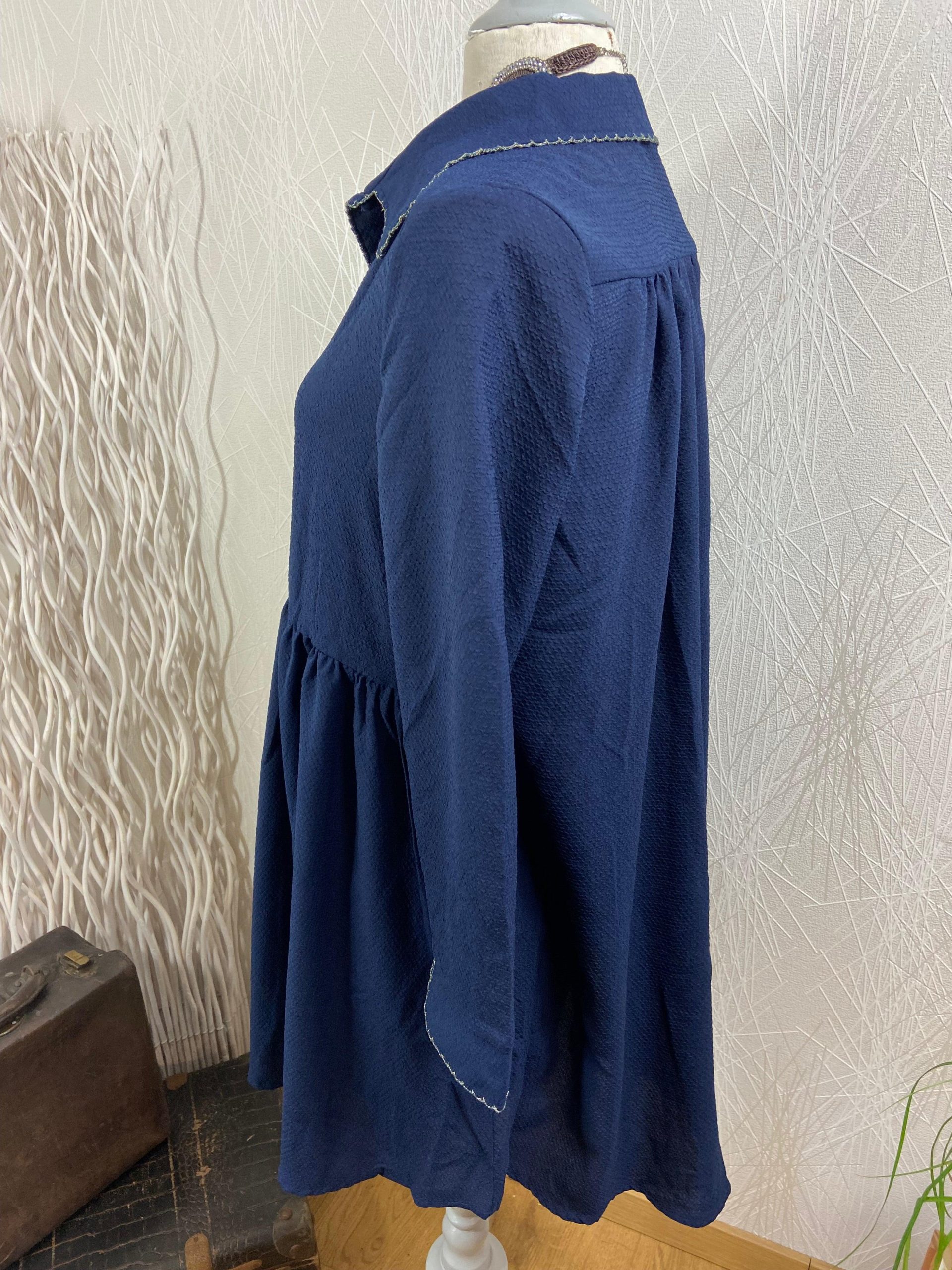 Robe mi-longue asymétrique bleu marine tissu fluide manches 3/4 It Hippie