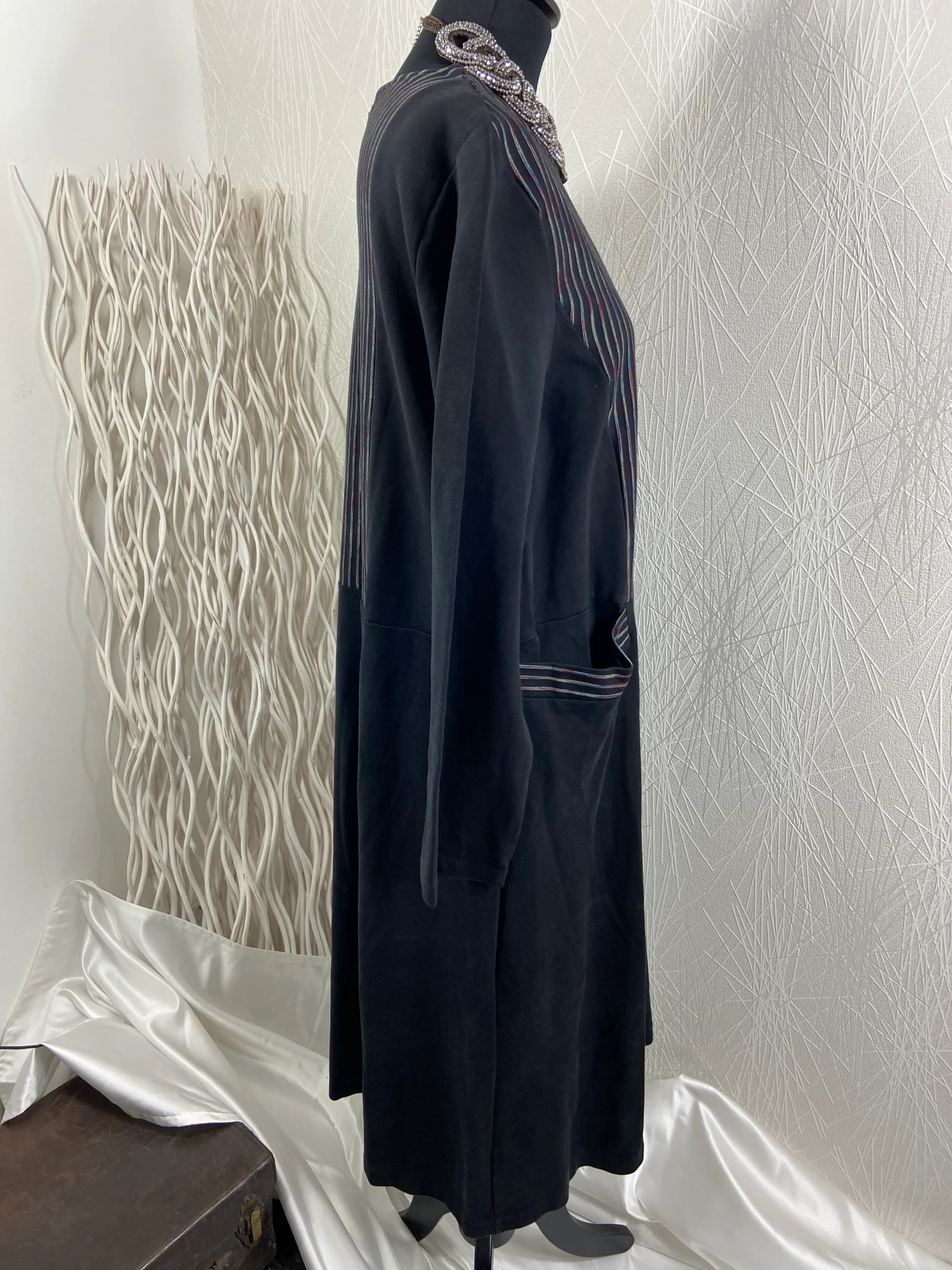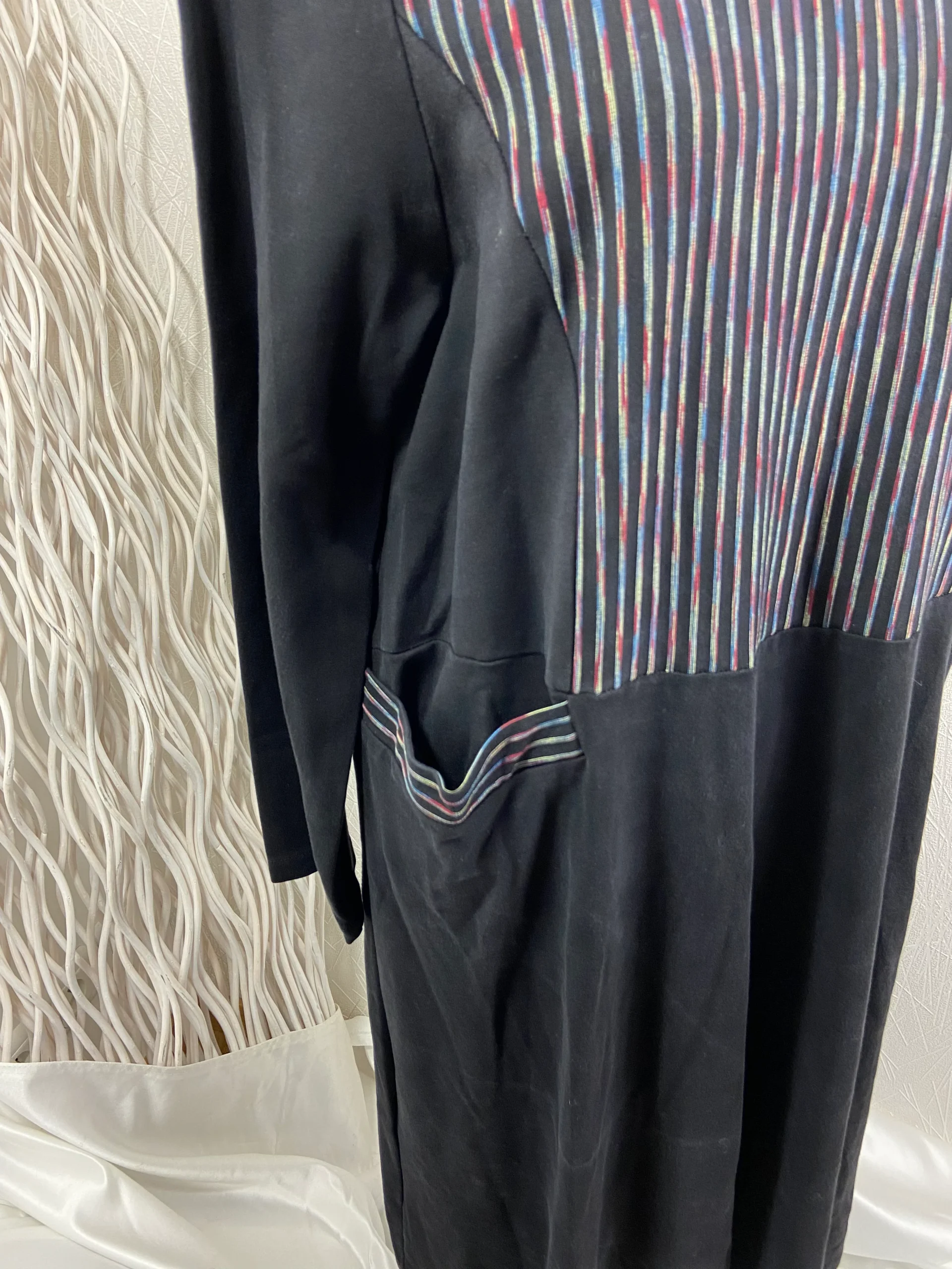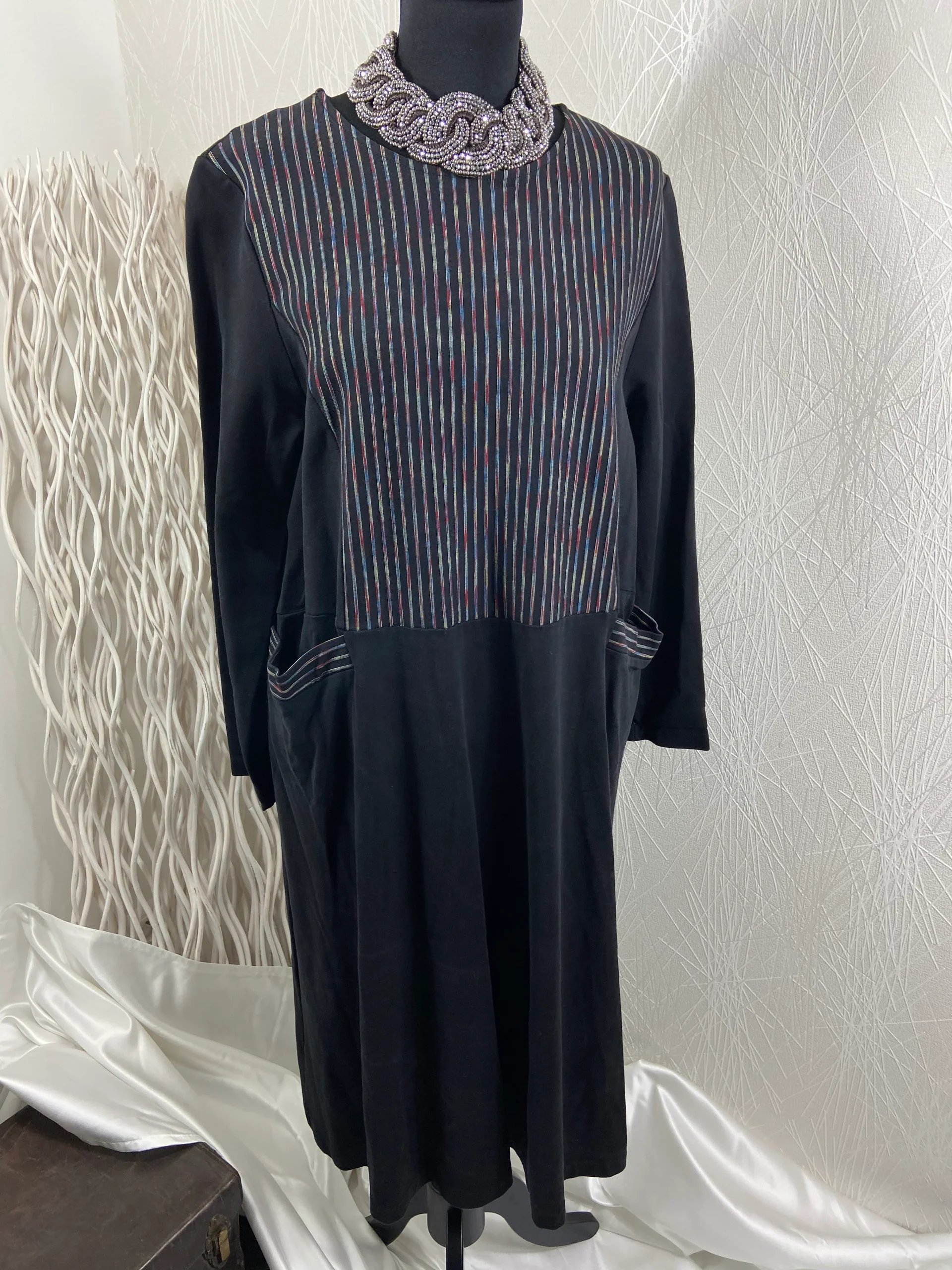 Robe noire ample de grande taille avec motifs rayés de la marque Neslay.