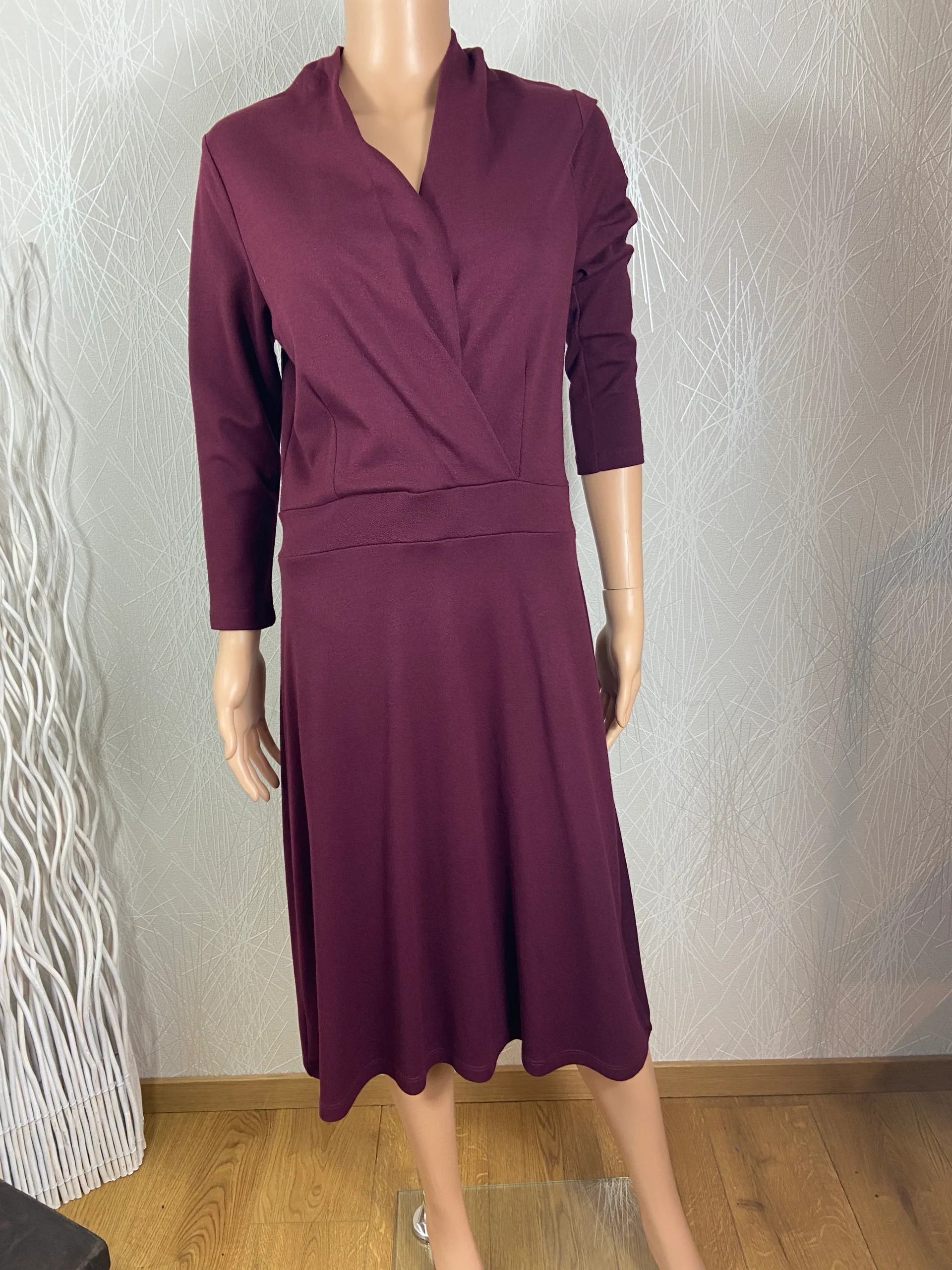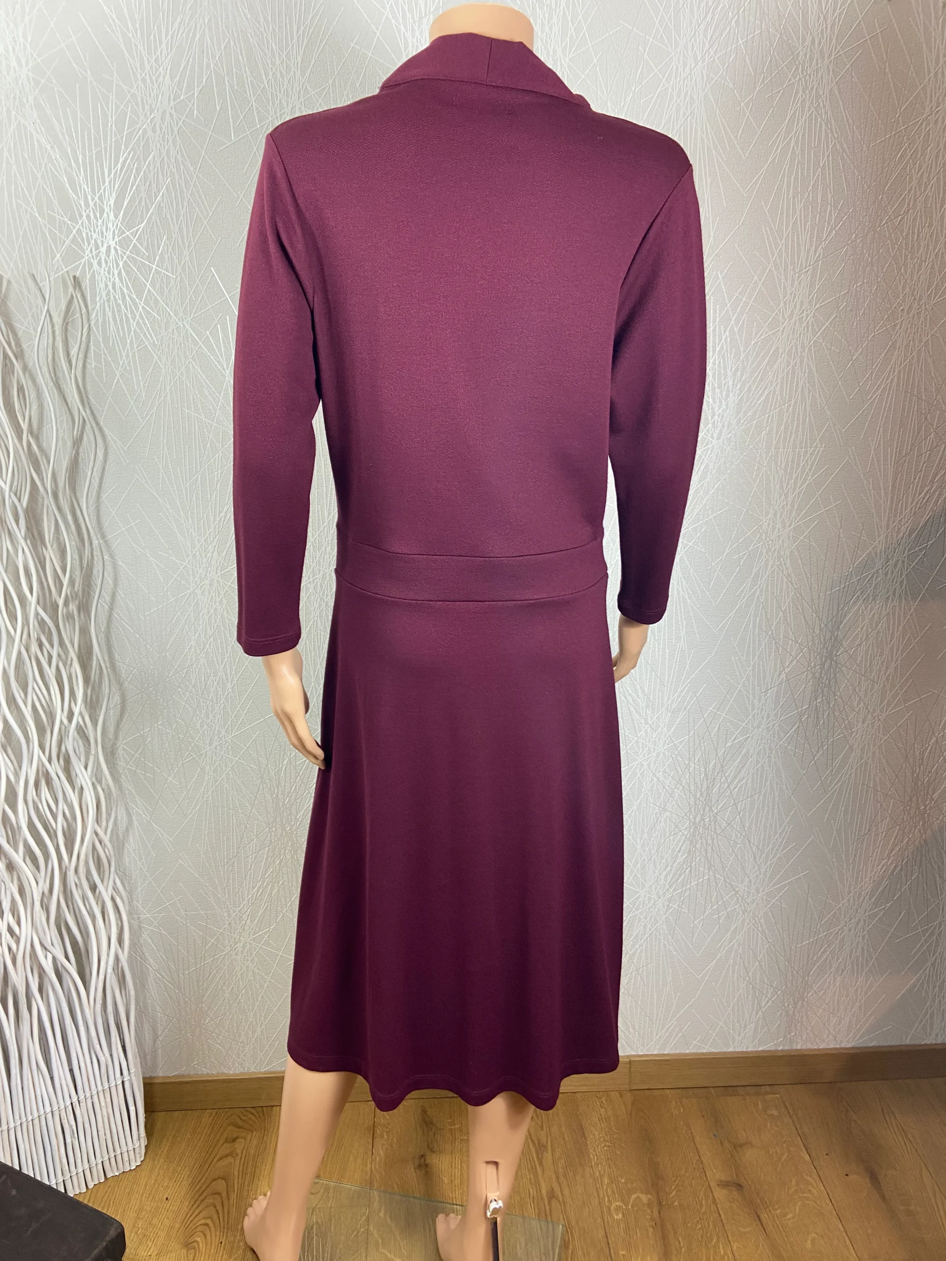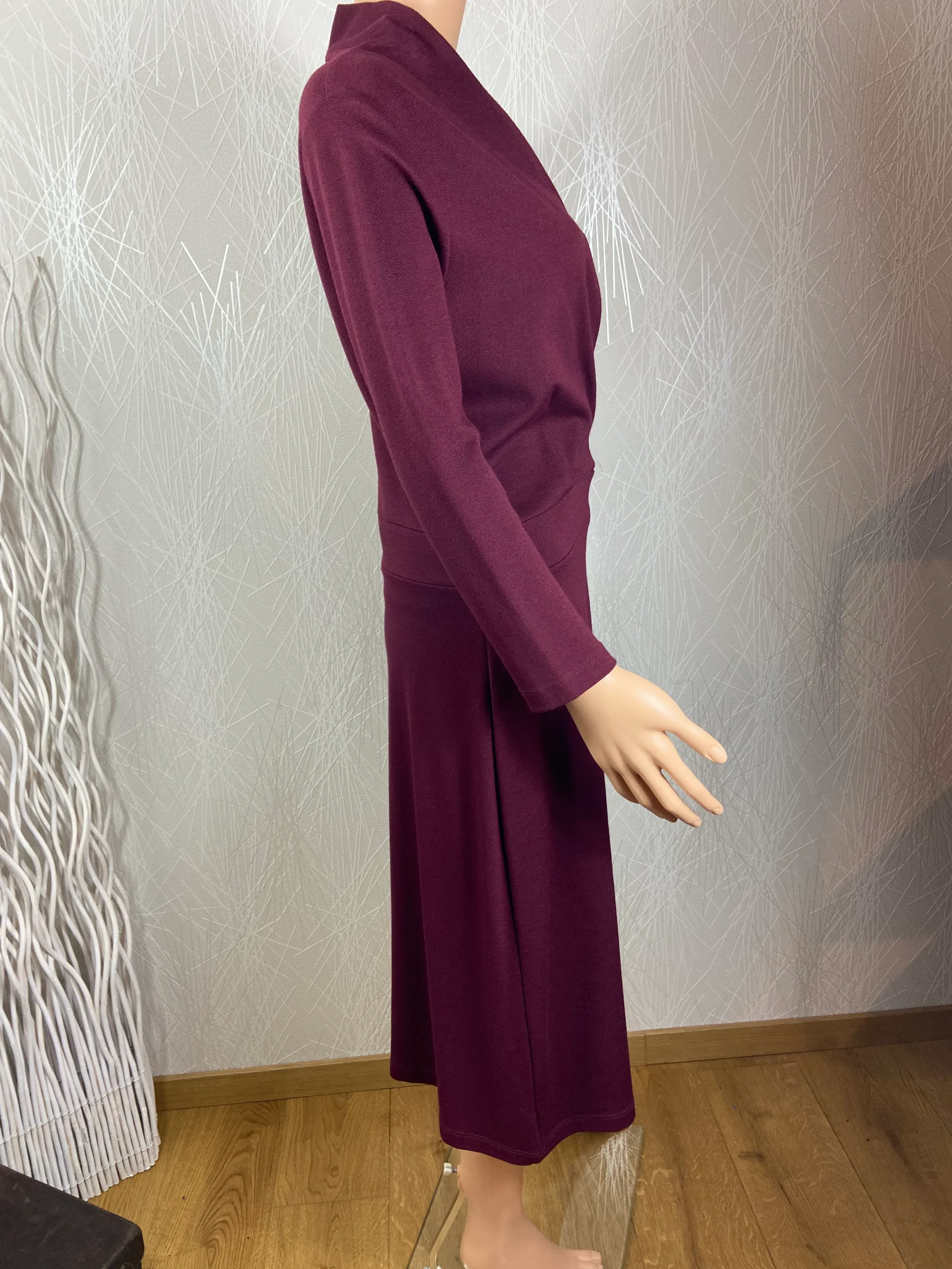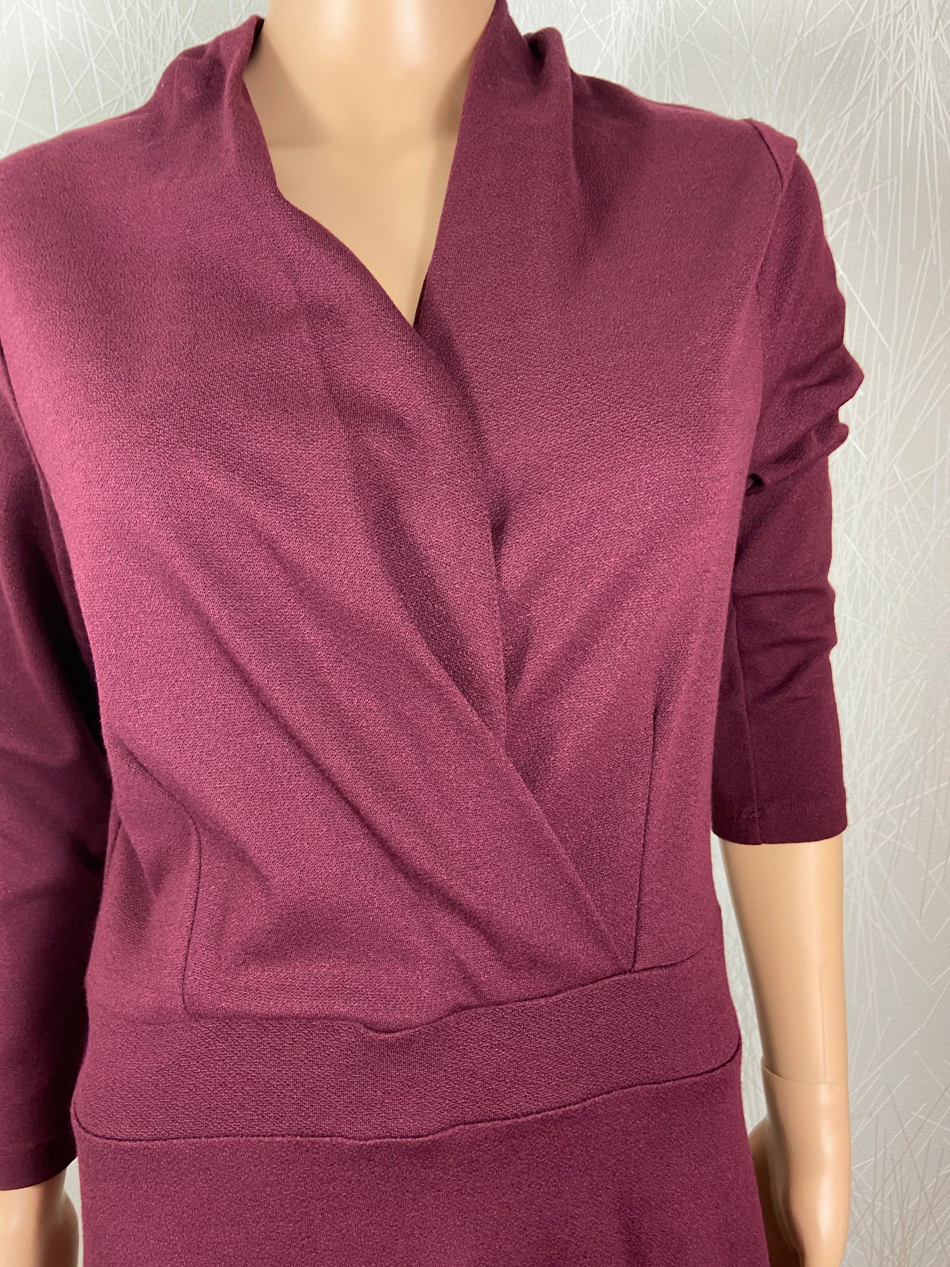Manches longues, encolure style cache coeur, couleur porto prune.
