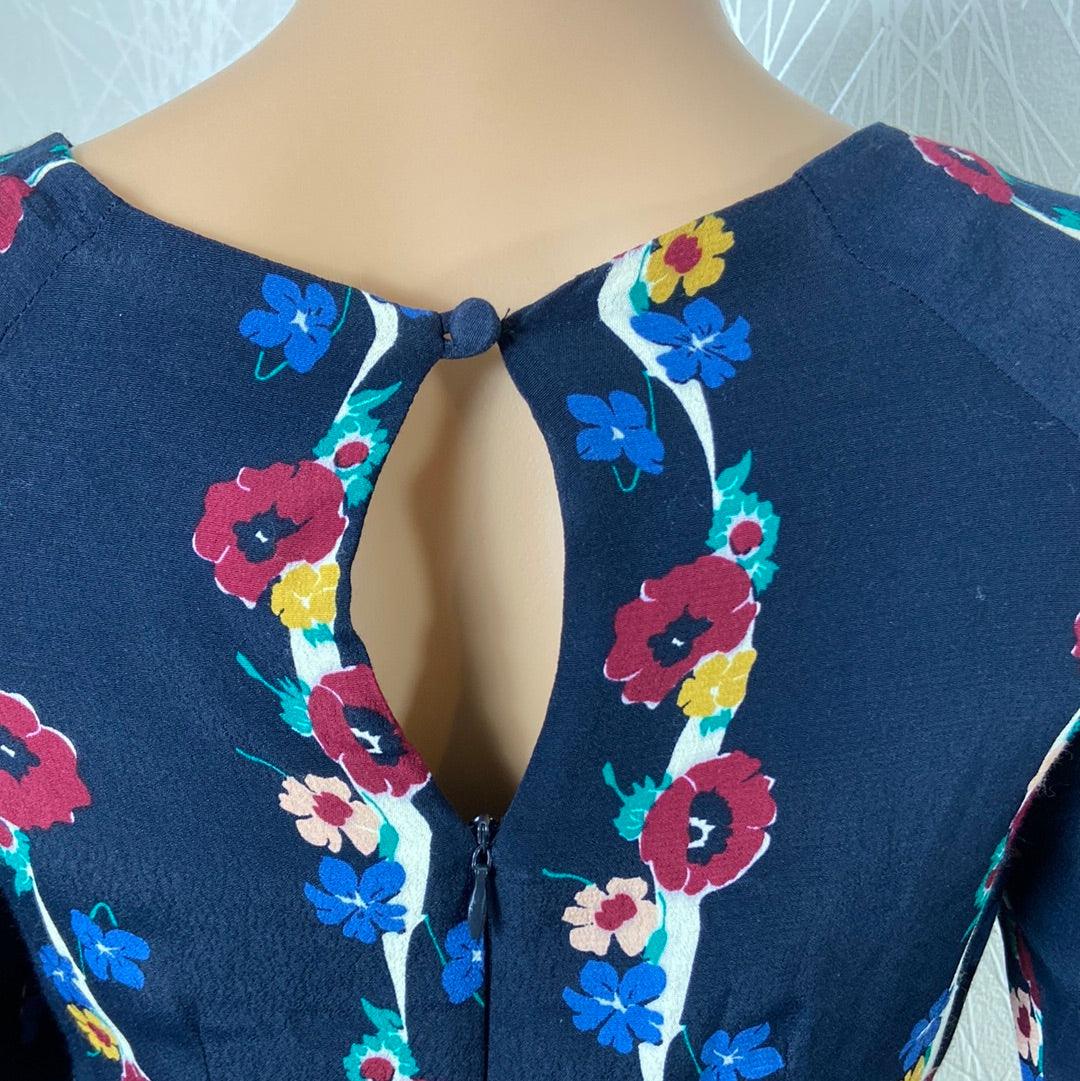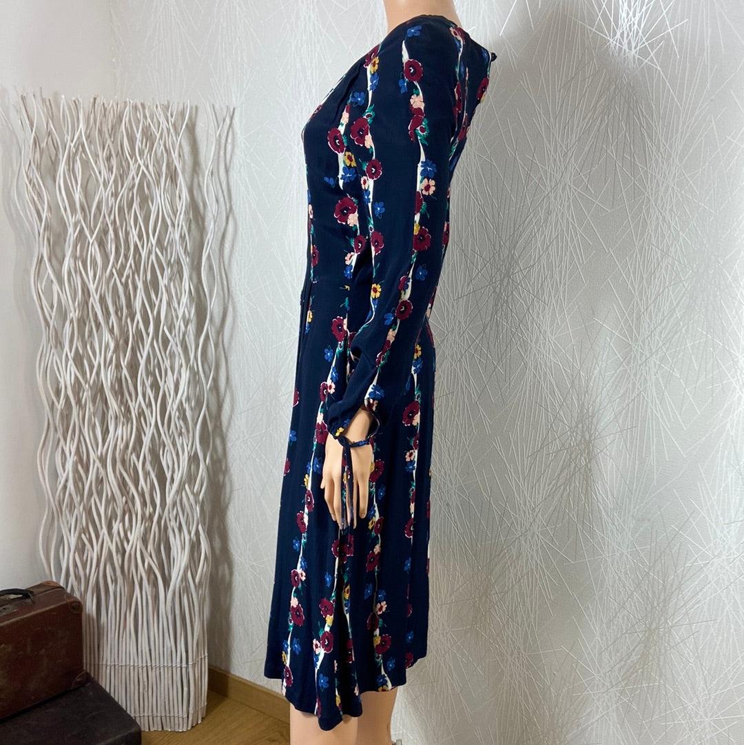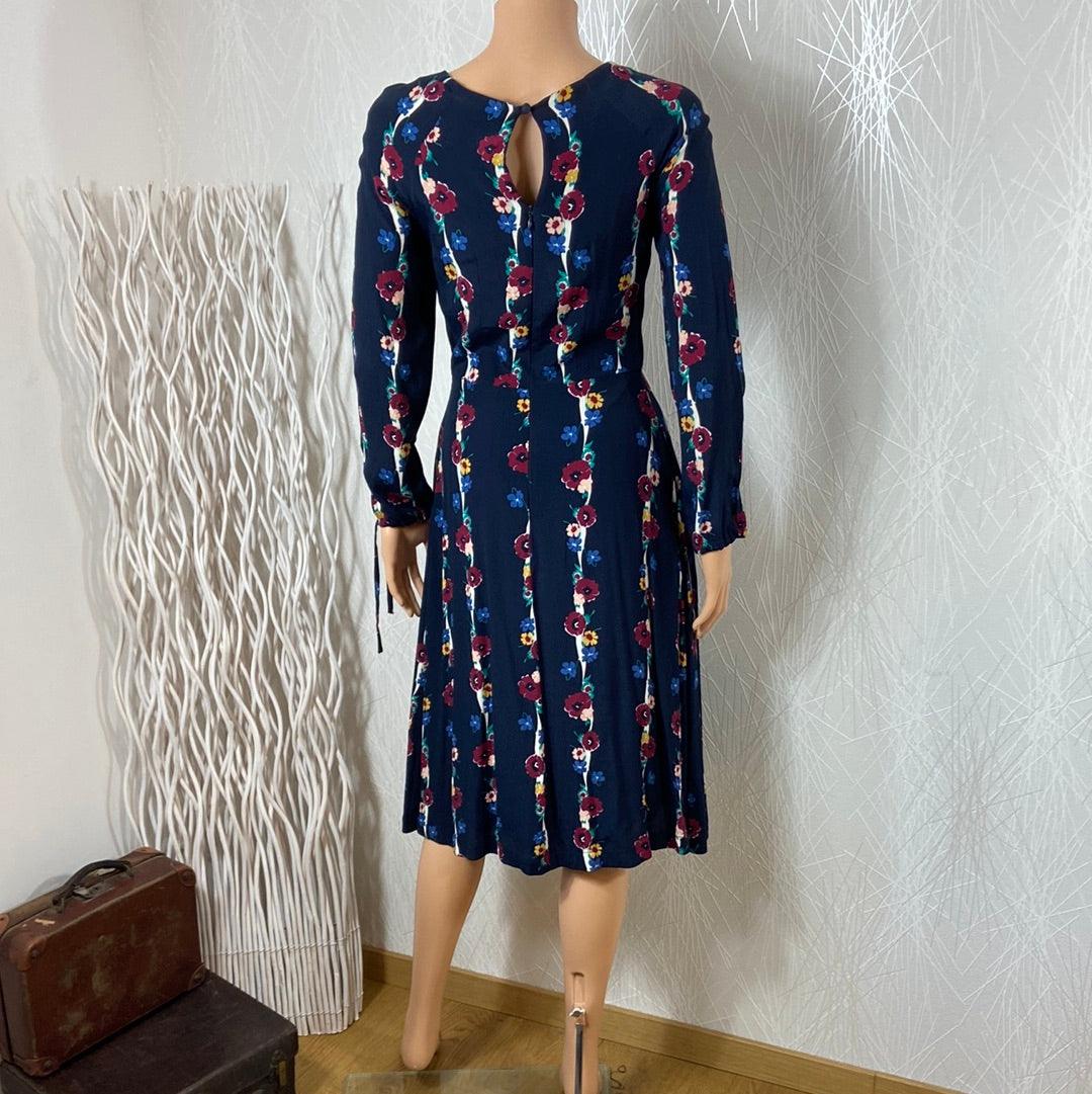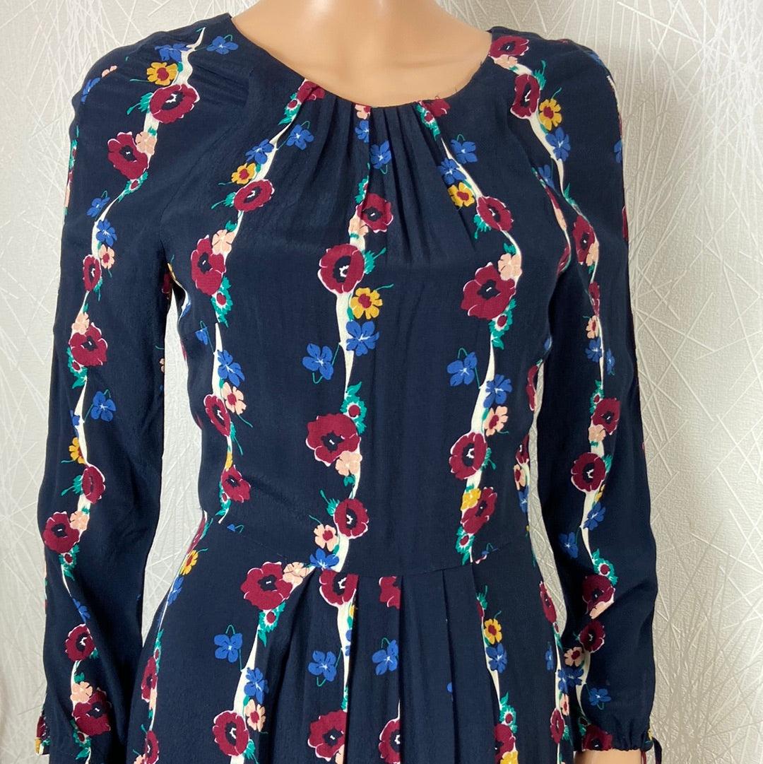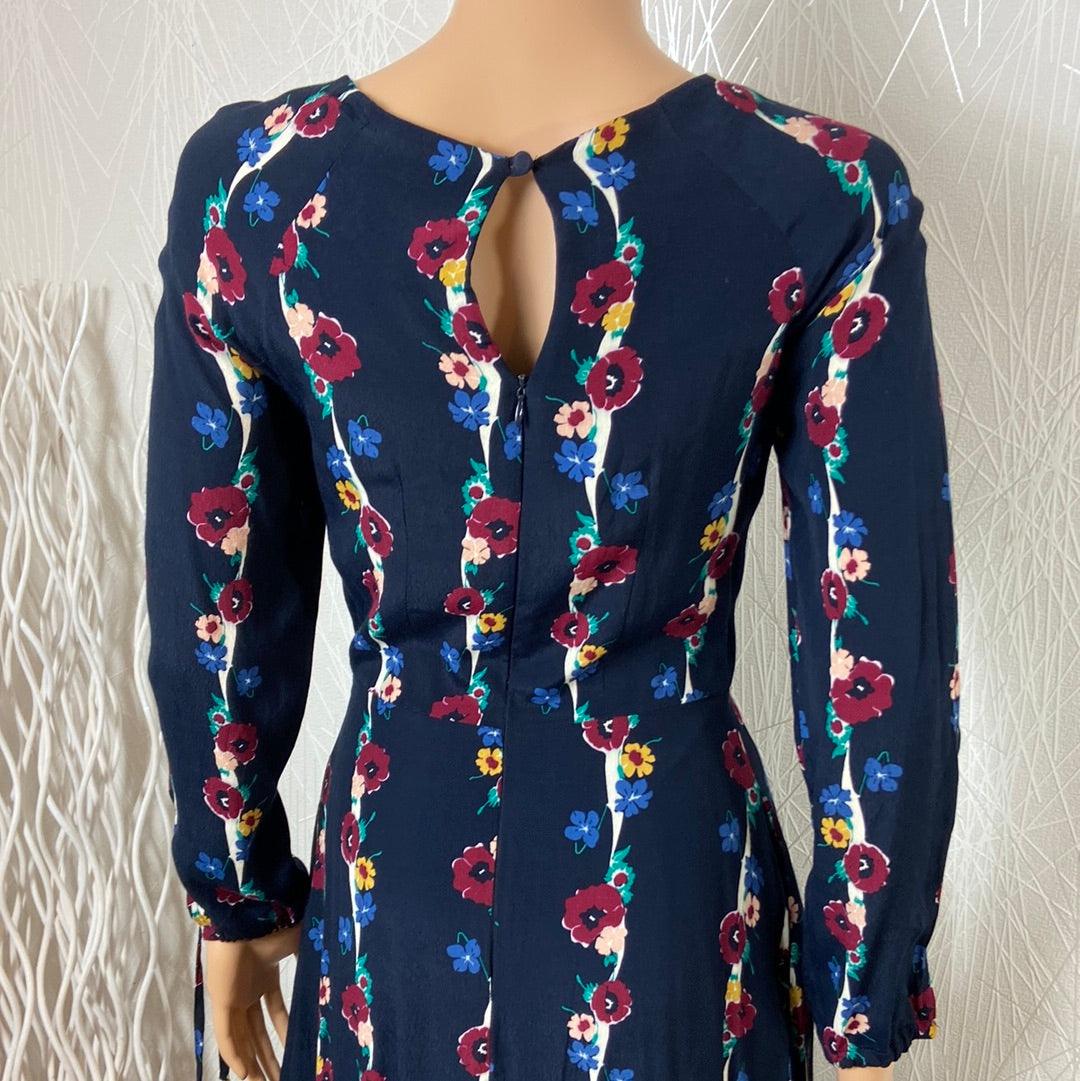Robe midi doublée à manches longues bleu marine à motifs fleuris Emilyandfin