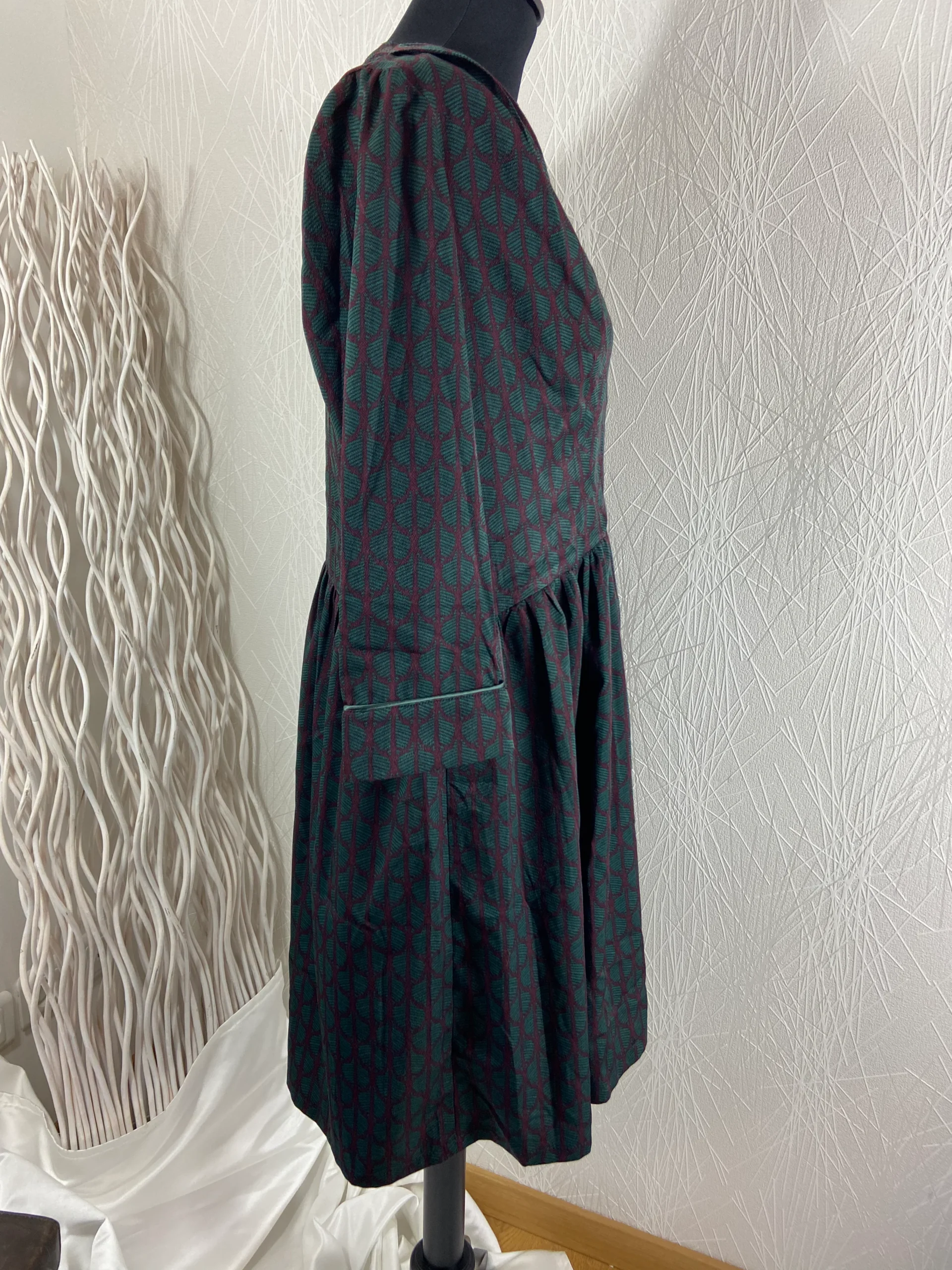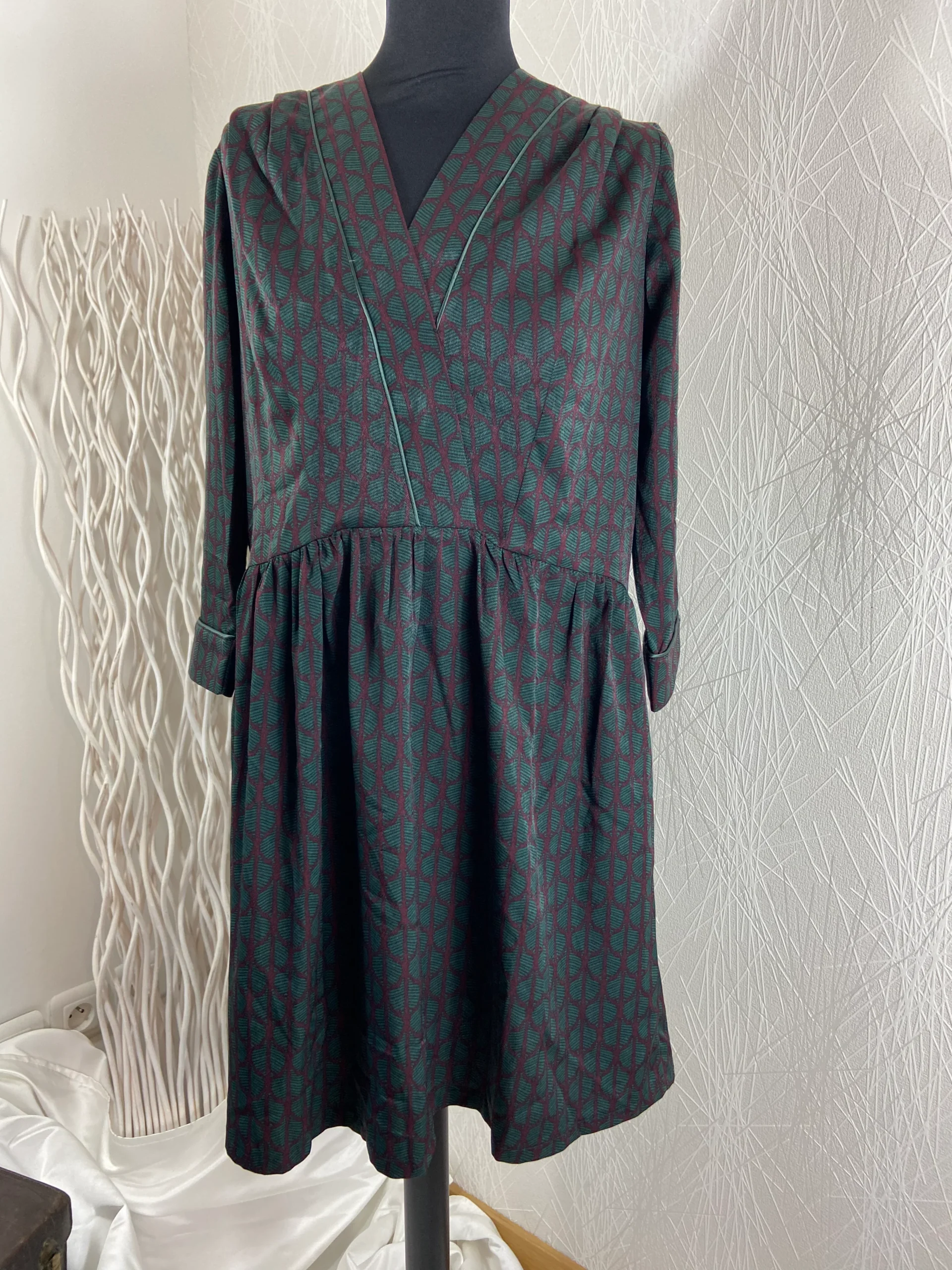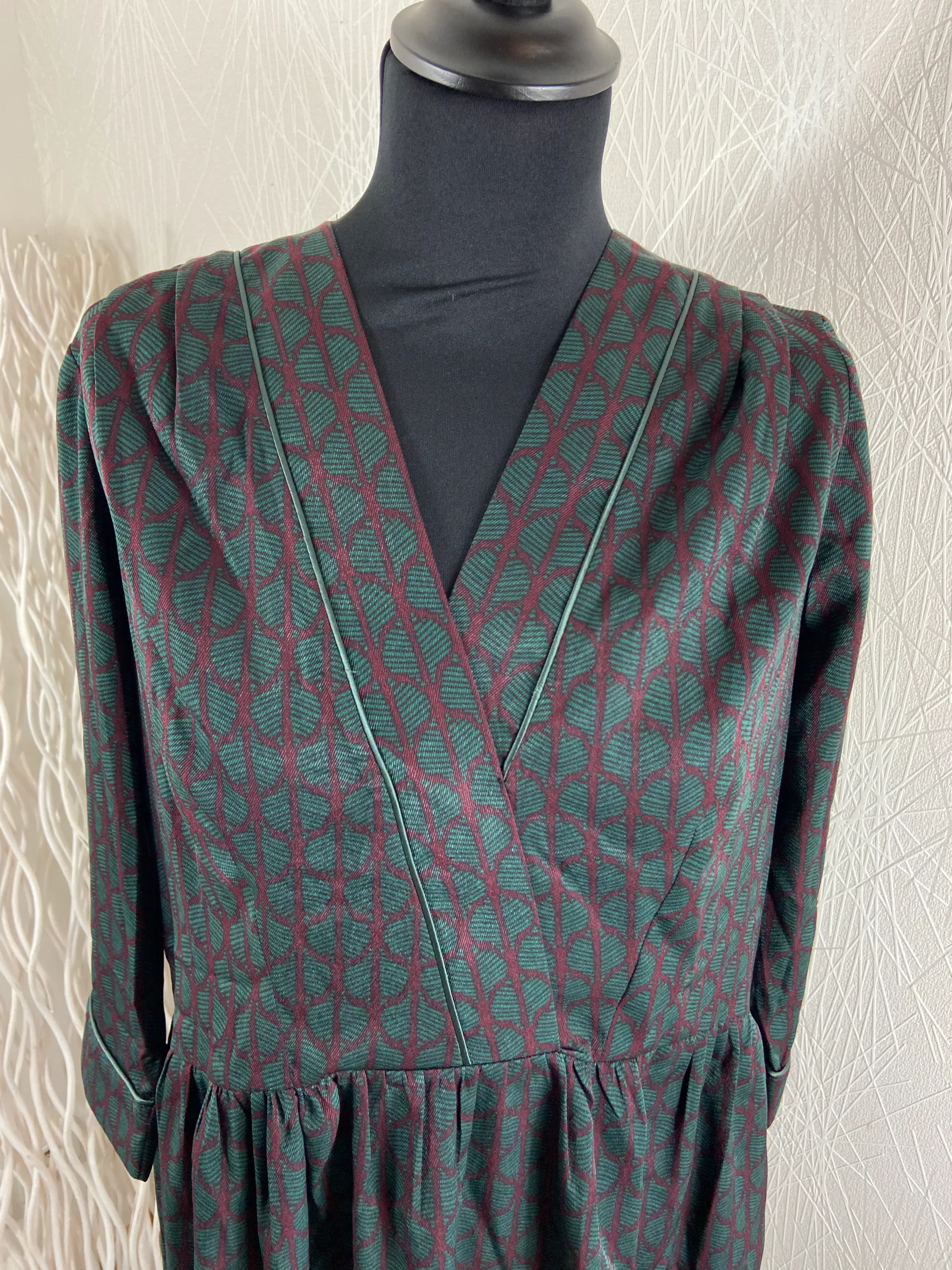 Belle robe midi de belle qualité de la marque Opullence., fabriquée en France. Encolure en V, manches longues et froncé à la taille. Matière : 100% polyester. Couleur : Vert bouteille et bordeaux. Marque : Opullence Paris. Taille : S / 36 – Réf : 36MR1831 Dimensions : Largeur épaule : 36 cm ; tour […]