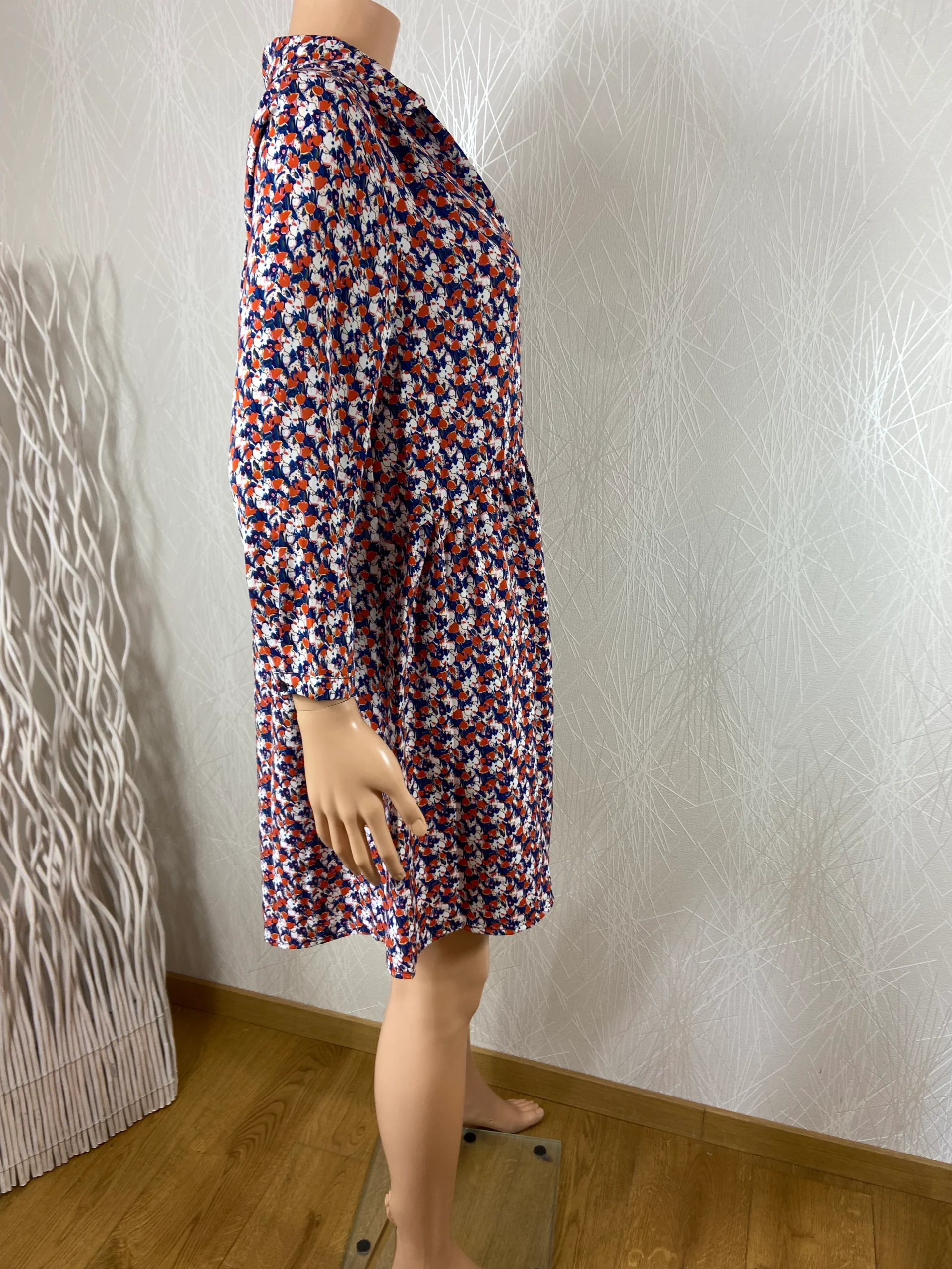 Jolie robe multicolore fleurie de la marque Y Coo. Entièrement boutonnée, couture de fronçage à la taille et manches longues. Matière : 65% polyester – 35% viscose Couleur : Multicolore. Marque : Y Coo. Taille : S / 36 – Réf : 36MR1868 Dimensions : Largeur épaule : 38 cm ; tour de poitrine : […]