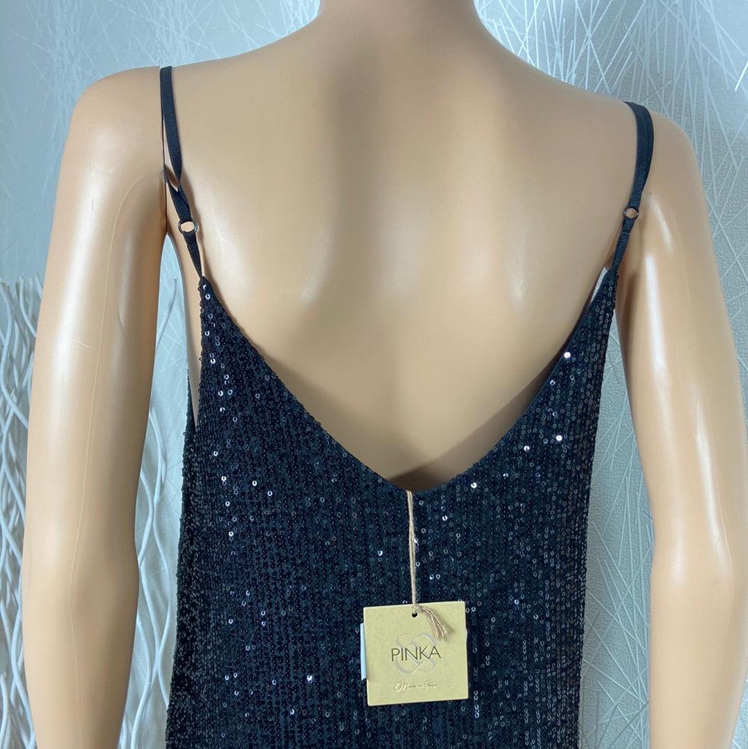 Robe noire doublée à sequins de la marque Pinka.