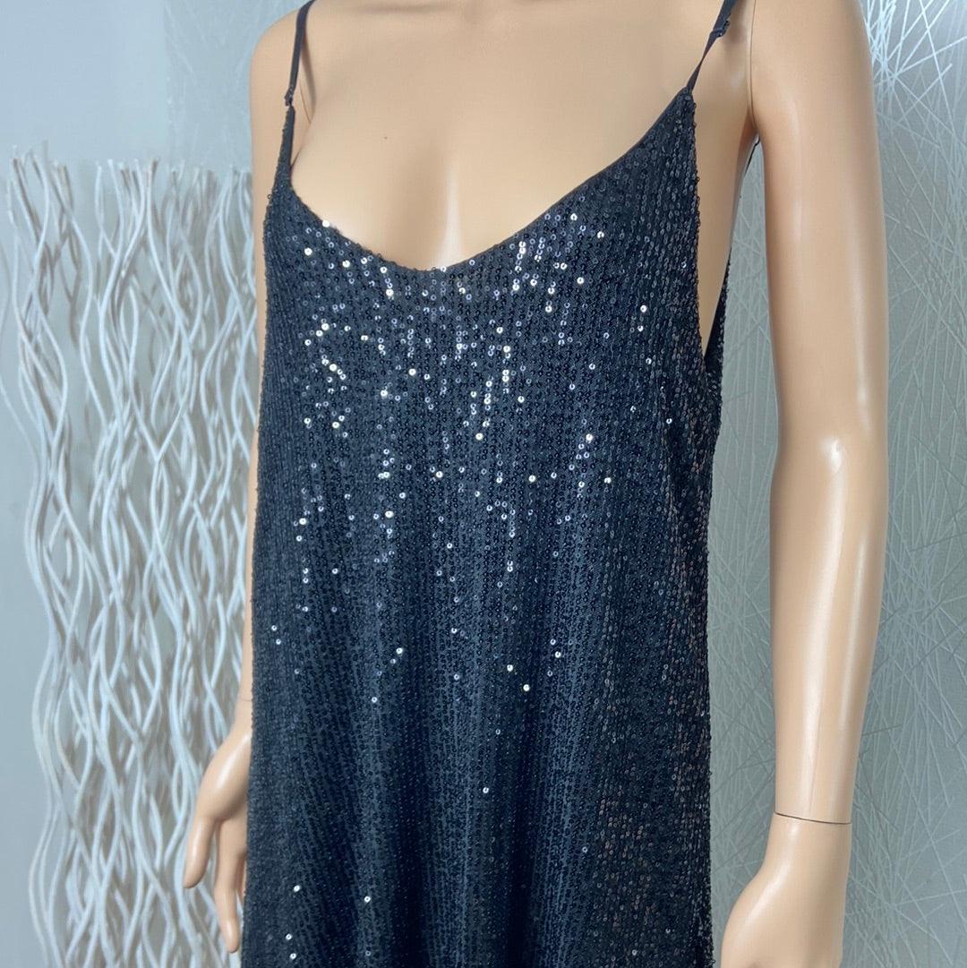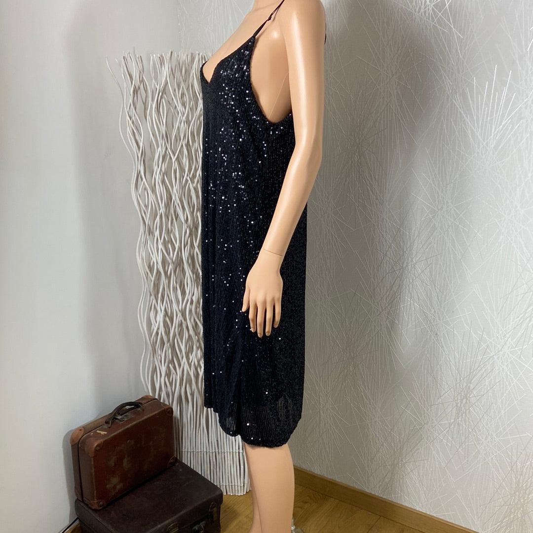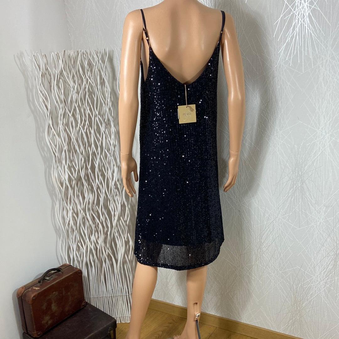 Robe noire doublée à sequins bretelles réglable Pinka