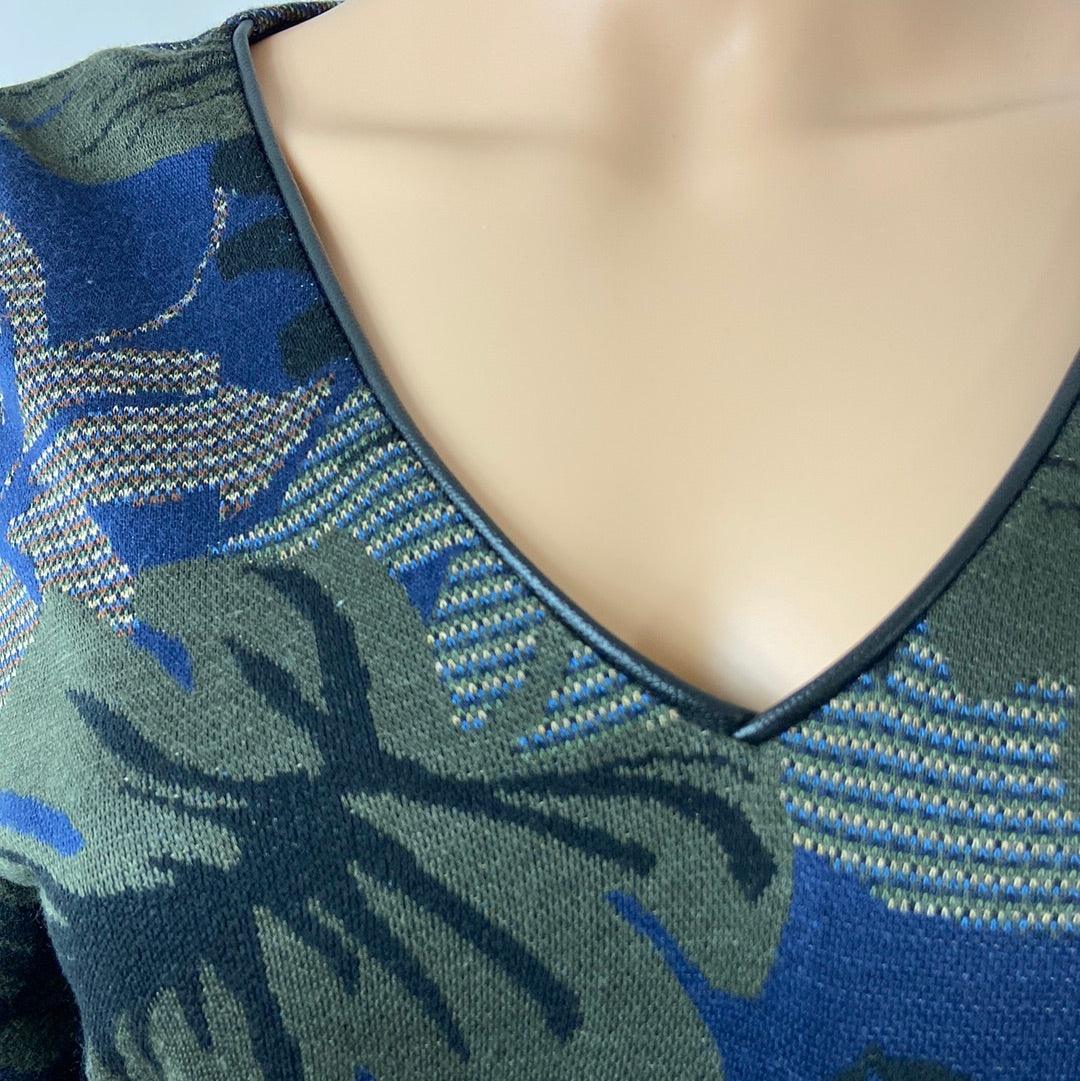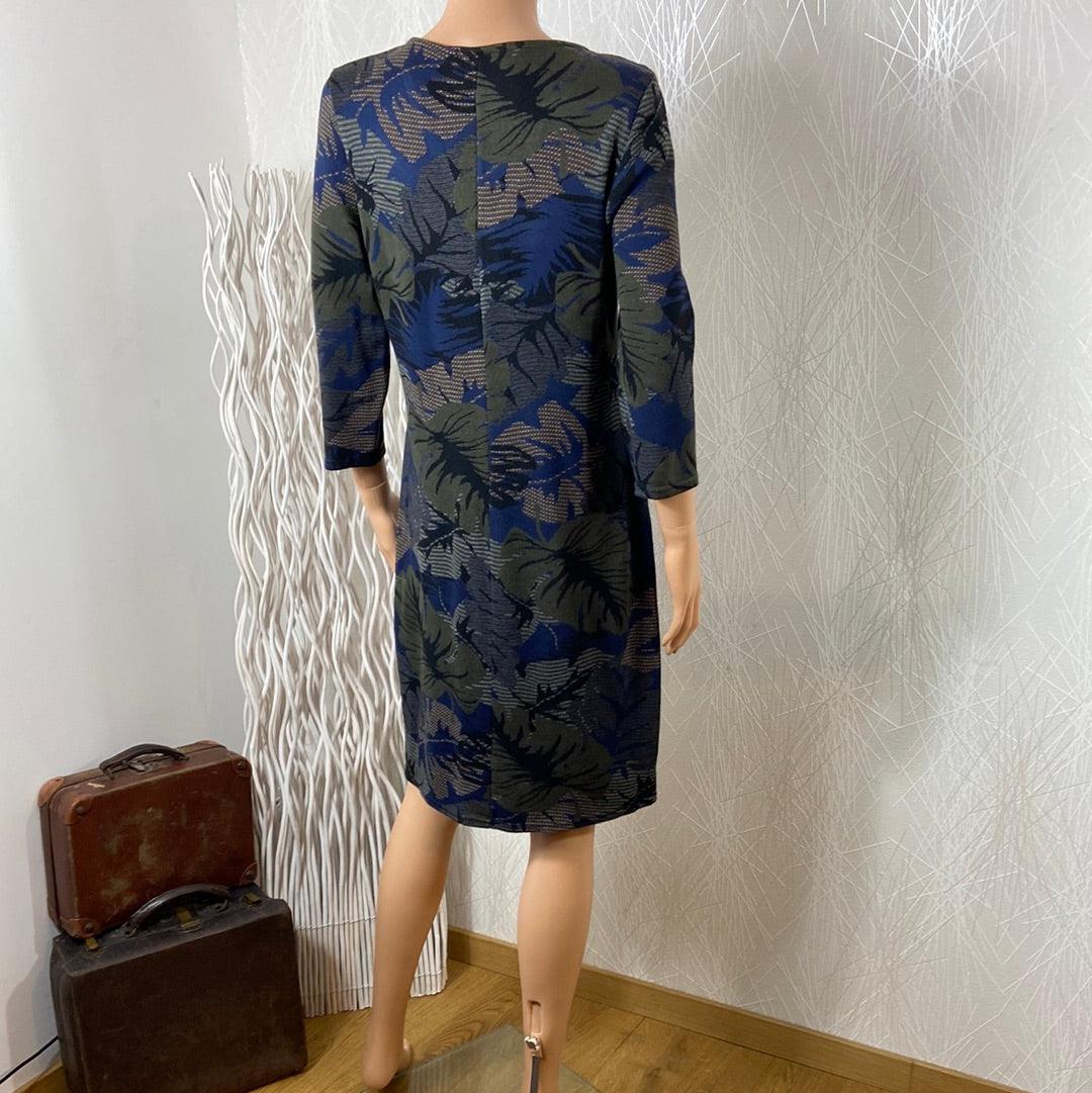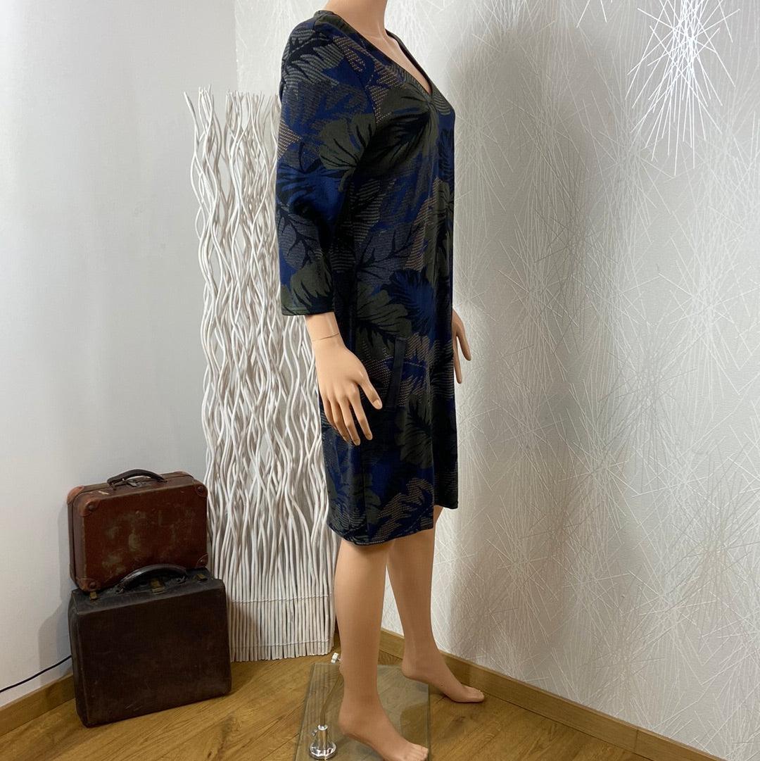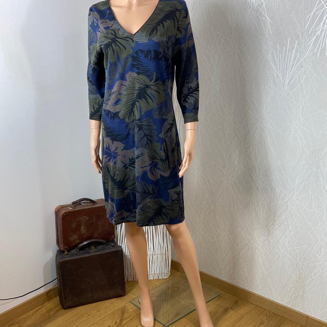 Robe vert kaki et bleu marine encolure V manches 3/4 coupe droite Le Singe De Julie