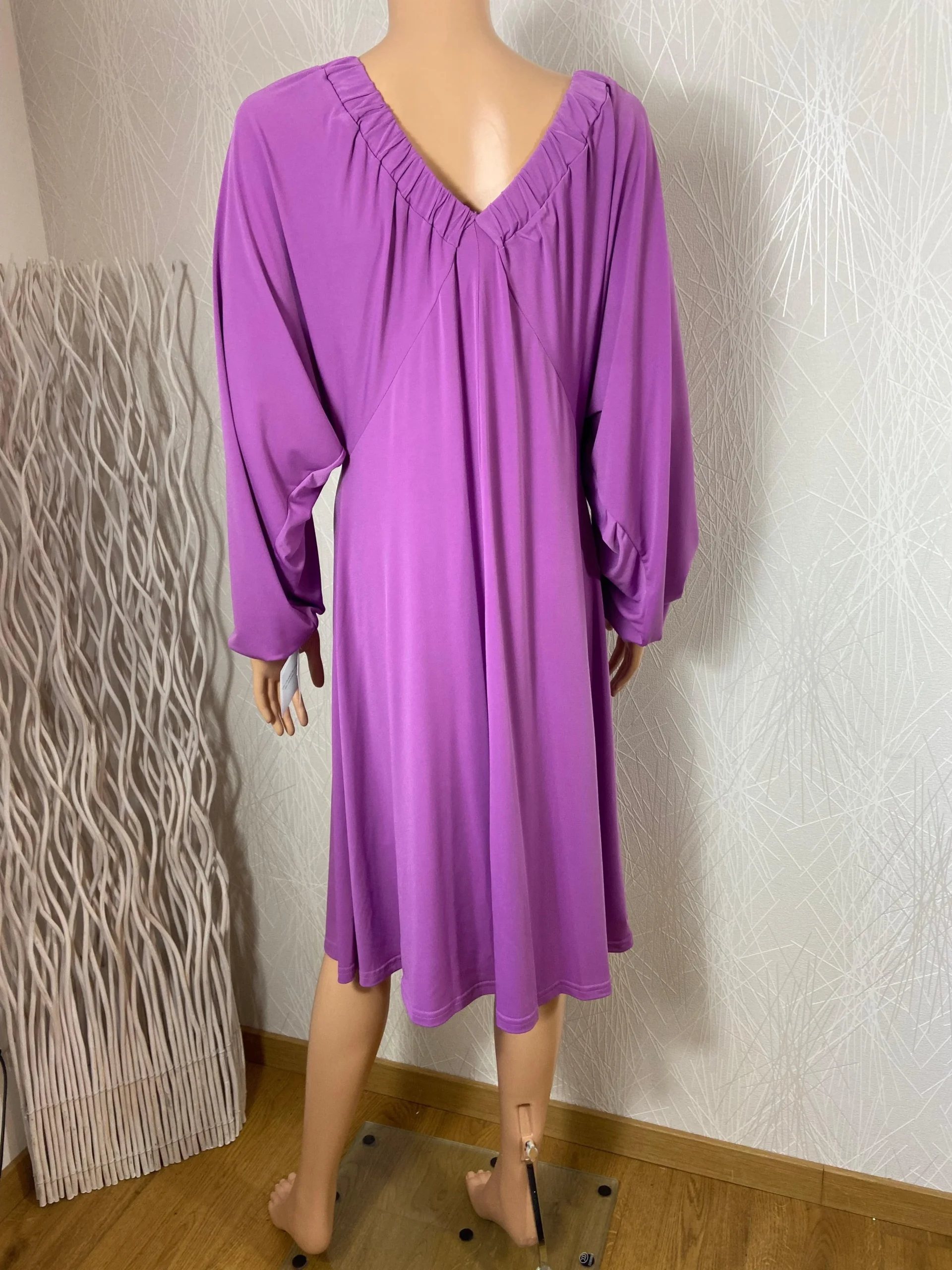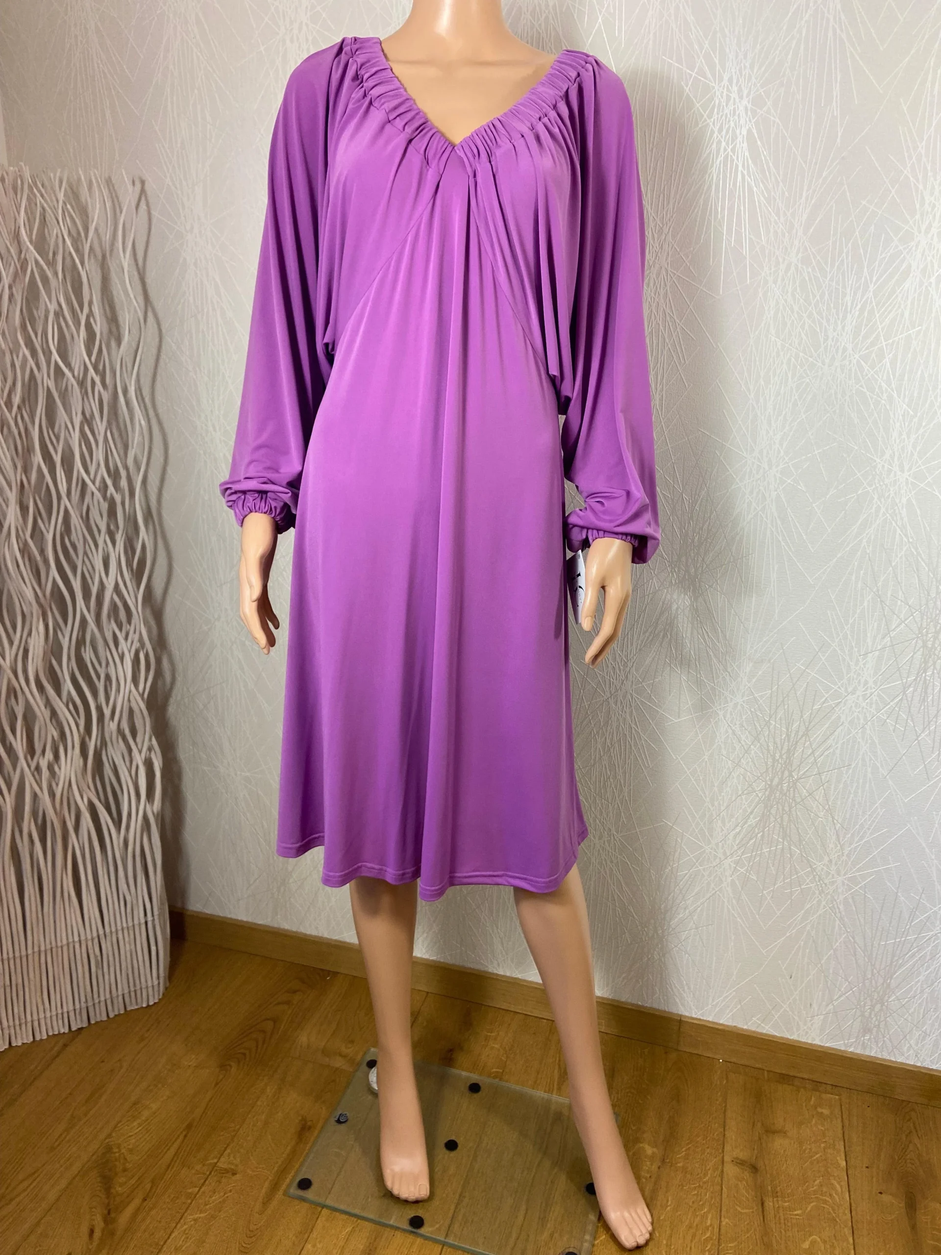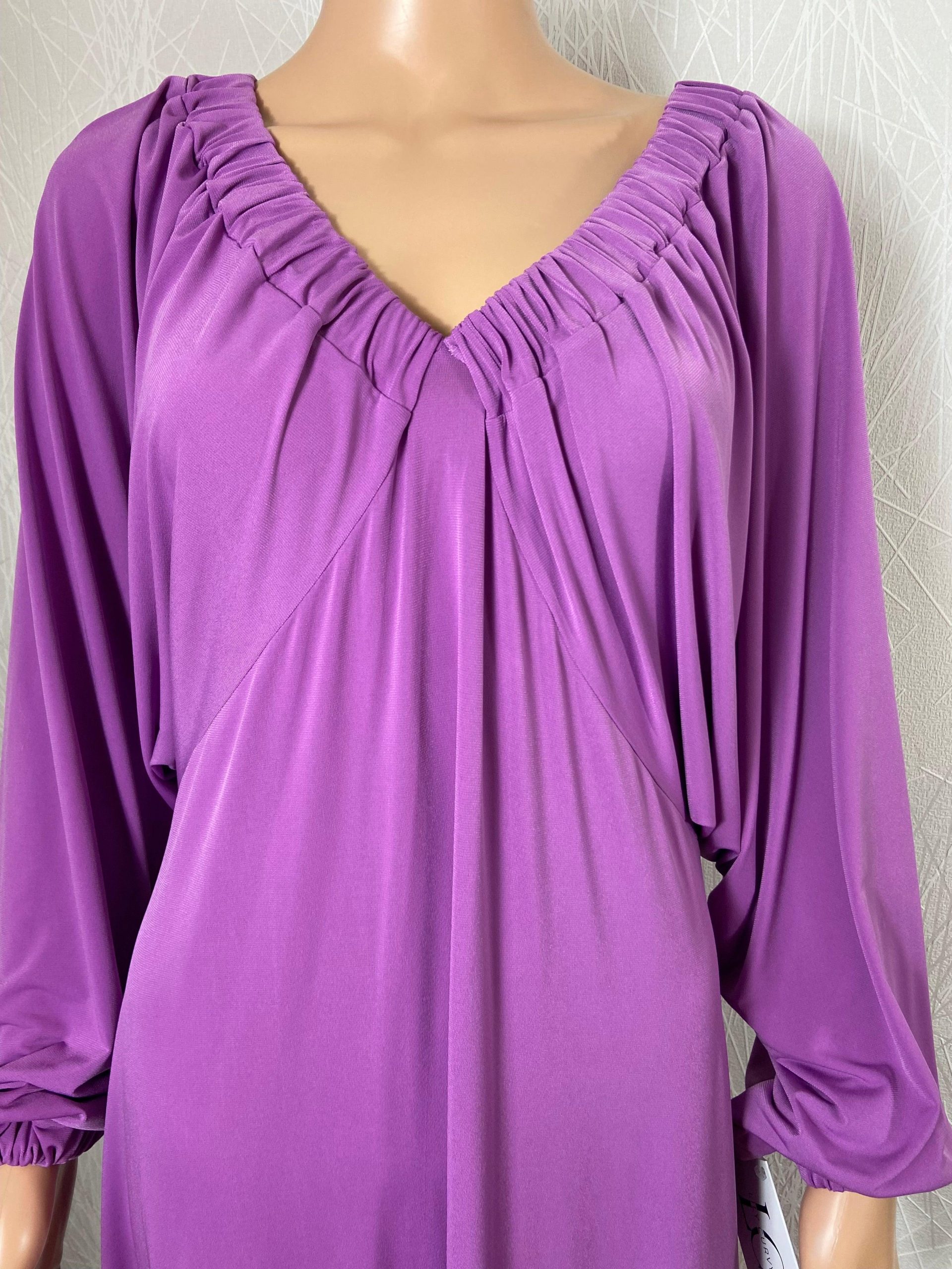 Robe violette jeu de plis manches longues chauve-souris Edmond Boublil