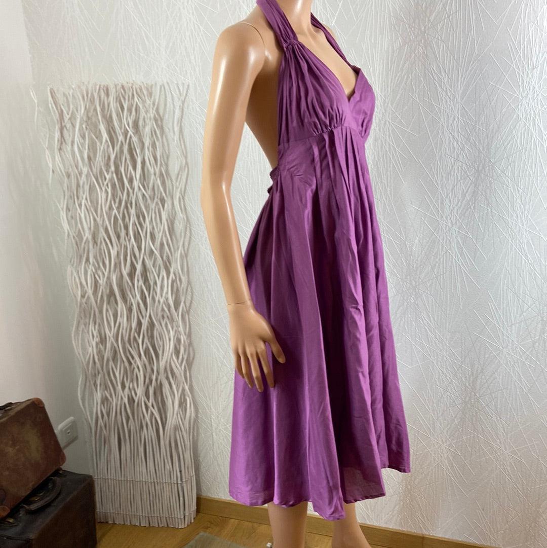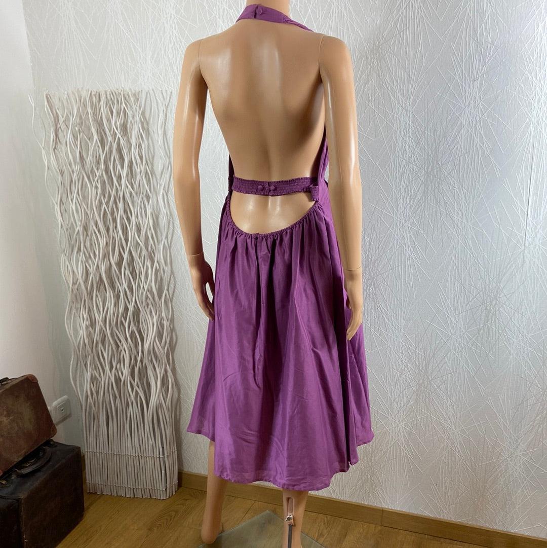Robe violette style patineuse dos nu sans manches plis Pappa Gallo