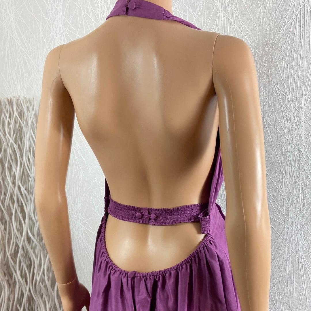 Robe violette doublée modèle Elsa de la marque Peppa Gallo. Sans manches, dos nu avec élastique, encolure en V, coupe de style patineuse, jeu de plis sous la poitrine, tissu doublé, 2 boutons à la nuque et 2 boutons dans le dos. Matière : 100% viscose Couleur : Violet Marque : Peppa Gallo Taille XL […]