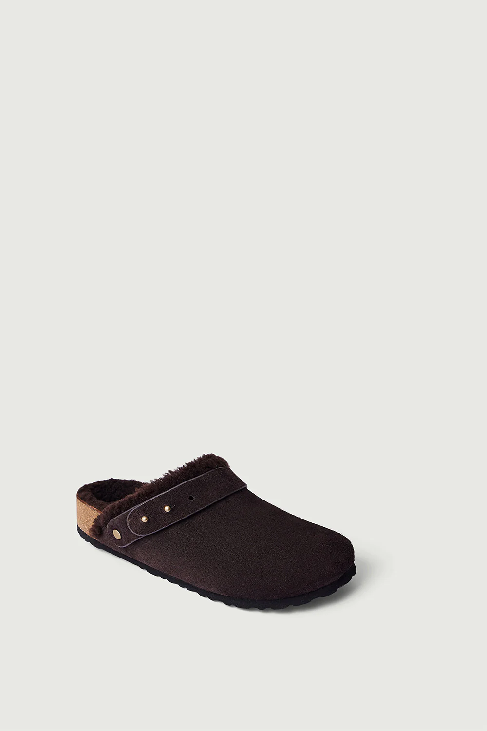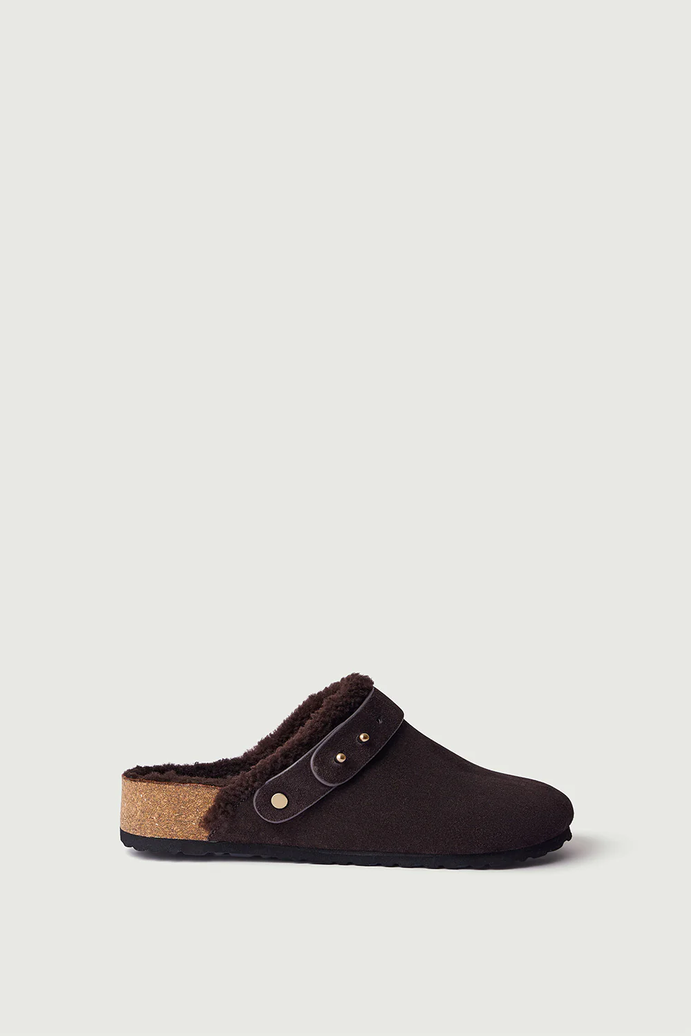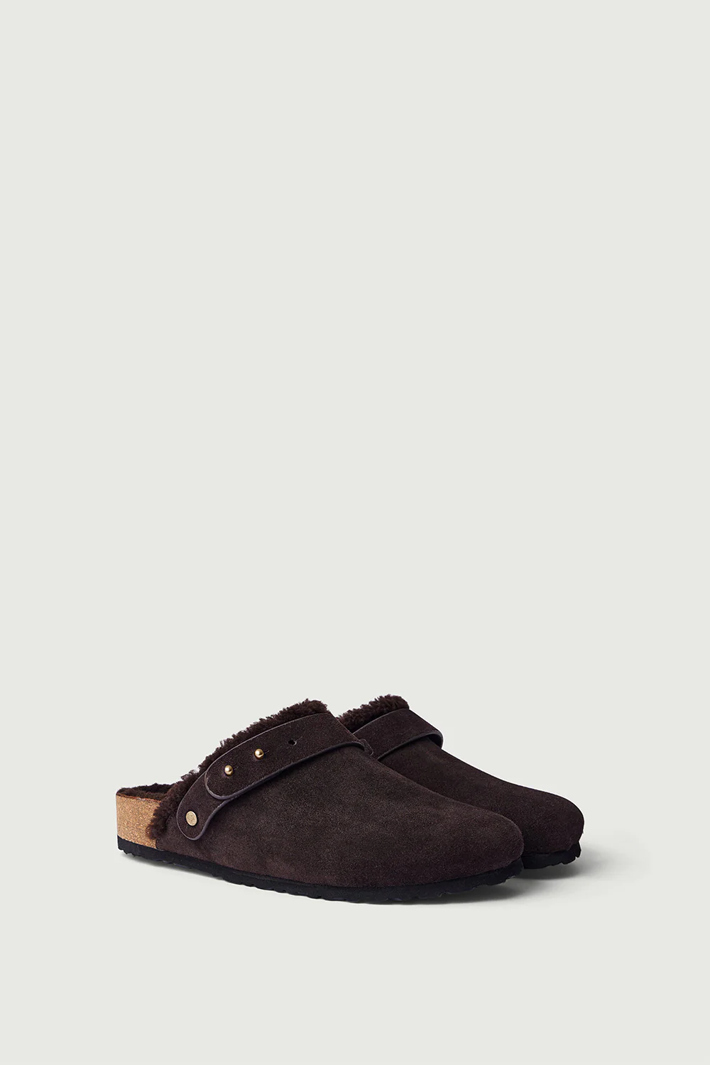 – Sabots en cuir velours fourrés de fourrure d’agneau