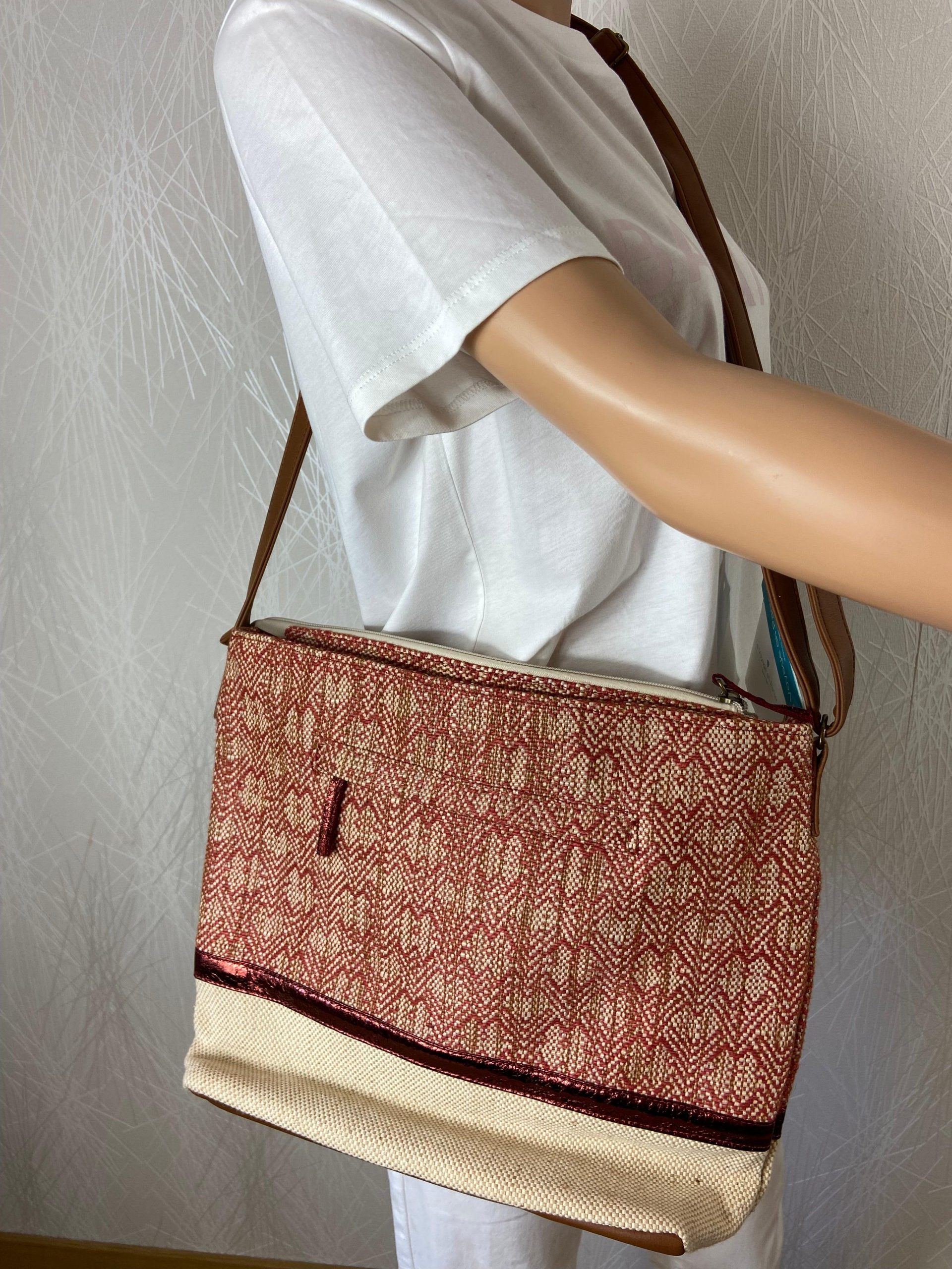 Sac à bandoulière réglable en coton et jute Le Voyage en Panier