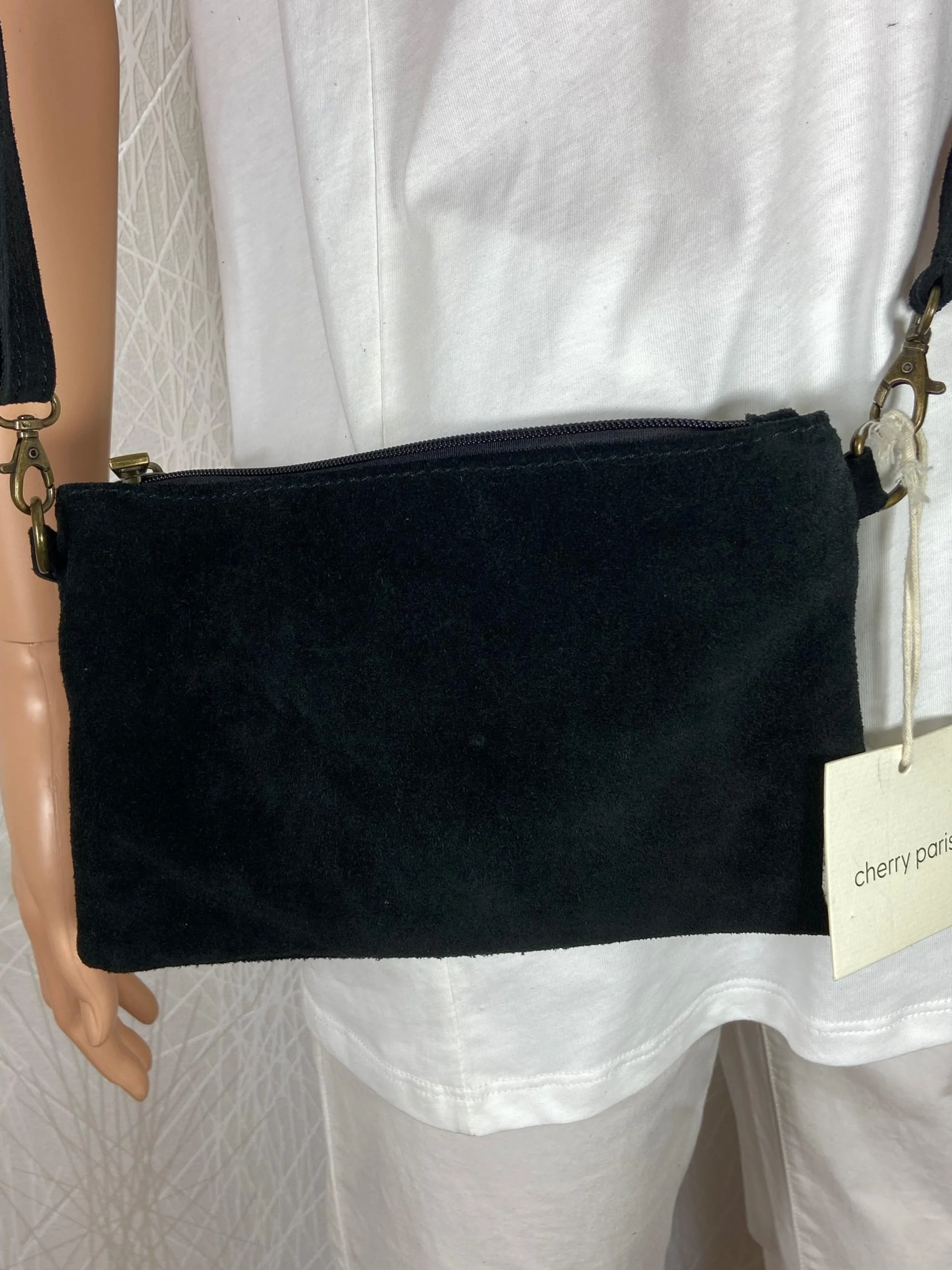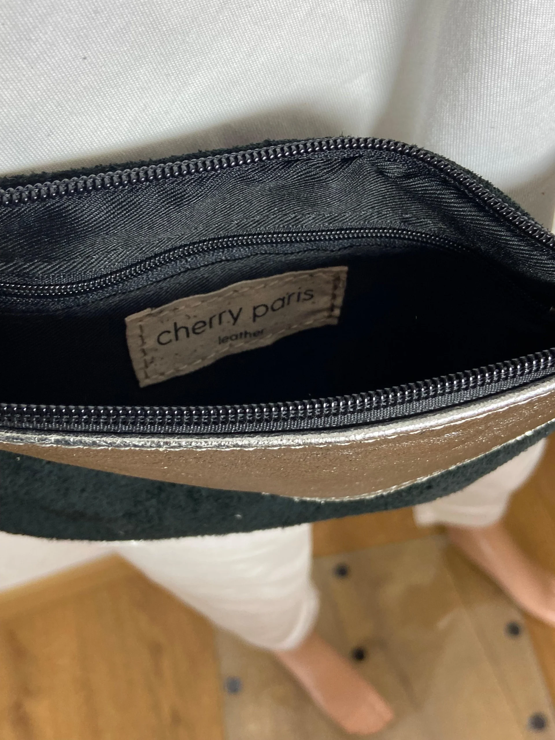 Sac à bandoulière en cuir noir et argent pour femme de la marque Cherry Paris.