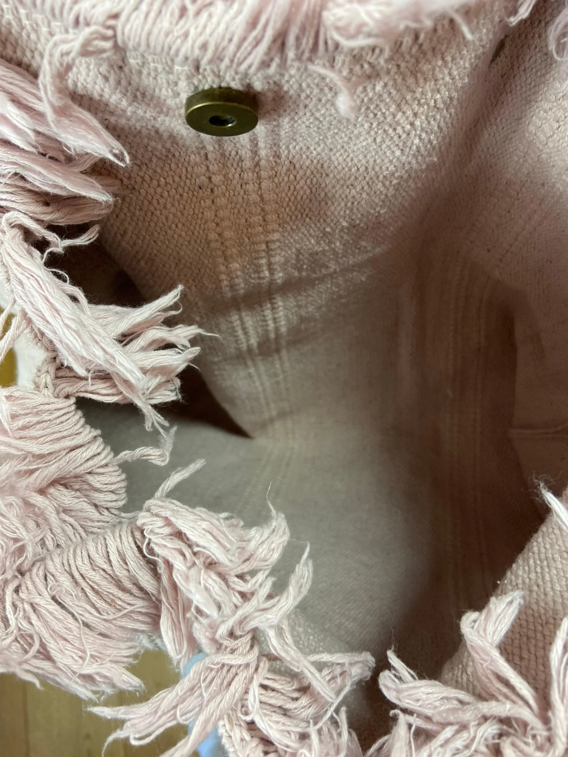 Sac à main avec anses coton rose pâle avec franges motif tête de tigre Folle