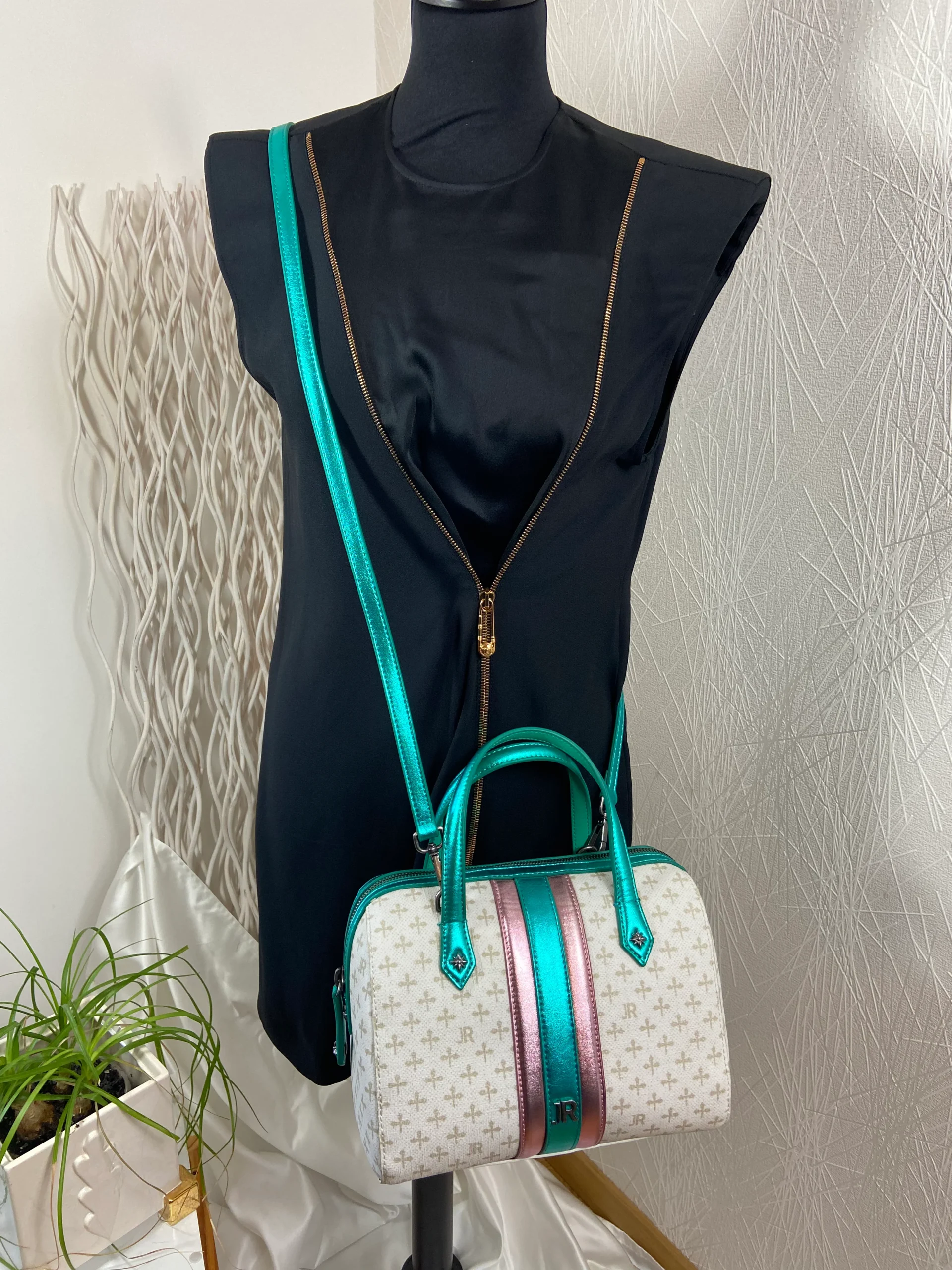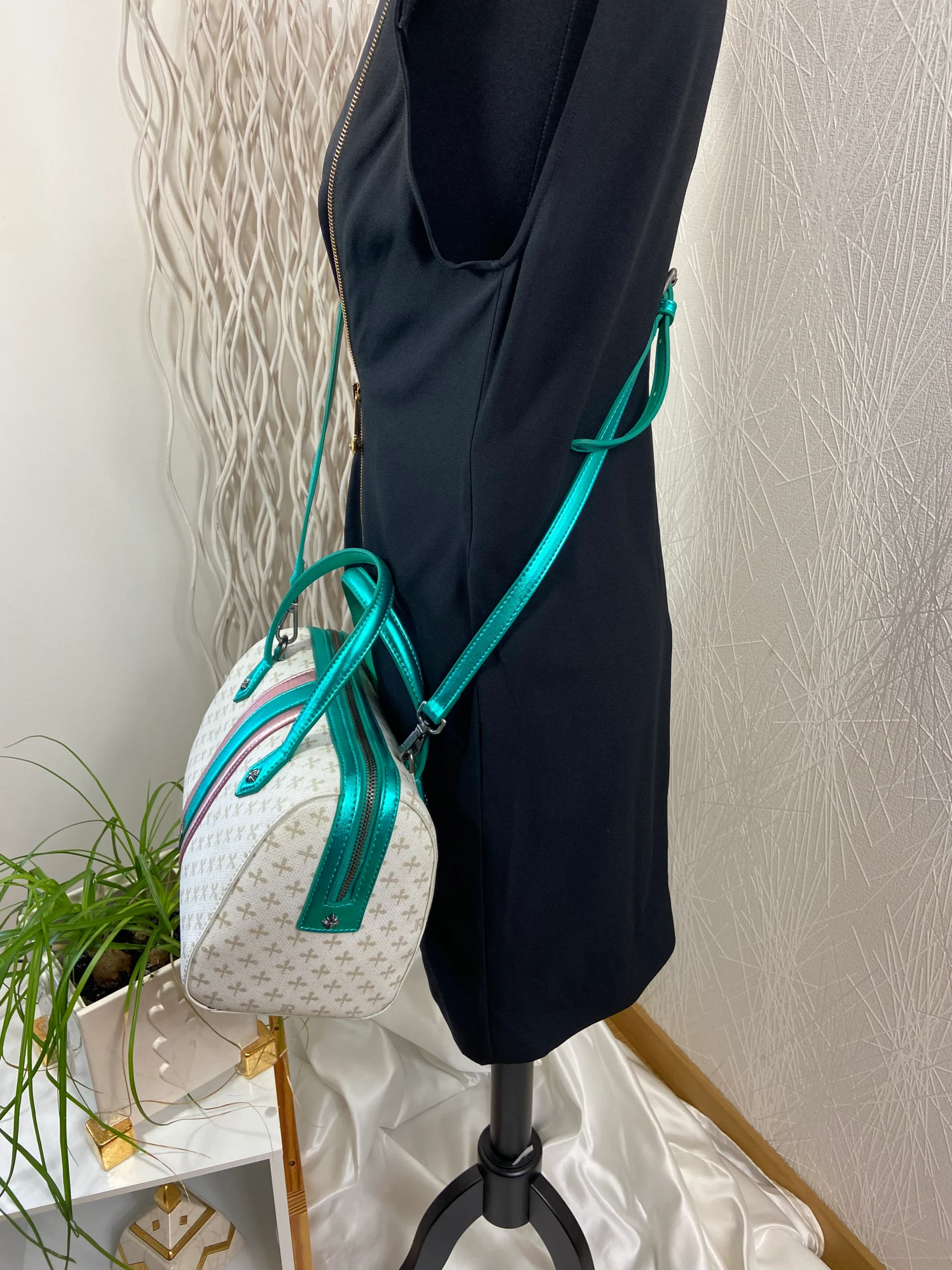 Sac à main haut de gamme dit « de bowling » du créateur John Richmond. Initiales JR en impression sur le tissu. Joli sac très stylé avec bandoulière réglable, une poche avec zip à l’intérieur ainsi que 2 poches ouvertes. Il peut être porté main ou bandoulière. Initiale présente sur l’extérieur du sac. Cet authentique sac John […]