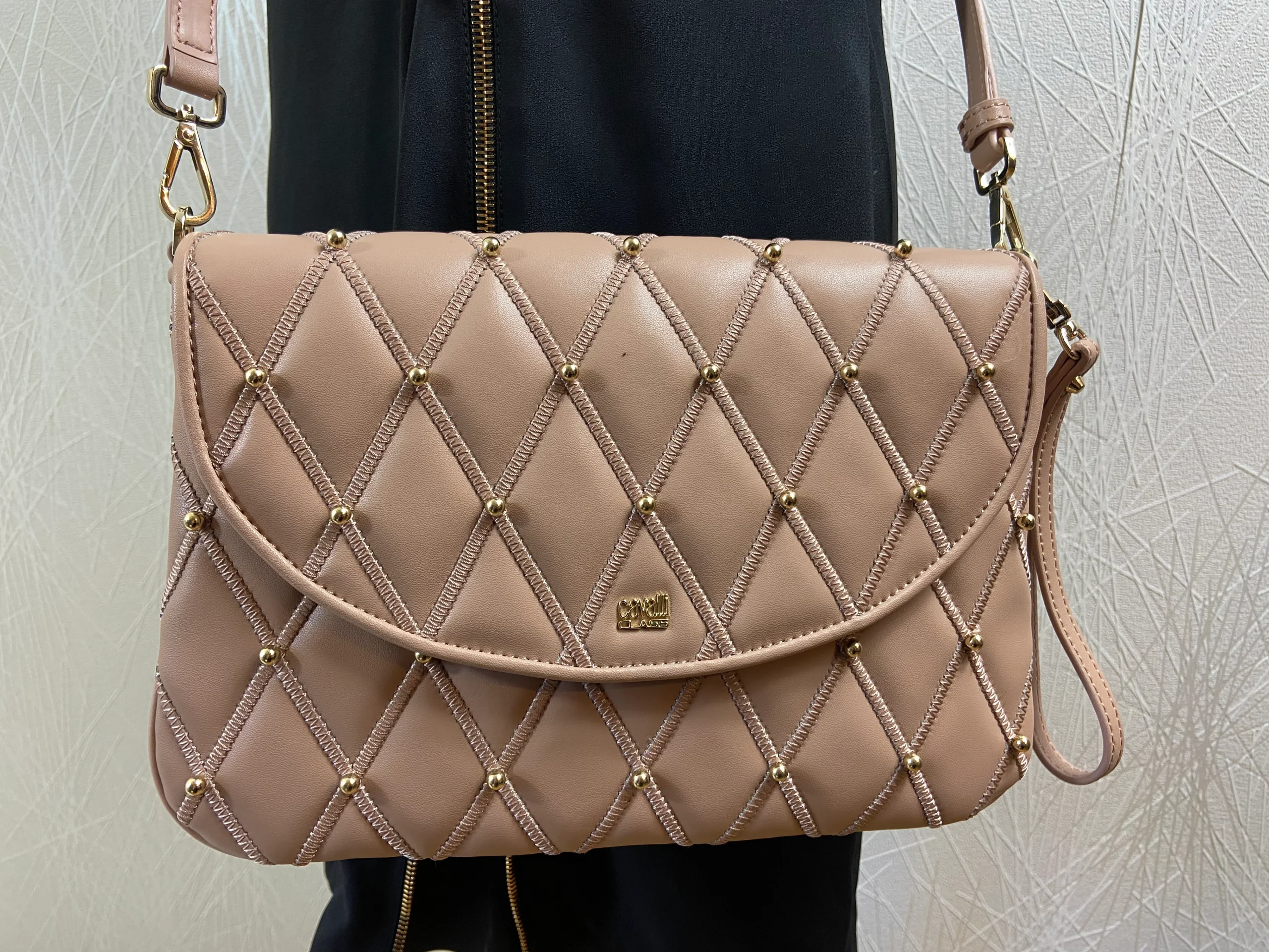 Sac en cuir beige à bandoulière de luxe Cavalli Class